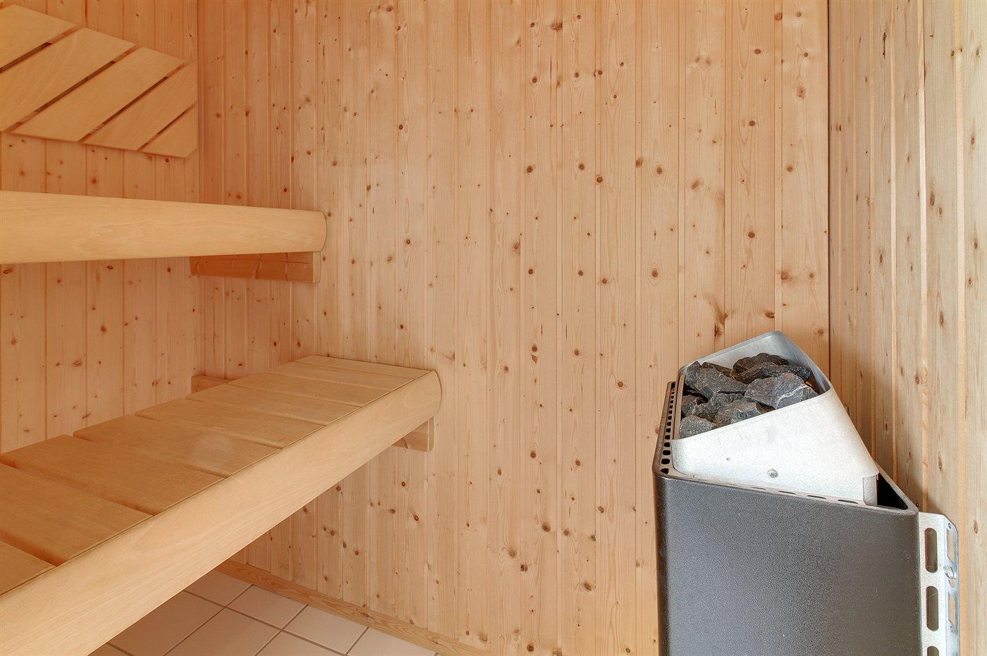 Der er 1 badeværelse med bruseniche og 1 toilet.. Der er gulvvarme på 1 badeværelse. I saunaen er der mulighed for afslapning.