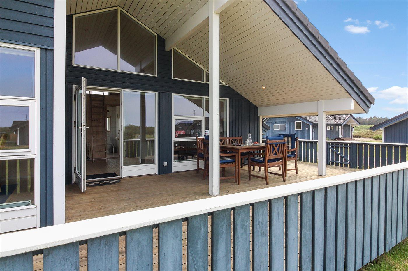 Meget tæt på Holmsland Klits 18-hullers golfbane og fiskesø, og kun få minutters kørsel fra badebyen Søndervig ligger dette dejlige sommerhus - på en naturgrund, hvorfra der er udsigt over området. Til huset hører såvel åben som overdækket terrasseareal med diverse havemøbler. Terrassen er omkranset af rækværk. Bemærk, at de 2 sovepladser på madrasser findes på husets hems.