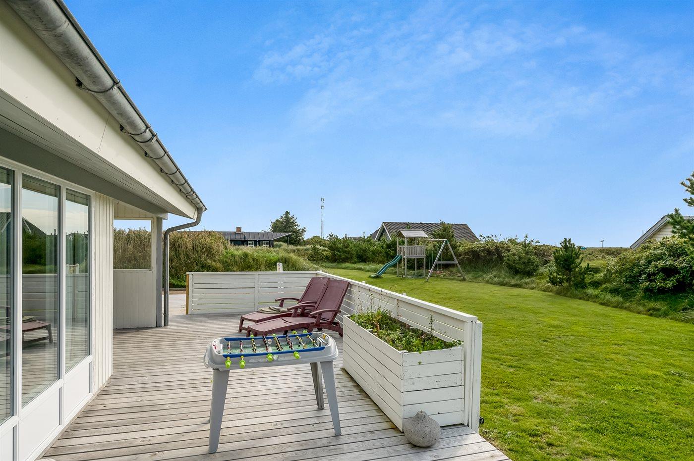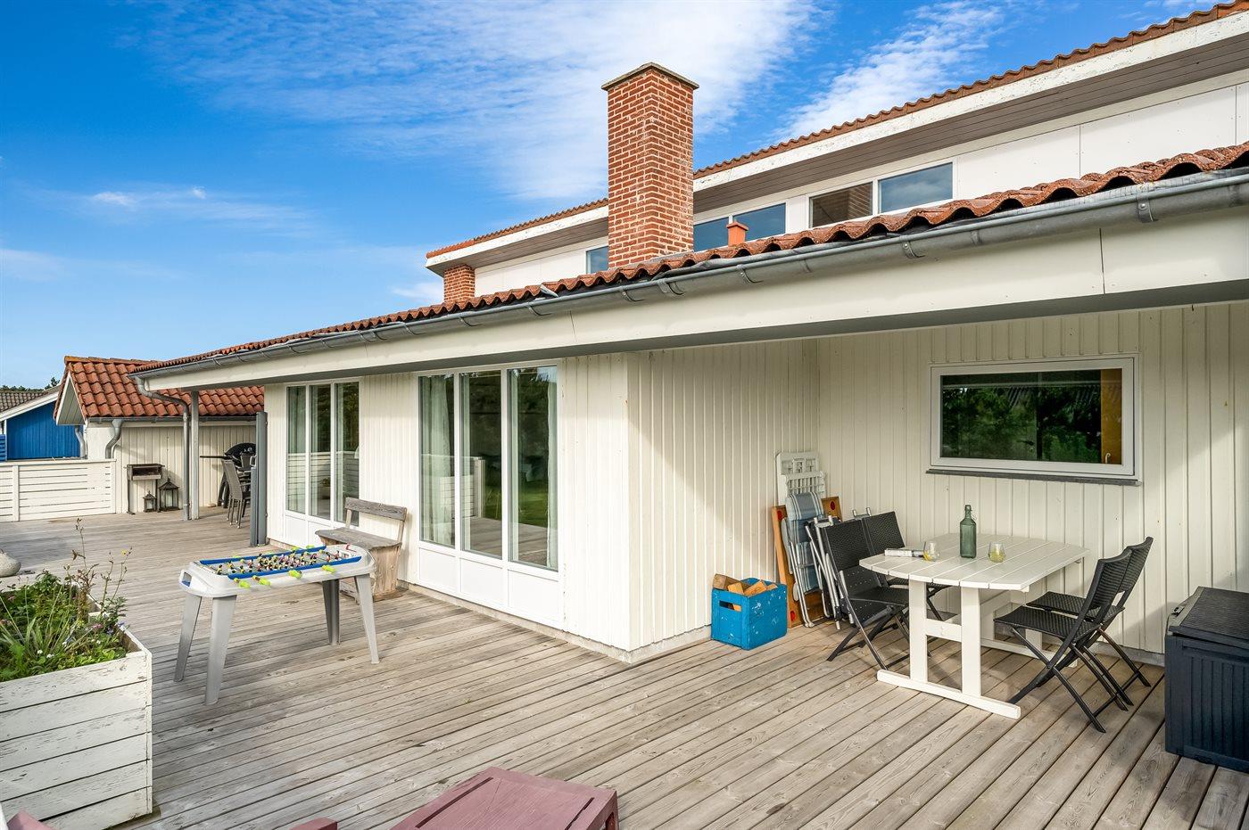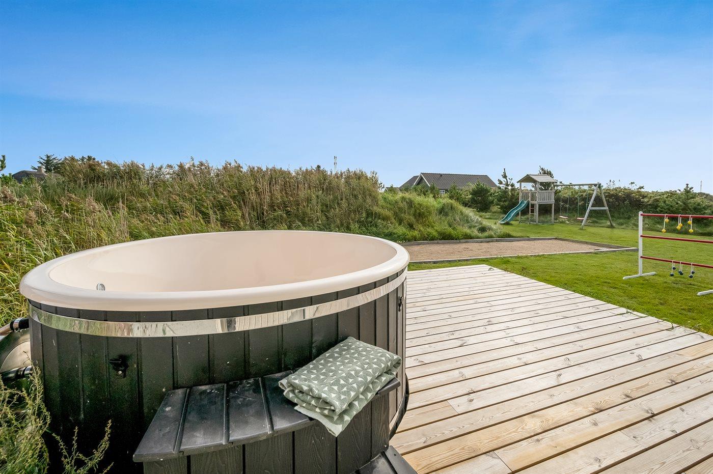 Velindrettet sommerhus nær hav og fjord med spa, store terrasser og aktivitetsrum i Søndervig.