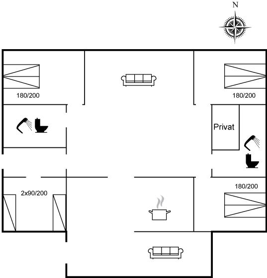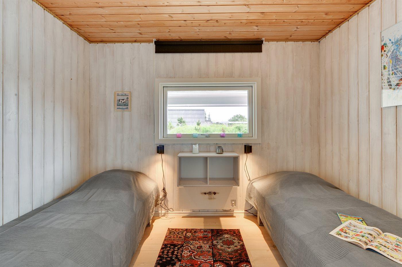 Der er i alt 4 soveværelser. Sovepladserne fordeler sig på: 6 sovepladser i dobbeltsenge. 2 sovepladser i enkeltsenge.