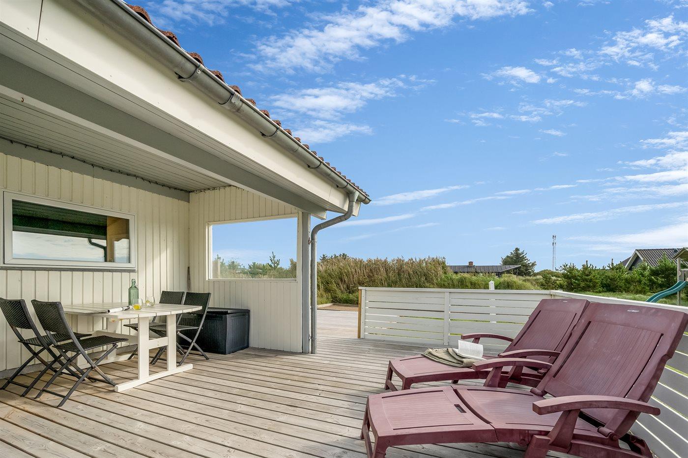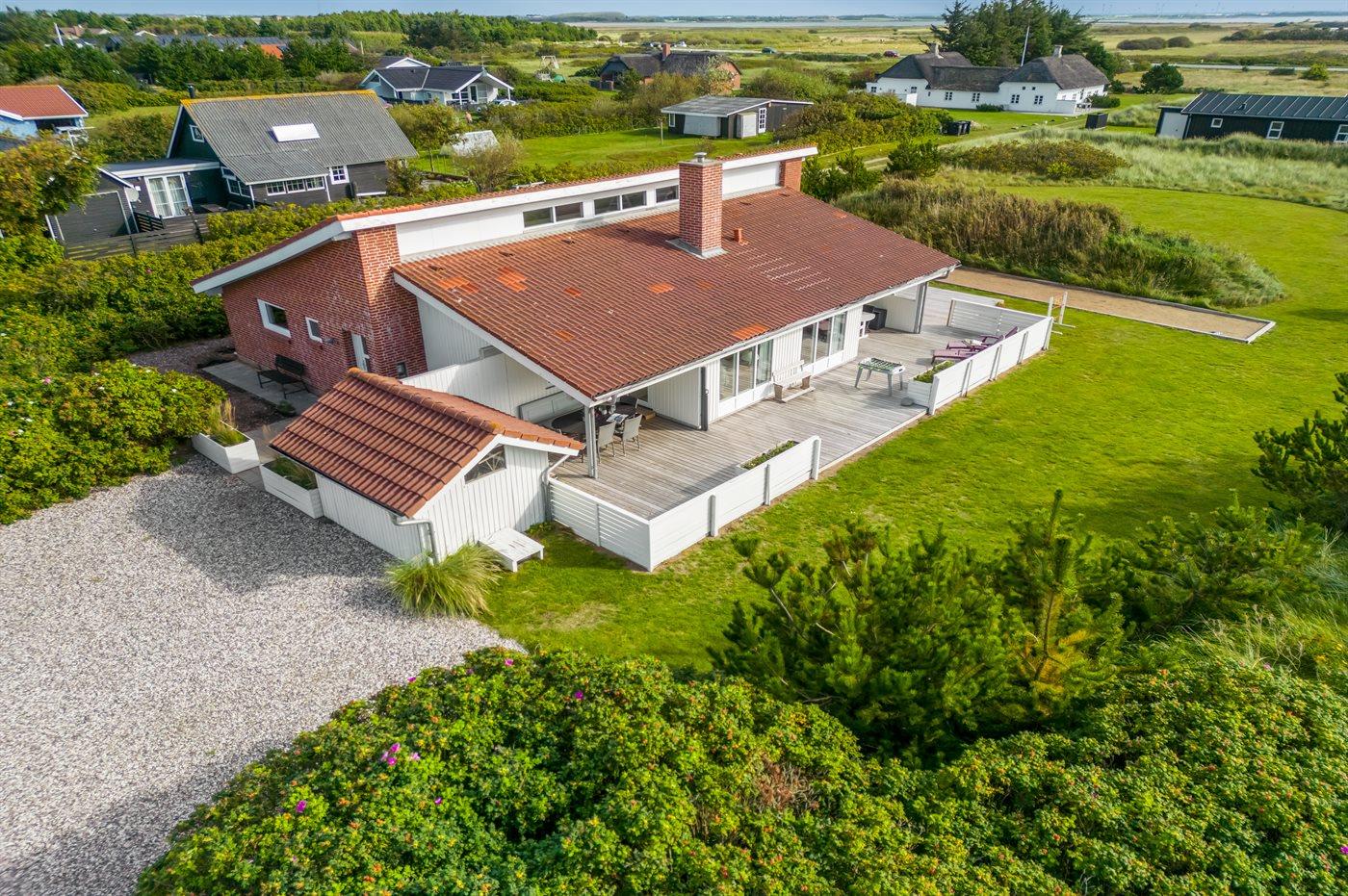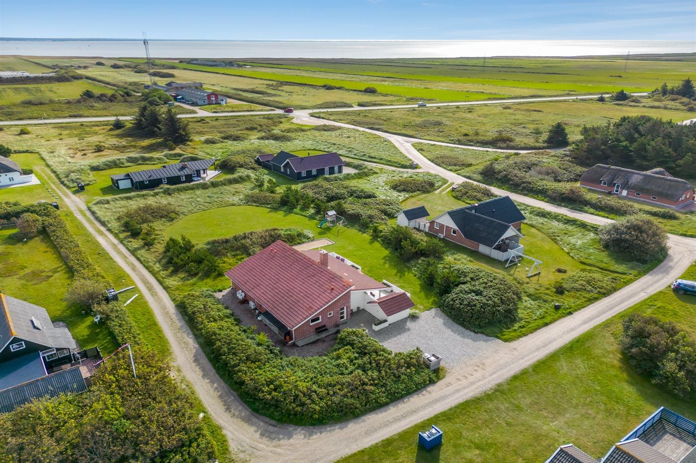 Midt imellem hav og fjord ligger dette dejlige og velindrettede sommerhus, hvor der er plads til både store og små samt den firbenede gæst. Huset ligger på en stor grund, hvorfra I kan nyde udsigten over Ringkøbing Fjord. Til huset hører også en delvis overdækket terrasse, hvor I kan sidde i læ for vinden og lytte til Vesterhavets brusen.