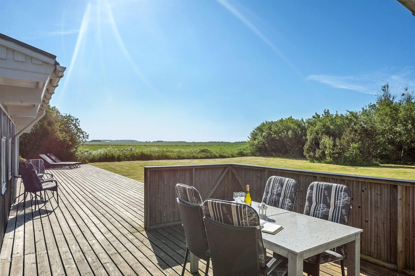 Dejligt sommerhus med en skøn beliggenhed, for enden af lukket vej, ud til landlige og naturskønne omgivelser. Huset ligger tilbagetrukket på den meget store grund, men indenfor kort afstand nås såvel golfbane, Søndervig centrum samt fiskesø.