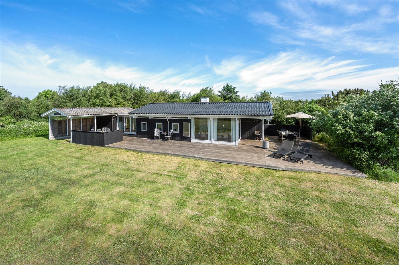 Skønt sommerhus i Søndervig med stor grund, tæt på golfbane og centrum, perfekt til ferie med husdyr.
