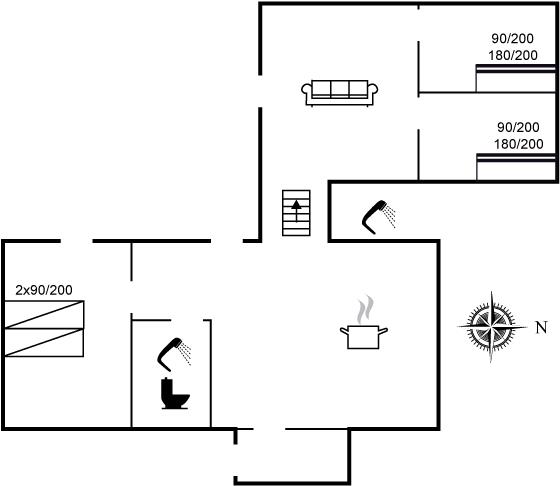 Der er i alt 3 soveværelser. Sovepladserne fordeler sig på: 2 sovepladser i enkeltsenge. 6 sovepladser i køjesenge.