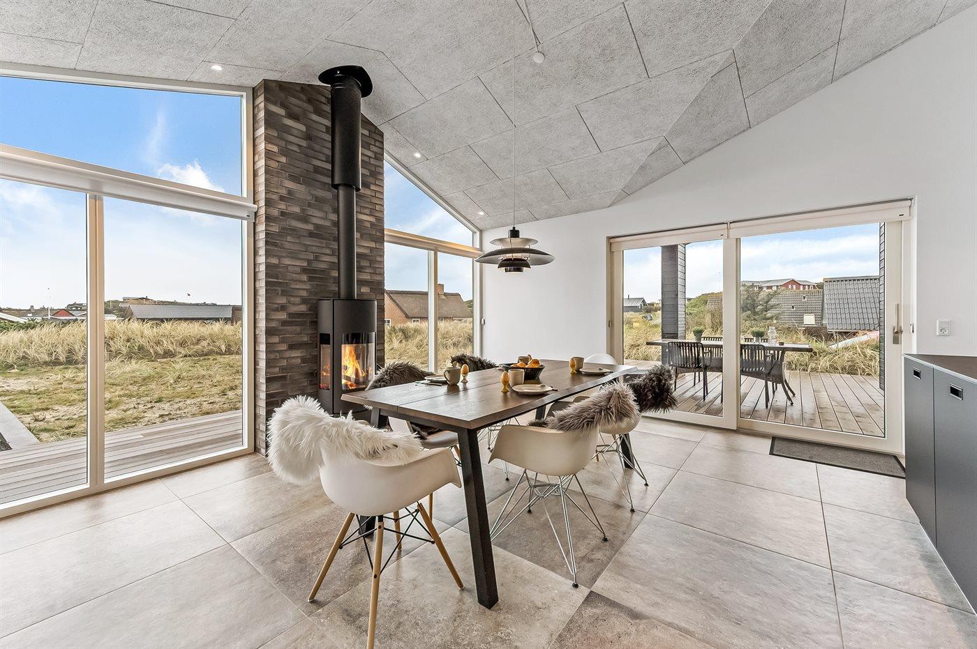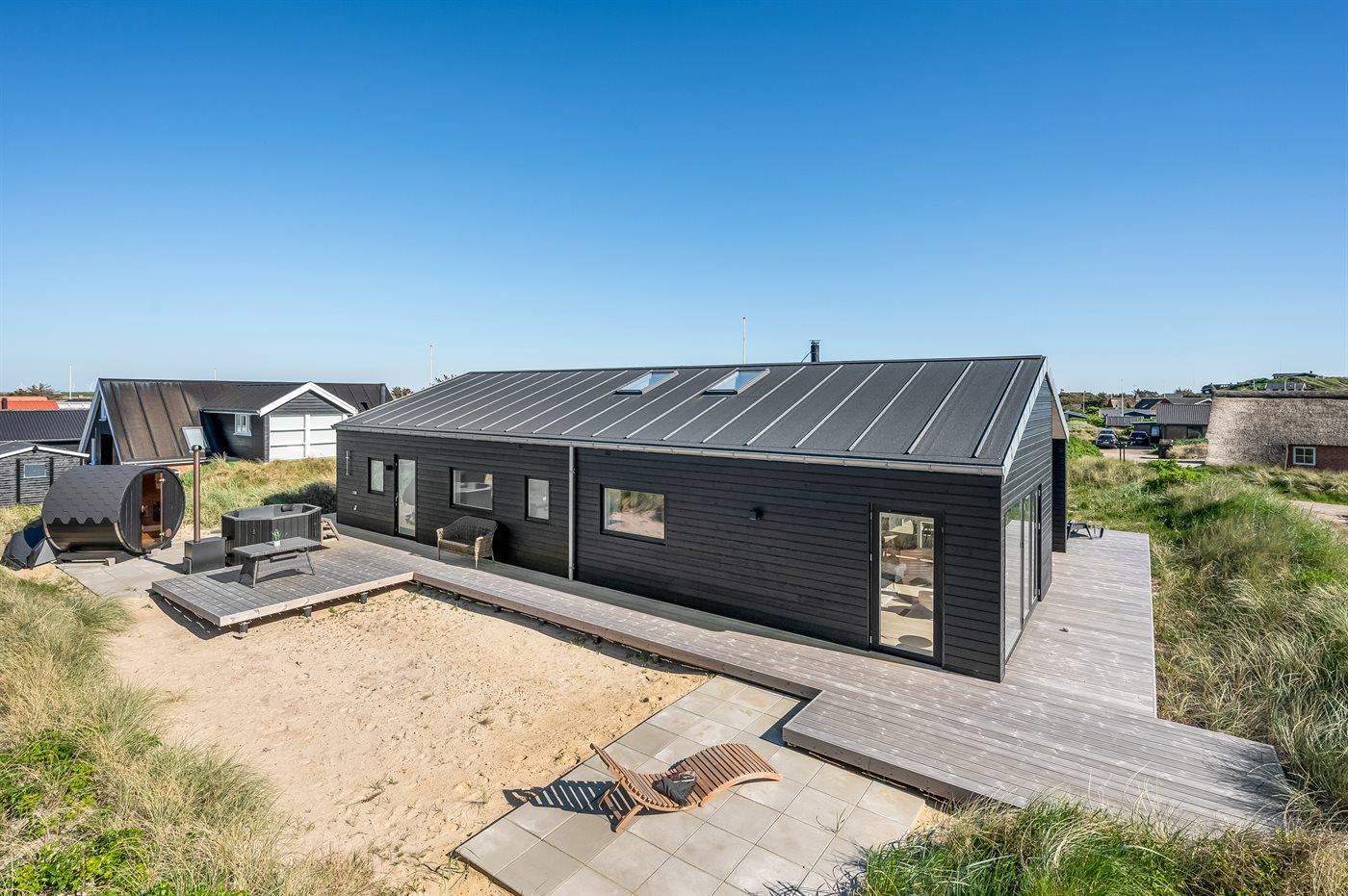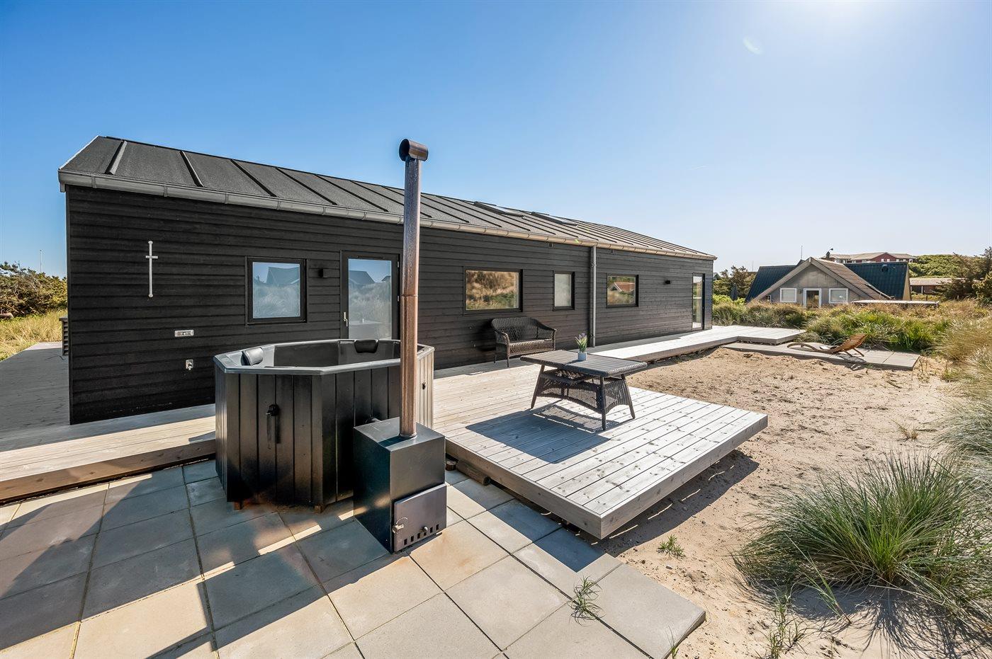 Moderne sommerhus tæt på Vestkystens strand med sauna, vildmarksbad og indendørs spa.