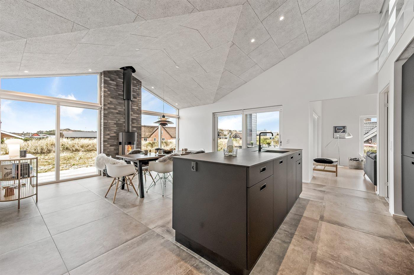 Køkkenet er udstyret med 1 køleskab. Der er 4 induktionskogeplader, varmluftovn samt opvaskemaskine.