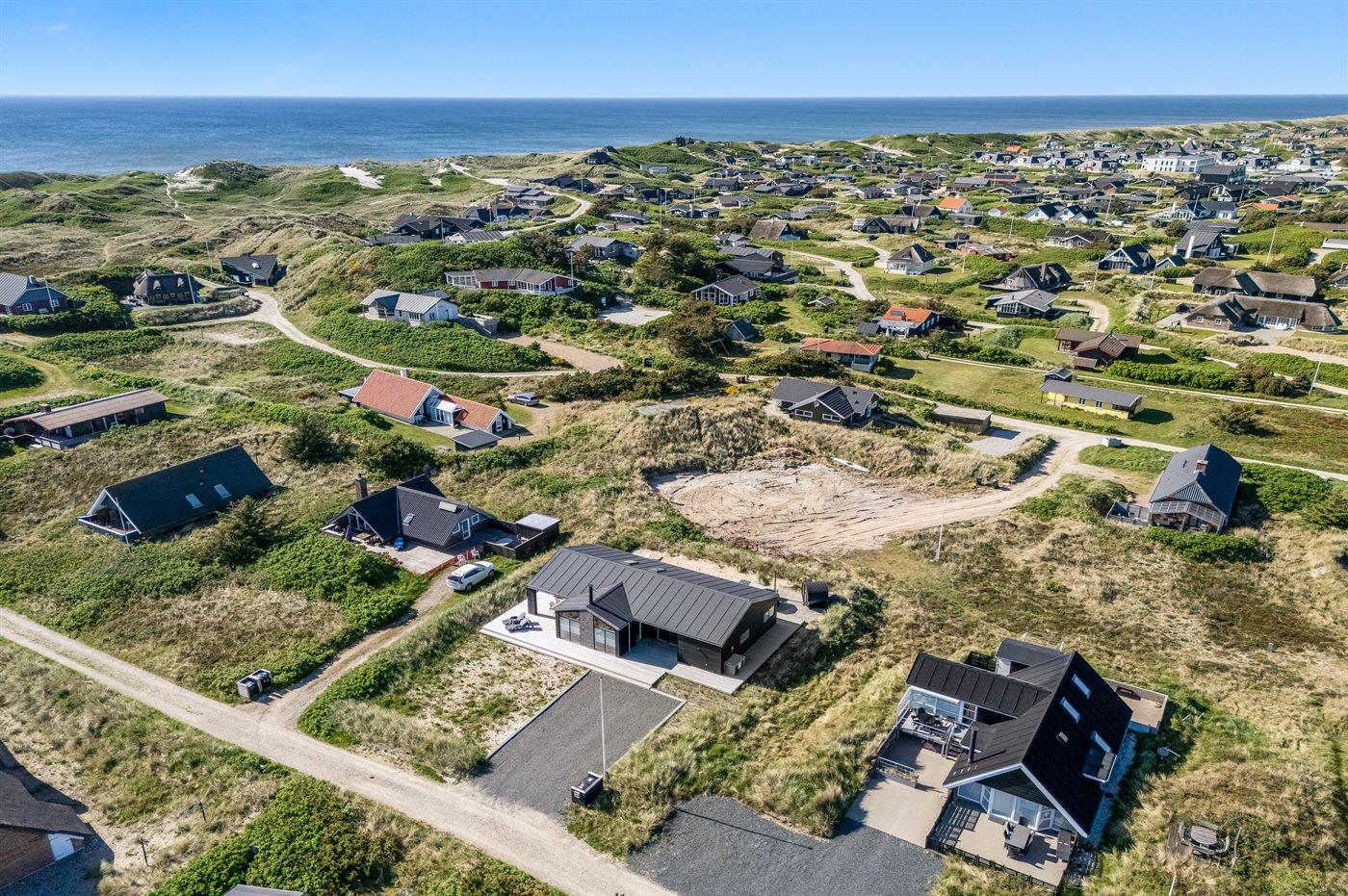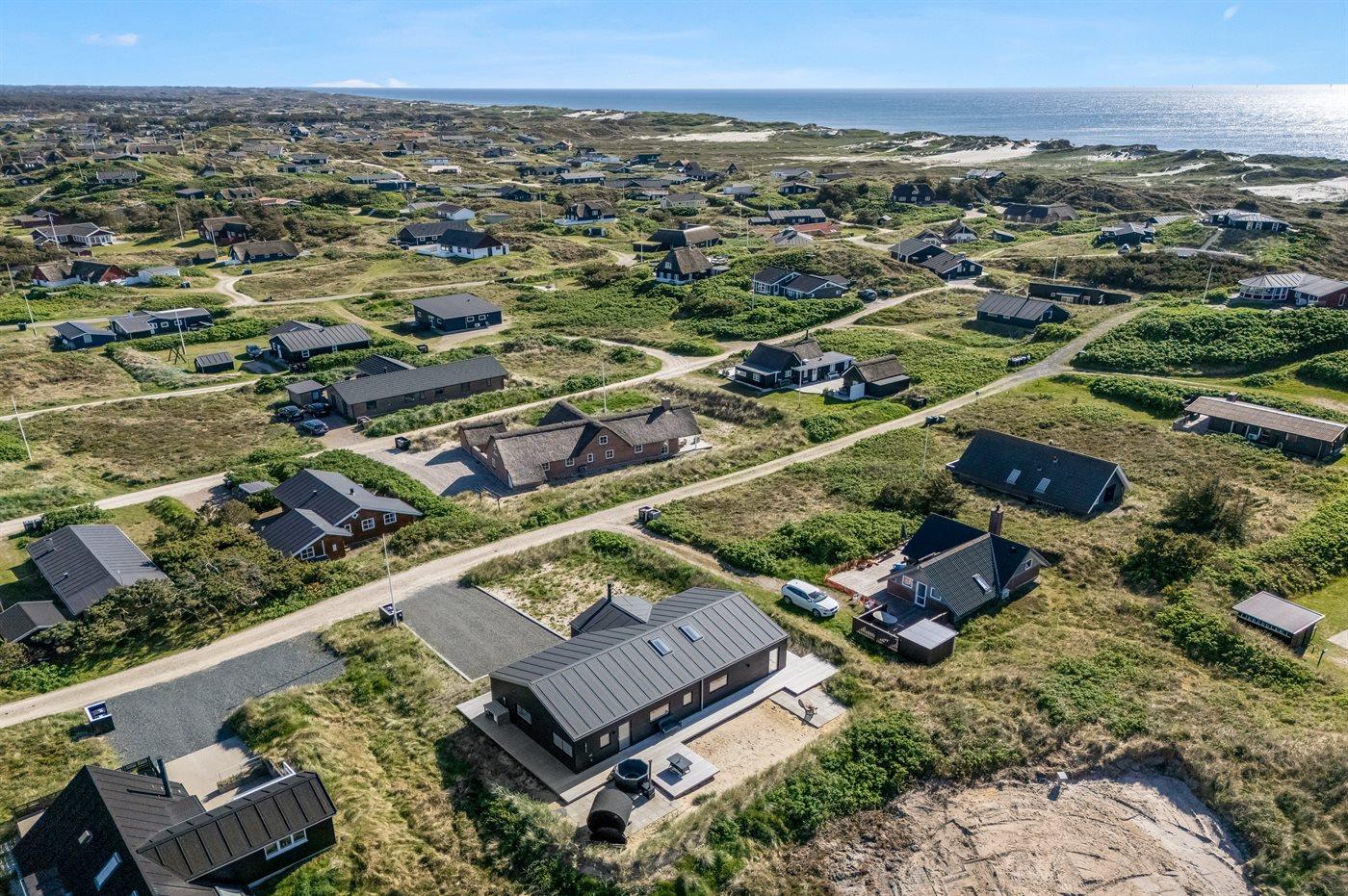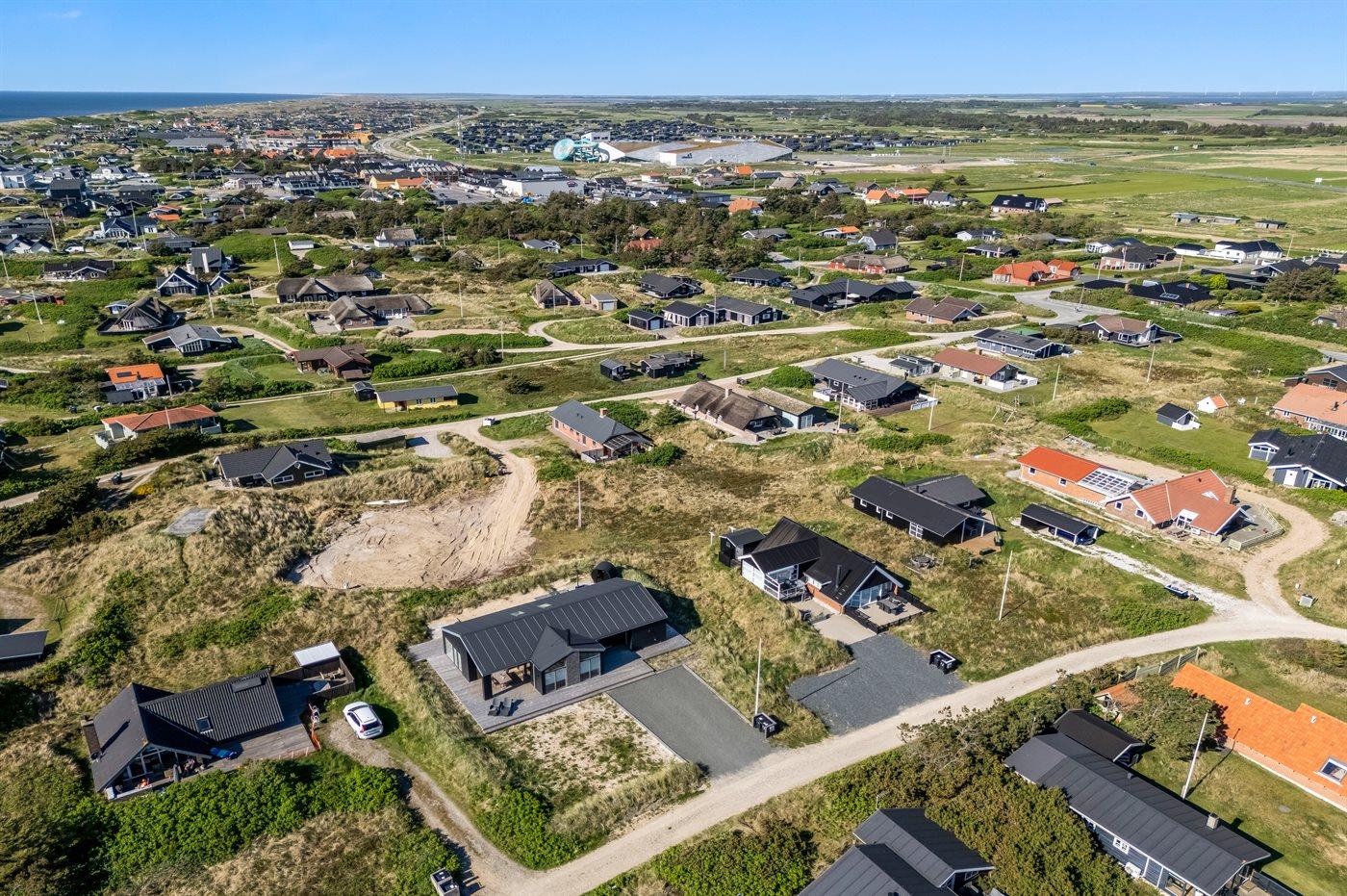 Ferieboligen er beliggende på en 1201 m² stor naturgrund. Der er 350 m til havet. Nærmeste forretning er beliggende i en afstand af 400 m. Der er en golfbane i en afstand af 1500 m. Til ferieboligen hører åbent terrasseareal. Desuden er der overdækket terrasse. Udendørs sauna. Udendørs bruser. Der er installeret stik til opladning af elbil. CEE stik. Parkering ved ferieboligen.