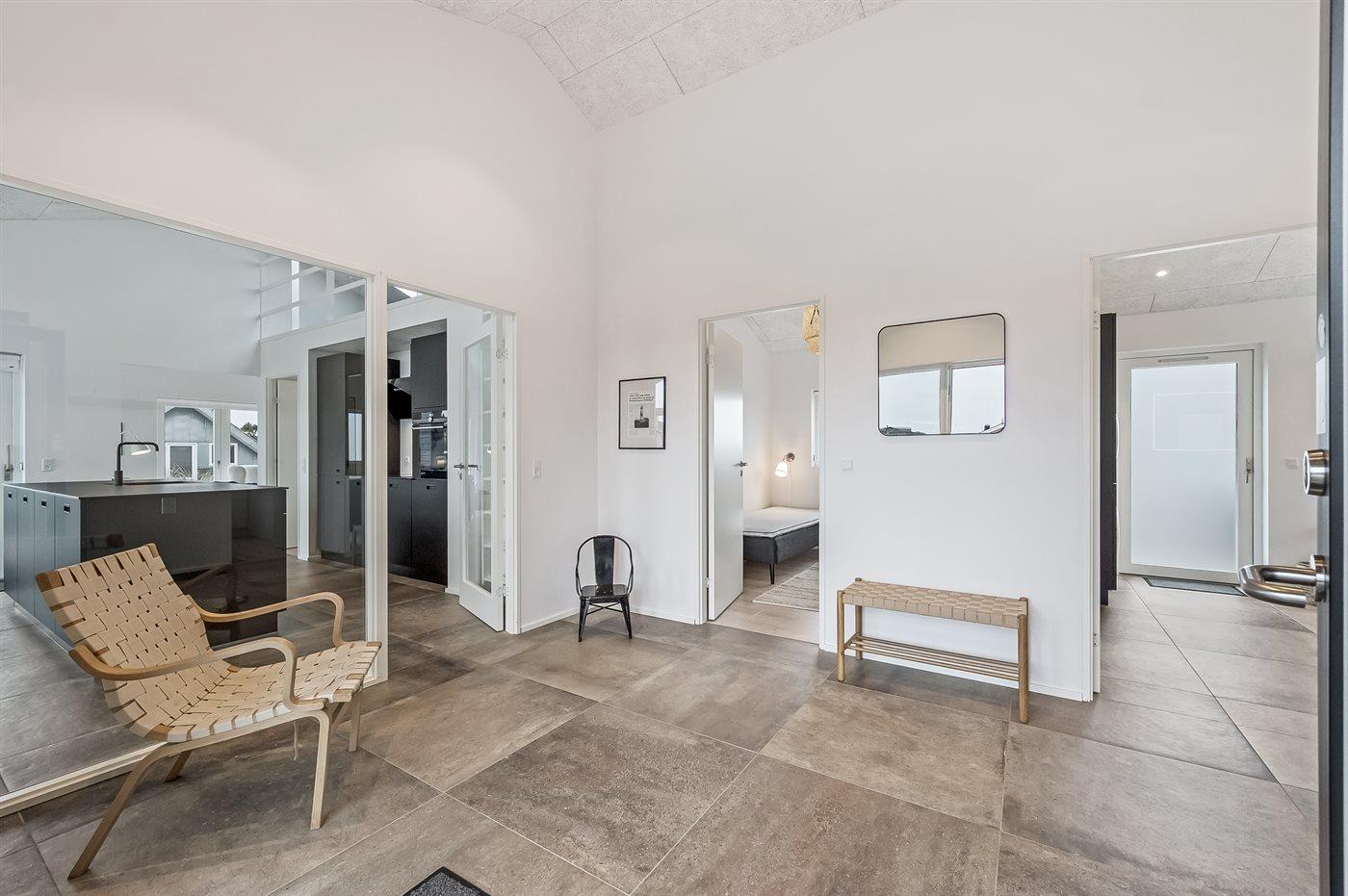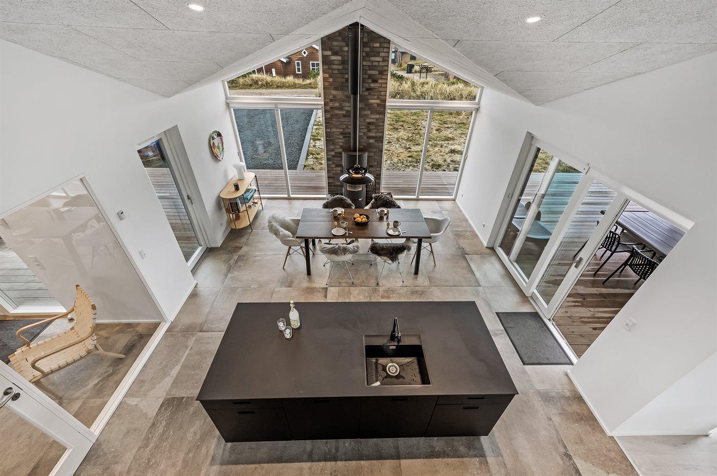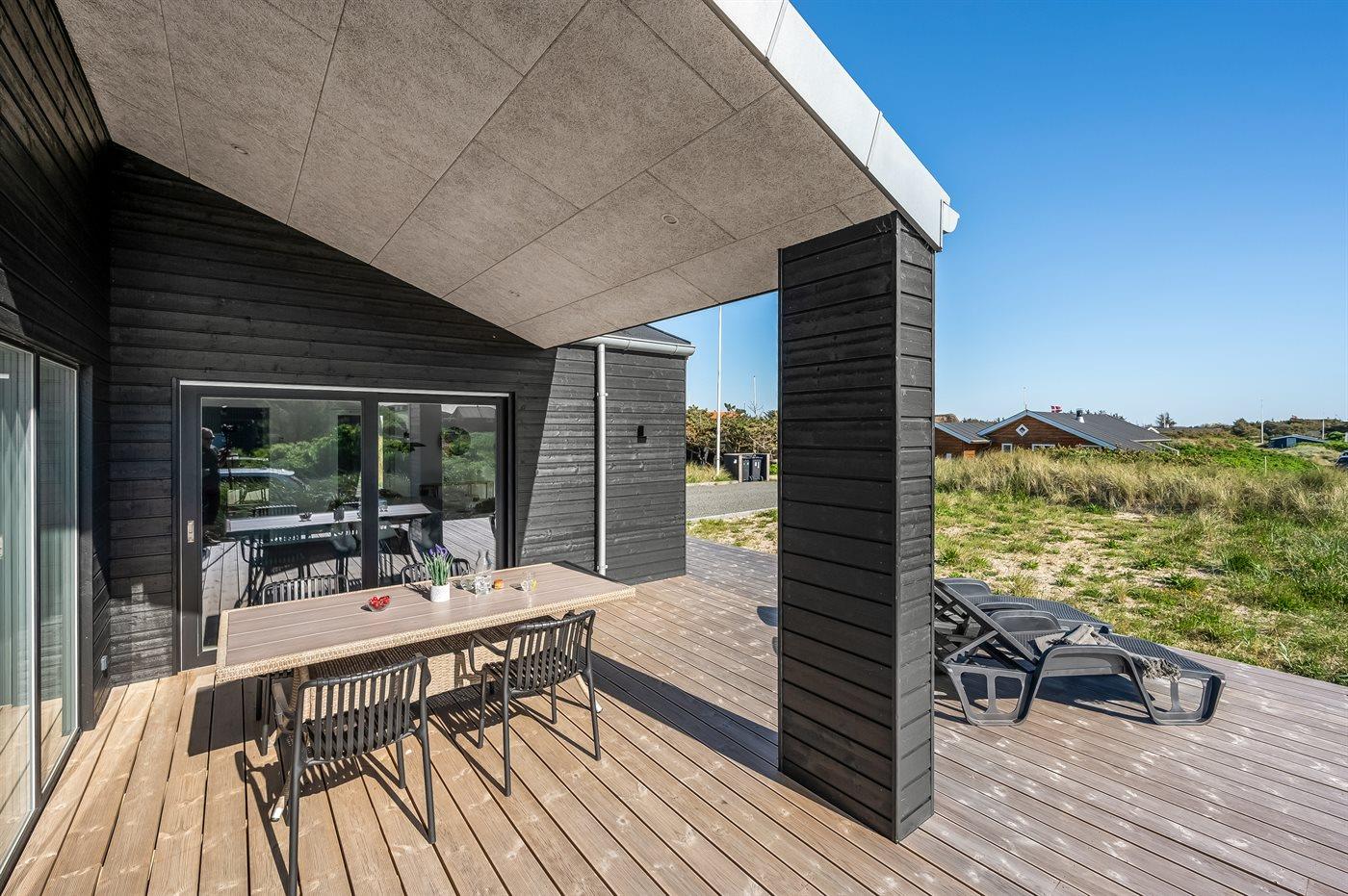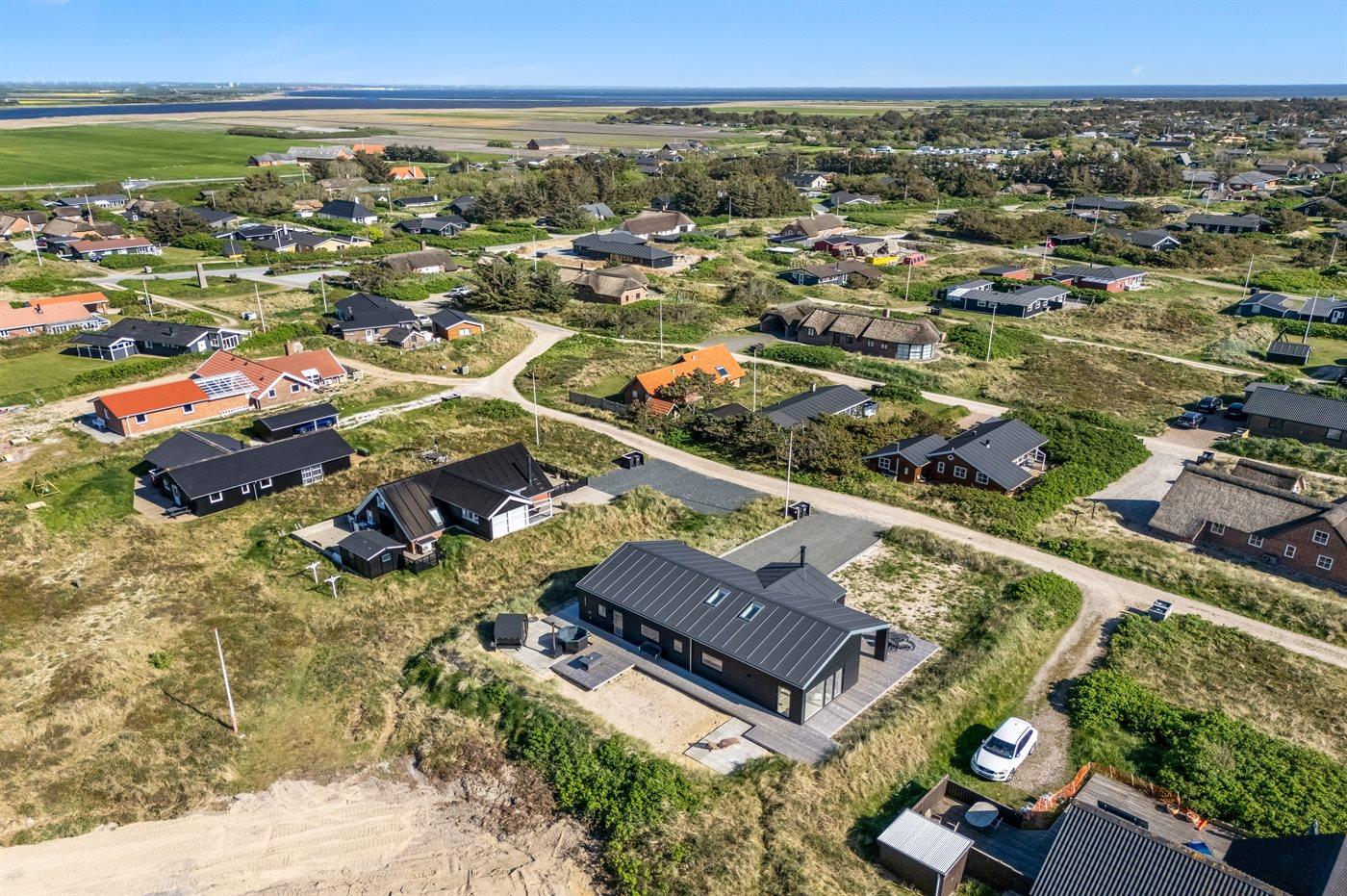 Ferieboligen er beliggende på en 1201 m² stor naturgrund. Der er 350 m til havet. Nærmeste forretning er beliggende i en afstand af 400 m. Der er en golfbane i en afstand af 1500 m. Til ferieboligen hører åbent terrasseareal. Desuden er der overdækket terrasse. Udendørs sauna. Udendørs bruser. Der er installeret stik til opladning af elbil. CEE stik. Parkering ved ferieboligen.
