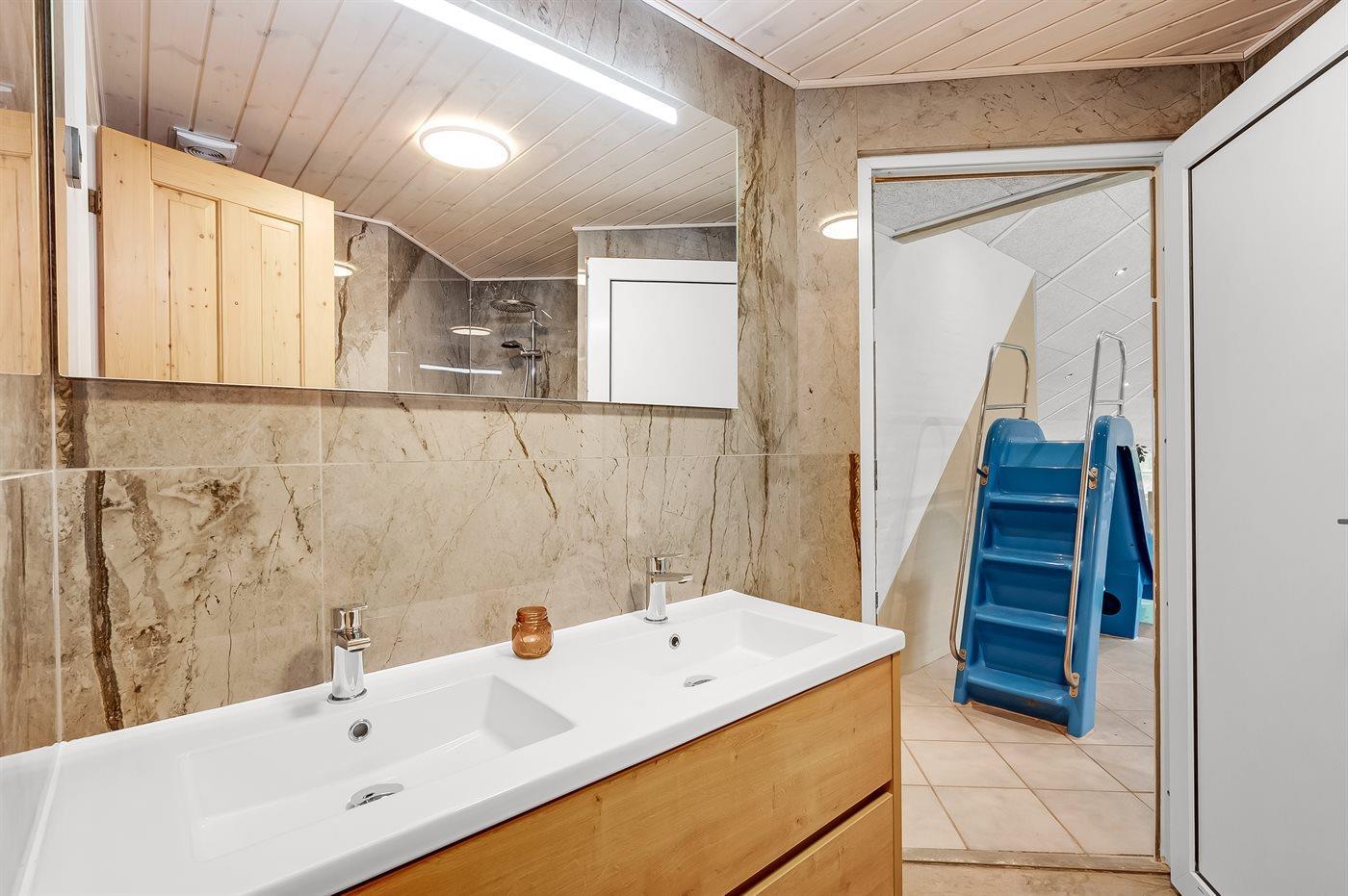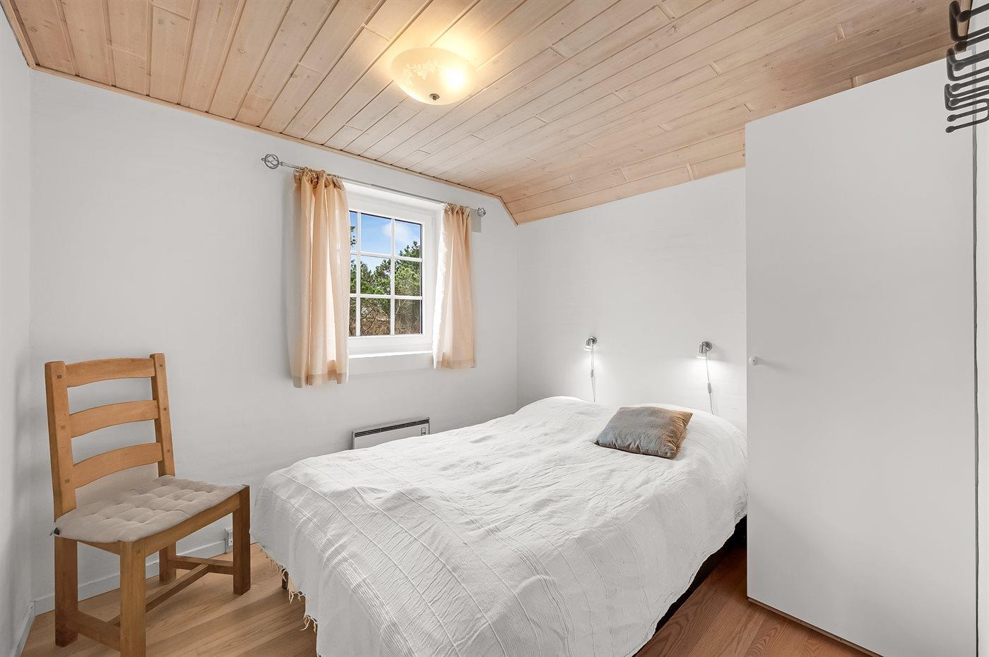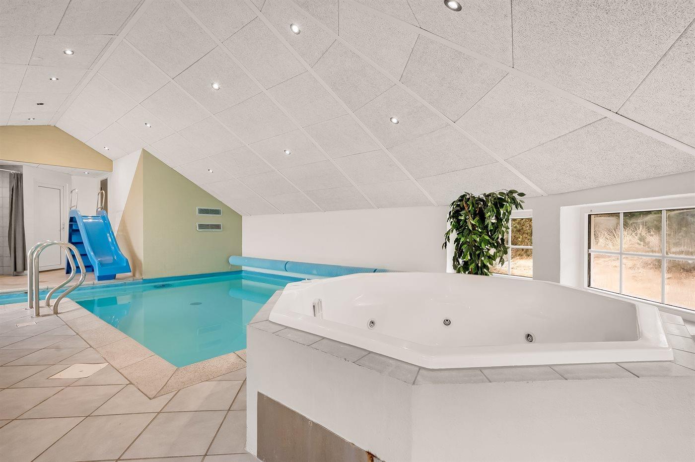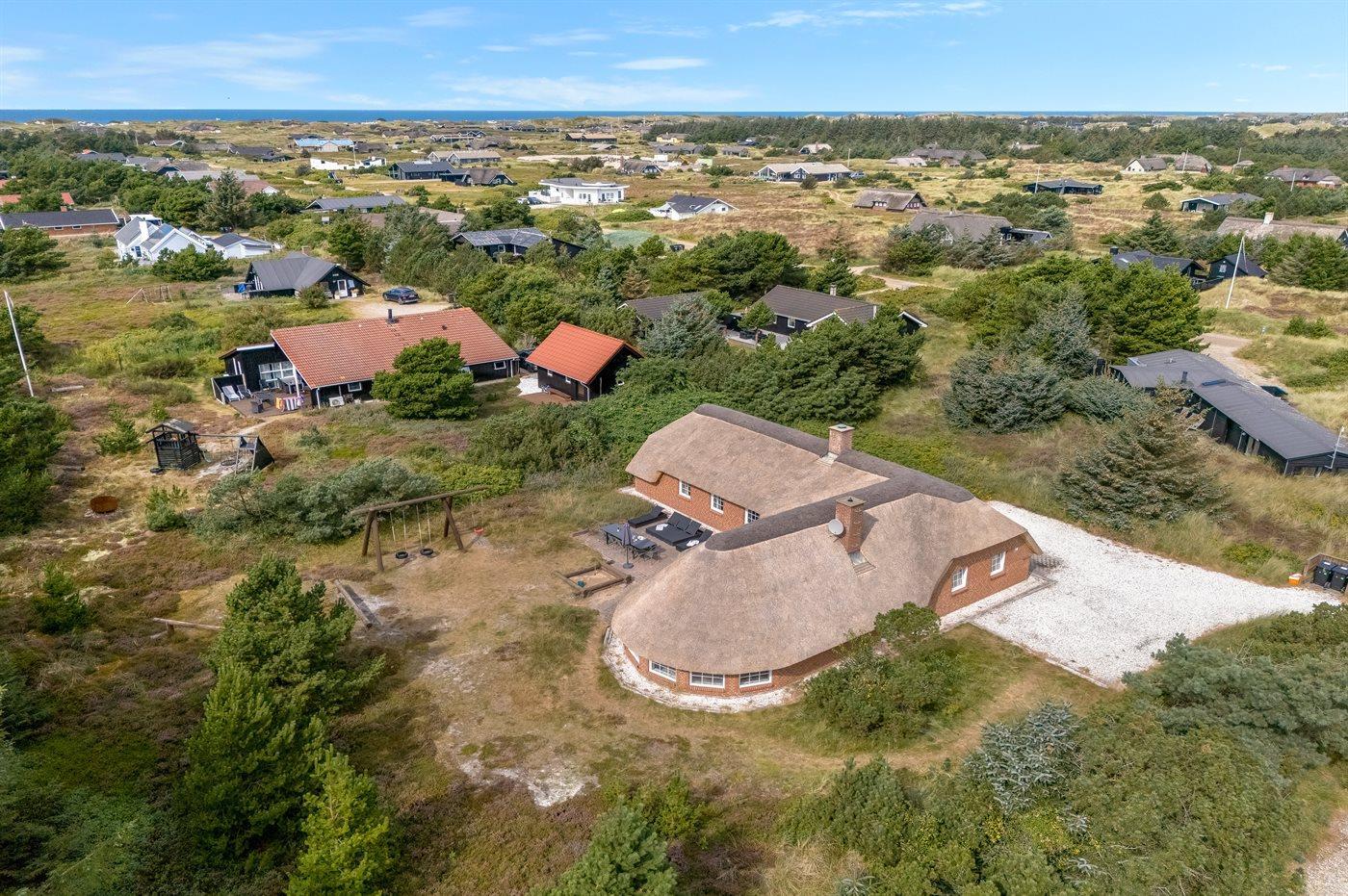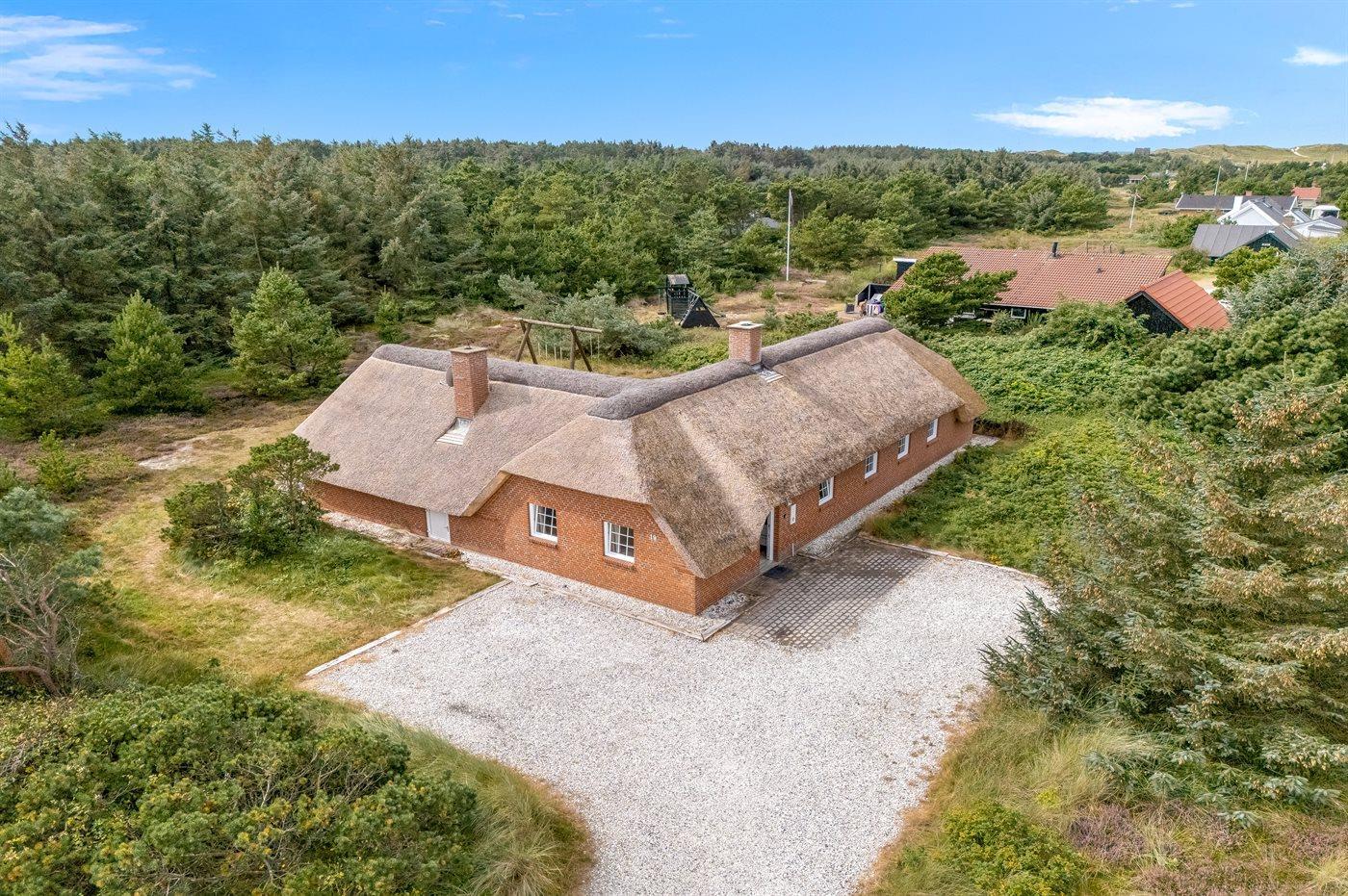 I et naturskønt område på Holmsland Klit, kun 900 m fra Vesterhavet, og få min. kørsel fra badebyen Søndervig, ligger dette dejlige og rummelige sommerhus. Huset er bygget i sten med stråtag i 1994 og ligger på en skøn natur-/klitgrund. Åbent terrasseareal med diverse havemøbler, hvor I kan slappe af og se børnene lege i sandkassen eller på gyngen. Klinkegulve, dog trægulve i soveværelserne. Stor, skøn pool-afdeling, hvor der er rig mulighed for at motionere og slappe af et godt sted til hygge og samvær. Her er der swimmingpool, børnebassin, svømmetræner, rutsjebane, 5-pers. standvands-spabad, sauna og adgang til et af husets badeværelser med bruseniche og gulvvarme. Der er endnu et badeværelse med bruseniche og gulvvarme. Stort køkken med bl.a. amerikansk køleskab (køl 518 l/frys 175 l), mikrobølgeovn, varmluftovn og opvaskemaskine. Hyggeligt indrettet opholdsstue med brændeovn, TV, DVD-afspiller og stereoanlæg med CD-afspiller. 6 soveværelser: 4 med dobbeltseng og 2 med hver 2 enkeltsenge. Af yderligere udstyr kan vaskemaskine og tørretumbler nævnes. Til de mindste feriegæster er der barneseng og høj barnestol. Et lyst og imødekommende sommerhus, som er velegnet til flere familier. I kan cykle eller køre til badebyen Søndervig, som har et godt udbud af butikker og aktiviteter. Der er supermarked, spændende butikker, restauranter og Lalandia. I kan også fiske og spille golf i området.