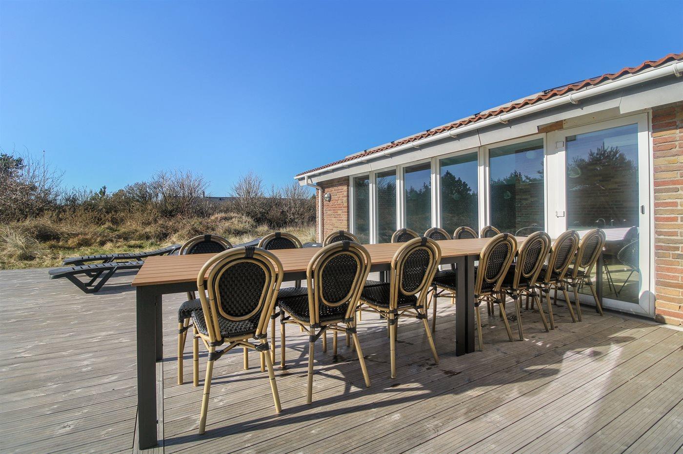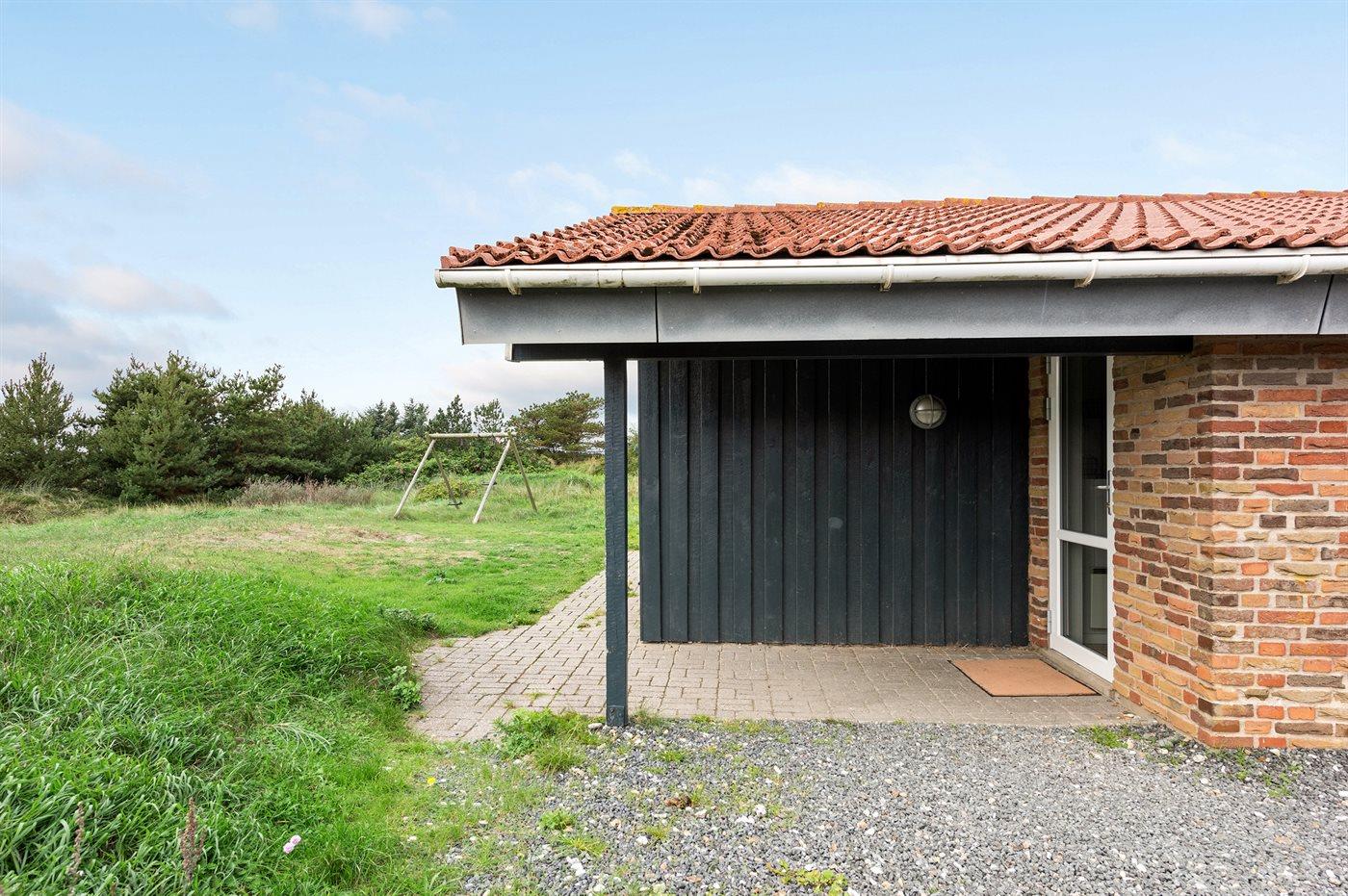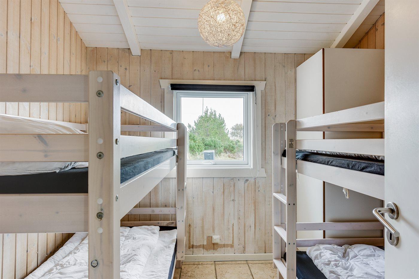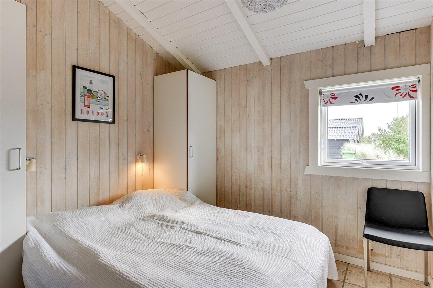 I det skønne sommerhusområde Søndervig, kun 900 m fra Vesterhavet, ligger dette dejlige sommerhus med gratis internetadgang (egen computer skal medbringes), pool, spa og sauna. Huset er bygget i sten i 1991 og moderniseret i 2010. Det ligger på en skøn natur-/klitgrund, hvor der er sandkasse og gynge til børnene. Skøn delvist afskærmet terrasse med diverse havemøbler, hvor I rigtigt kan sidde og slappe af og nyde solen. Indvendig er der klinkegulv med gulvvarme overalt. Skøn pool-afdeling med swimmingpool, hvor der er installeret en energivenlig luft til vand varmepumpe til opvarmning af poolen. Denne medvirker til store besparelser på elforbruget. I poolafdelingen findes desuden 2-pers.-spabad samt direkte adgang til det ene badeværelse, hvor der er bruseniche og gulvvarme. Herfra er der adgang til husets sauna. Der findes endnu et badeværelse med gulvvarme og bruseniche. Godt indrettet køkken med komfur med keramiske kogeplader og varmluftovn, mikrobølgeovn, opvaskemaskine, fryser samt køleskab med vanddispenser. God spiseplads. Hyggelig opholdsstue med brændeovn, TV med Boxer-tv, stereoanlæg med CD-afspiller, DVD-afspiller og Playstation2. Husets sovepladser fordeler sig på 5 soveværelser: 3 med dobbeltseng, 1 med 3/4-seng og 1 med 2 køjesenge (4 sovepladser). Til de mindste feriegæster er der barneseng og høj barnestol. Desuden gratis, trådløs internetforbindelse (computer skal medbringes), vaskemaskine og tørretumbler til rådighed. Et dejligt sommerhus, som er velegnet til flere familier, og som ligger i et område, hvor der er gode muligheder for gå- og cykelture, og for at nyde den skønne vestjyske natur. I kan cykle eller køre til badebyen Søndervig, hvor der er et stort moderne supermarked, restauranter, små butikker, bowling- og fitnesscenter m.m. I kan også spille golf og fiske i området.