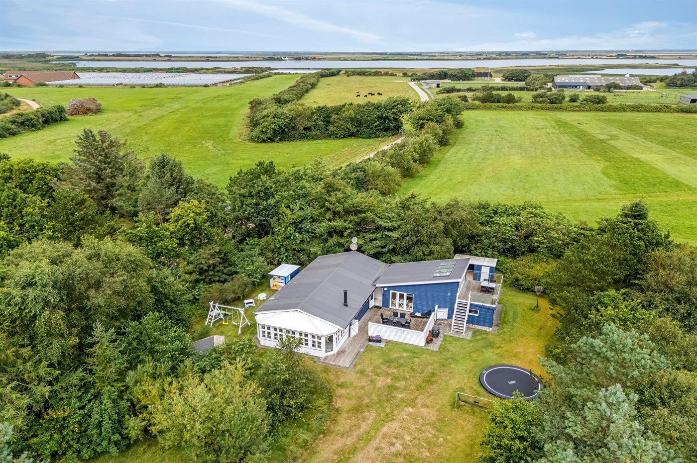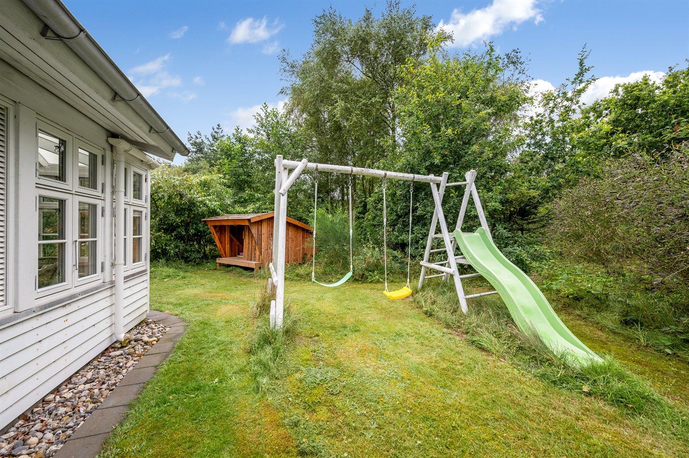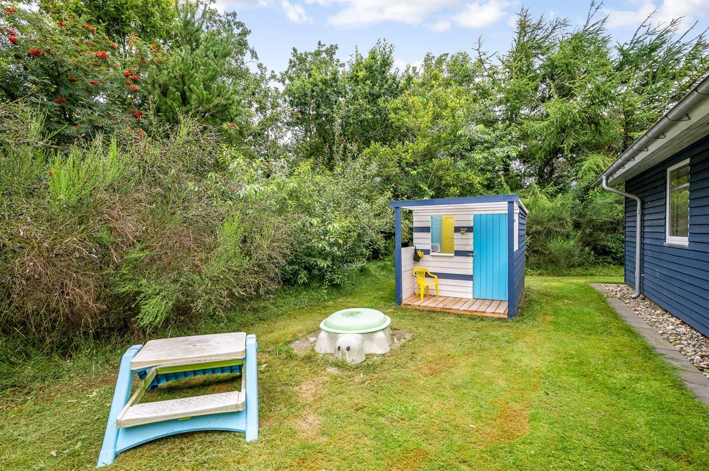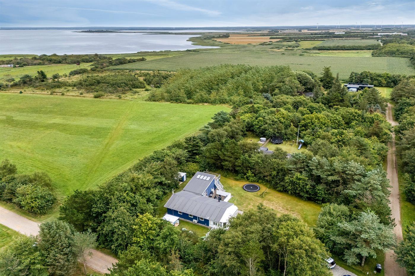 Ferieboligen er beliggende på en 2009 m² stor naturgrund. Der er 2500 m til havet. Der er 600 m til fjorden. Nærmeste forretning er beliggende i en afstand af 3000 m. Der er en golfbane i en afstand af 2000 m. Til ferieboligen hører lukket terrasse. Udgang til altan. Ligeledes er der adgang til udestue. Gynge. Sandkasse. Legehus. Trampolin. Rutchebane. Fodboldmål. Der ligger en legeplads i en afstand af 500 m. Shelter. Parkering ved ferieboligen.