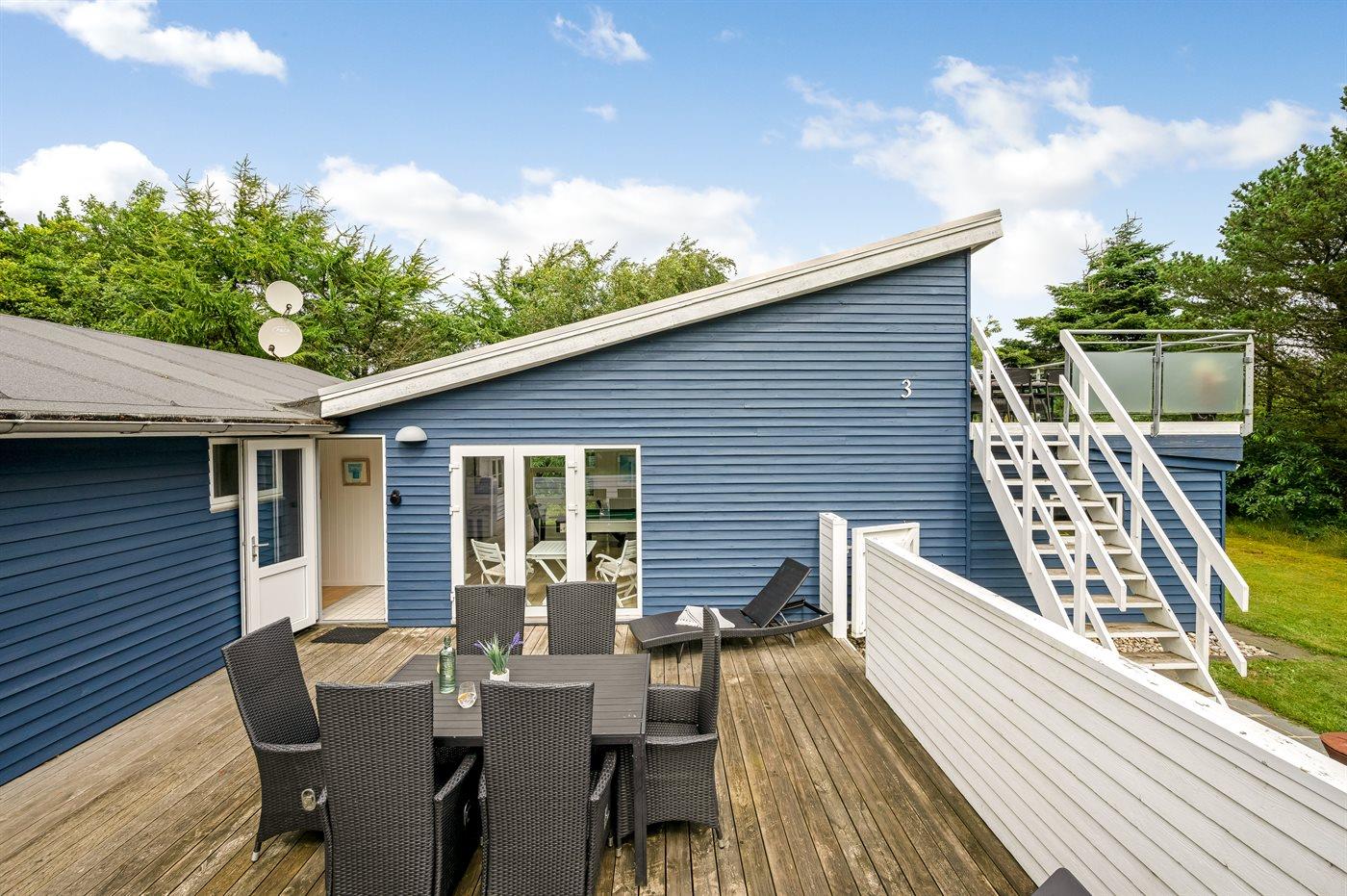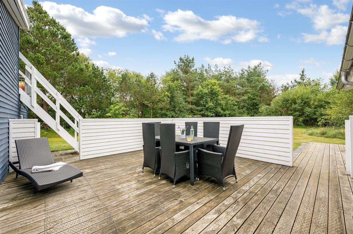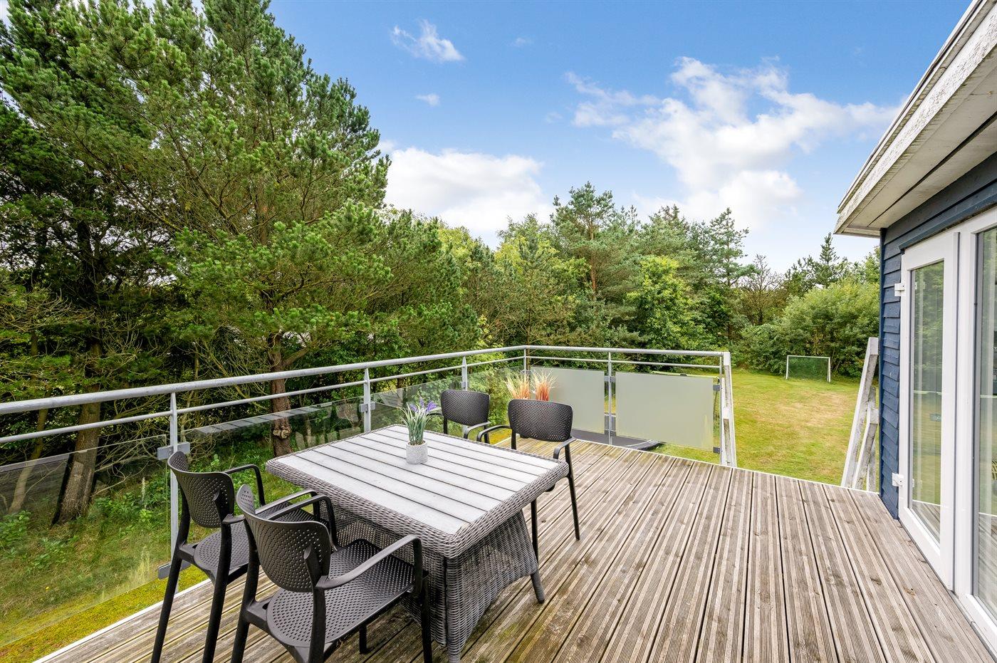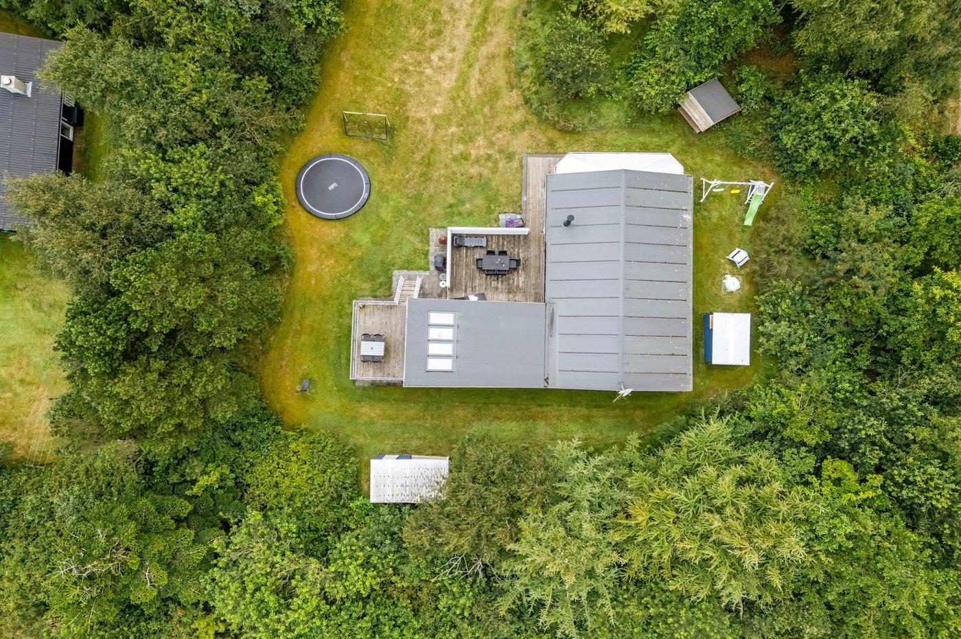Ferieboligen er beliggende på en 2009 m² stor naturgrund. Der er 2500 m til havet. Der er 600 m til fjorden. Nærmeste forretning er beliggende i en afstand af 3000 m. Der er en golfbane i en afstand af 2000 m. Til ferieboligen hører lukket terrasse. Udgang til altan. Ligeledes er der adgang til udestue. Gynge. Sandkasse. Legehus. Trampolin. Rutchebane. Fodboldmål. Der ligger en legeplads i en afstand af 500 m. Shelter. Parkering ved ferieboligen.