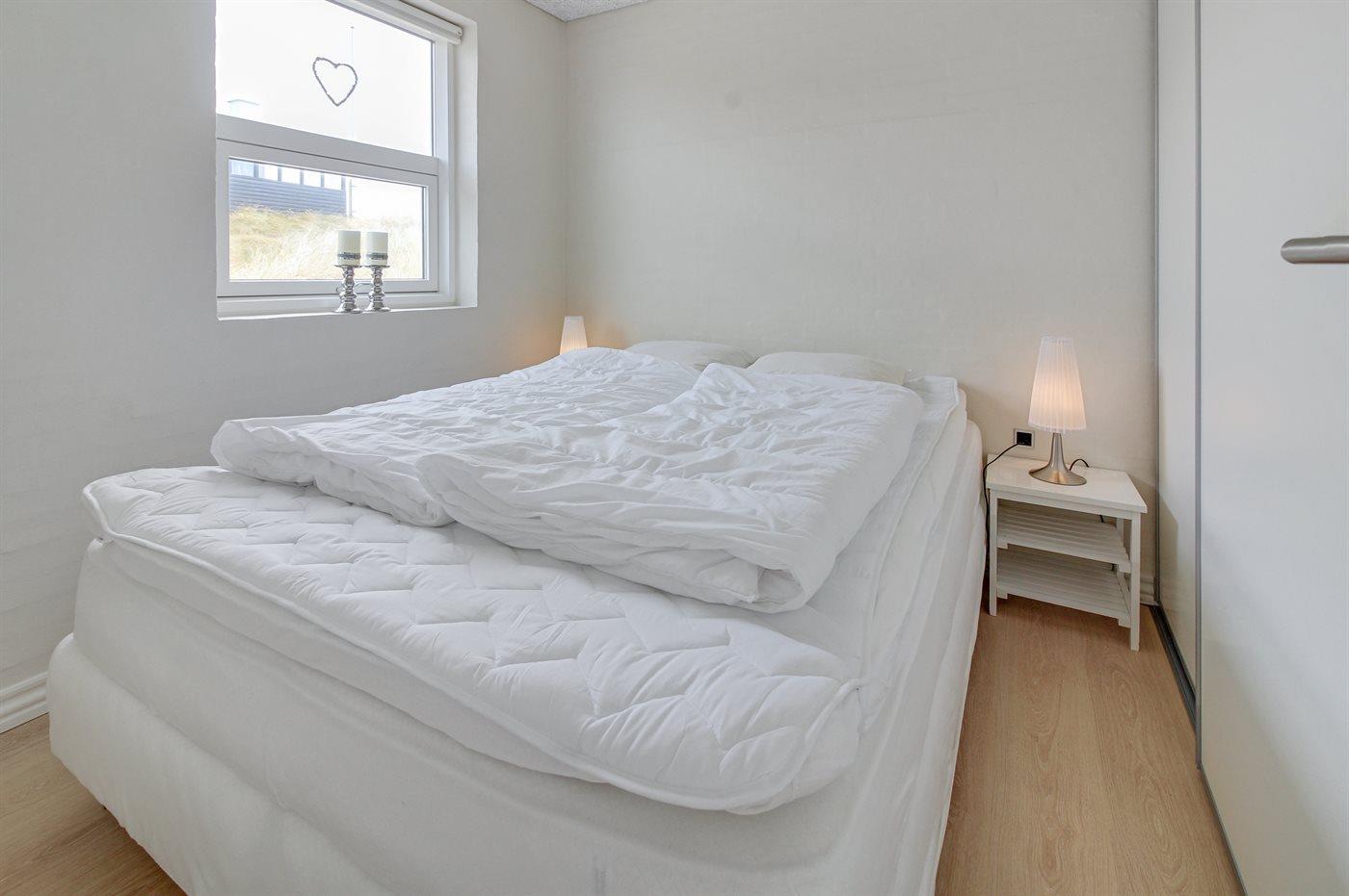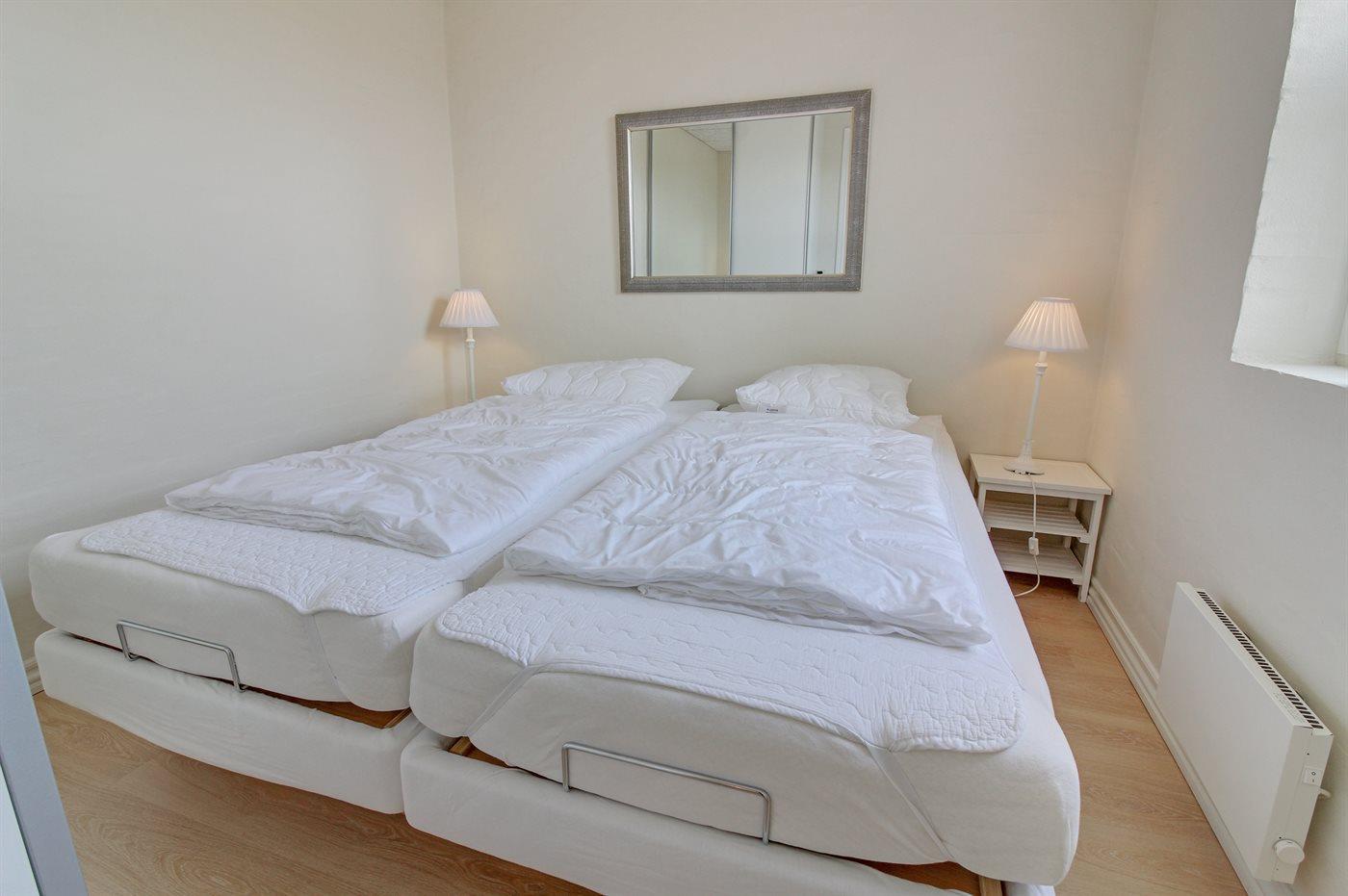 Der er i alt 2 soveværelser. Sovepladserne fordeler sig på: 2 sovepladser i dobbeltseng.2 sovepladser i elevationssenge.