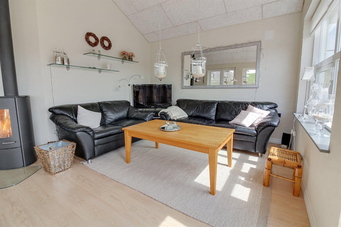 Tæt på Søndervig finder du dette idyllisk beliggende sommerhus nær Vesterhavet, placeret på en kuperet grund med en fantastisk udsigt over det omkringliggende klitlandskab. Sommerhuset byder på flere skønne terrasser, herunder en østvendt, privat terrasse, hvor morgenkaffen kan nydes i solen, mens lyden af Vesterhavets bølger skaber en rolig baggrund.
