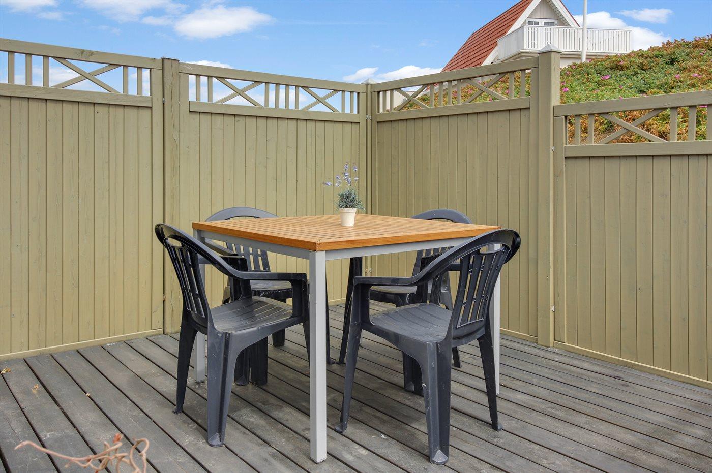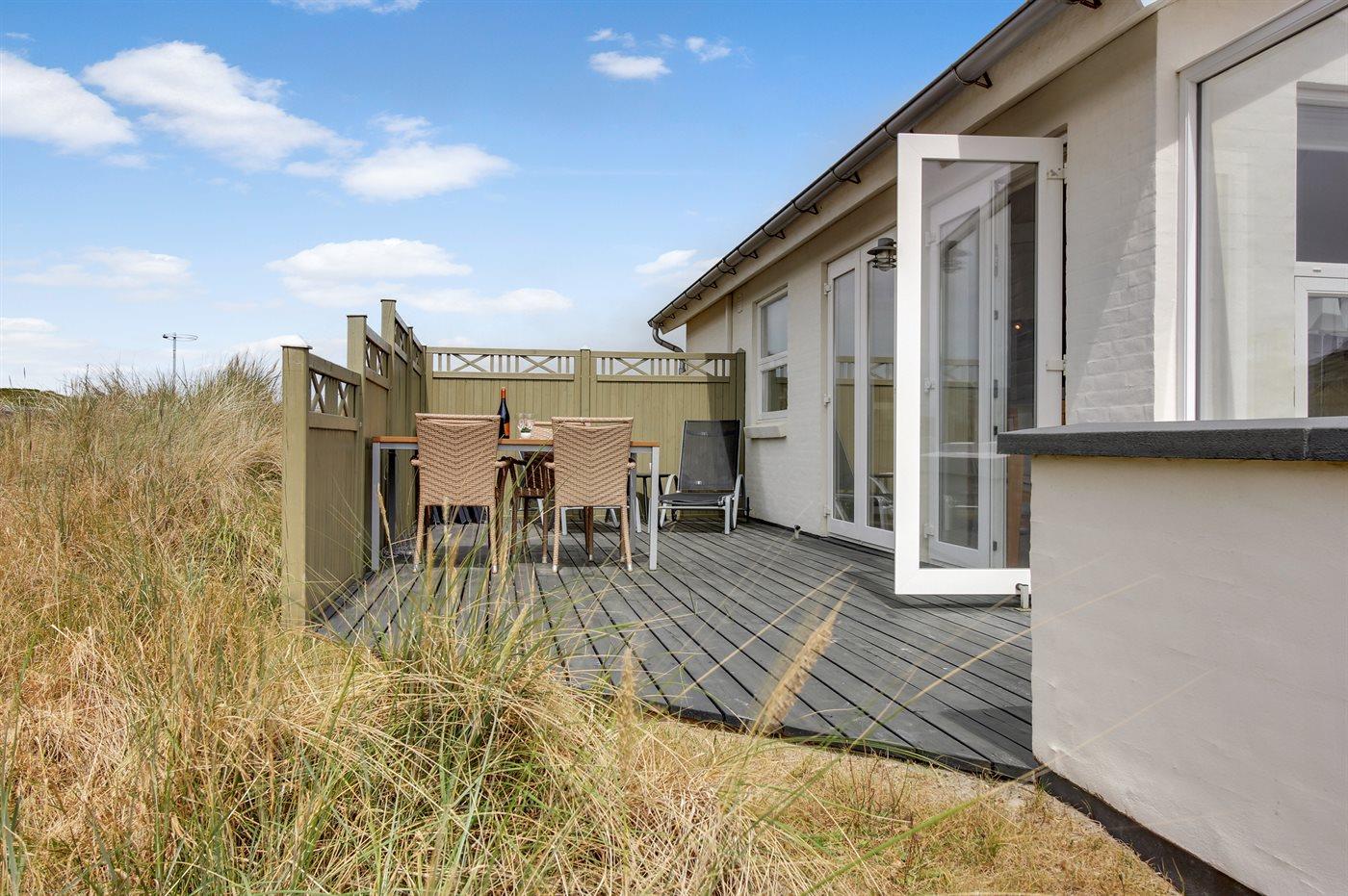 Oplev den unikke atmosfære i Søndervig, hvor aktiviteter og shopping forenes. Efter en dag fyldt med oplevelser kan du slappe af og nyde den fredfyldte stemning på sommerhusets dejlige terrasse.