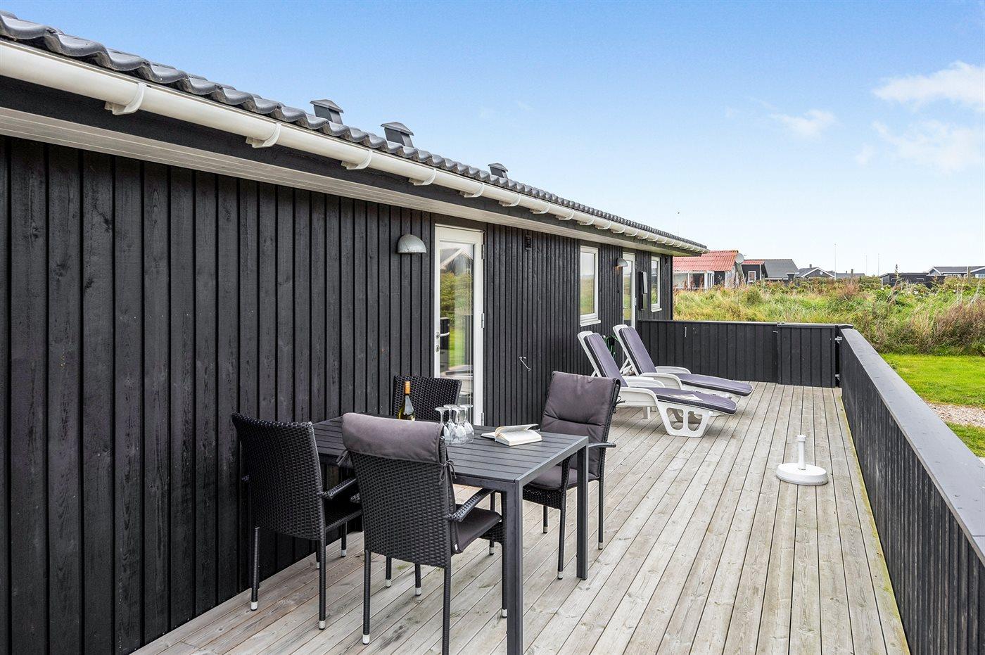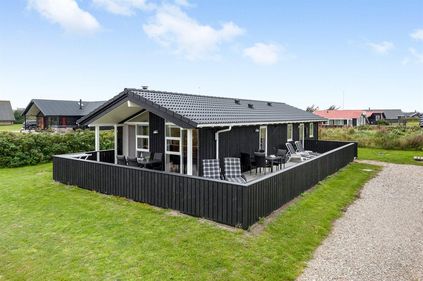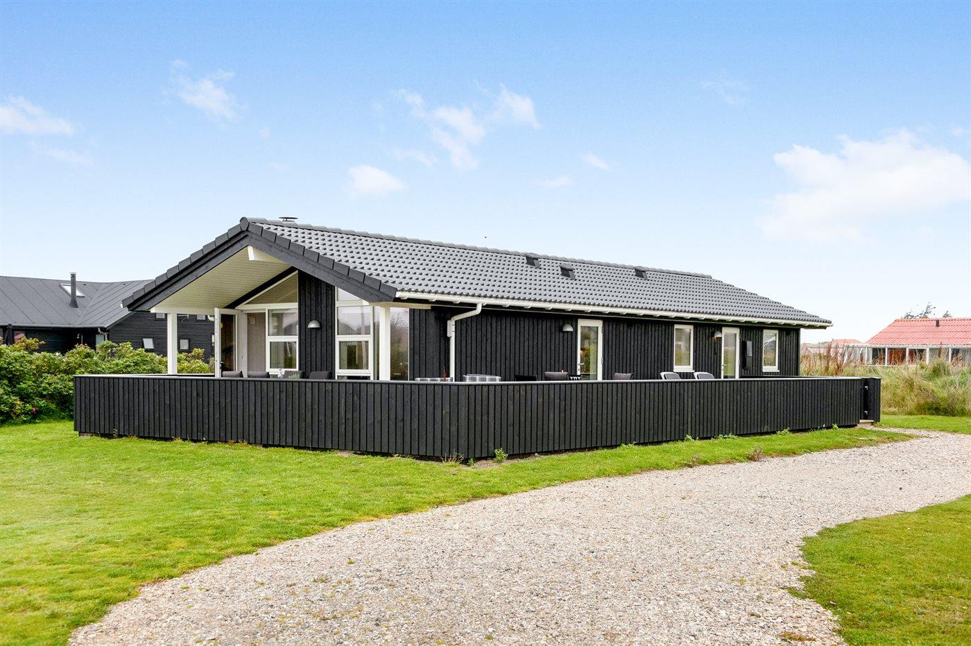 Flot sommerhus fra 2017 med stor terrasse, spa og sauna nær havet i Søndervig.