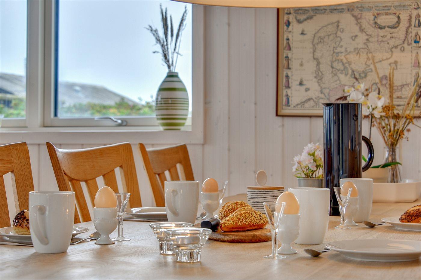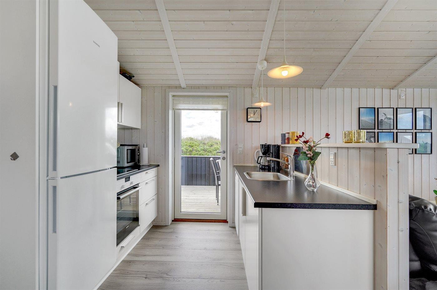 Køkkenet er udstyret med 1 køleskab. Der er 4 keramiske kogeplader, varmluftovn, mikrobølgeovn samt opvaskemaskine.