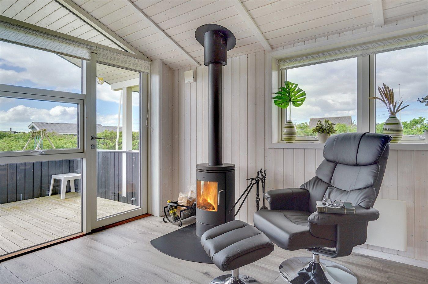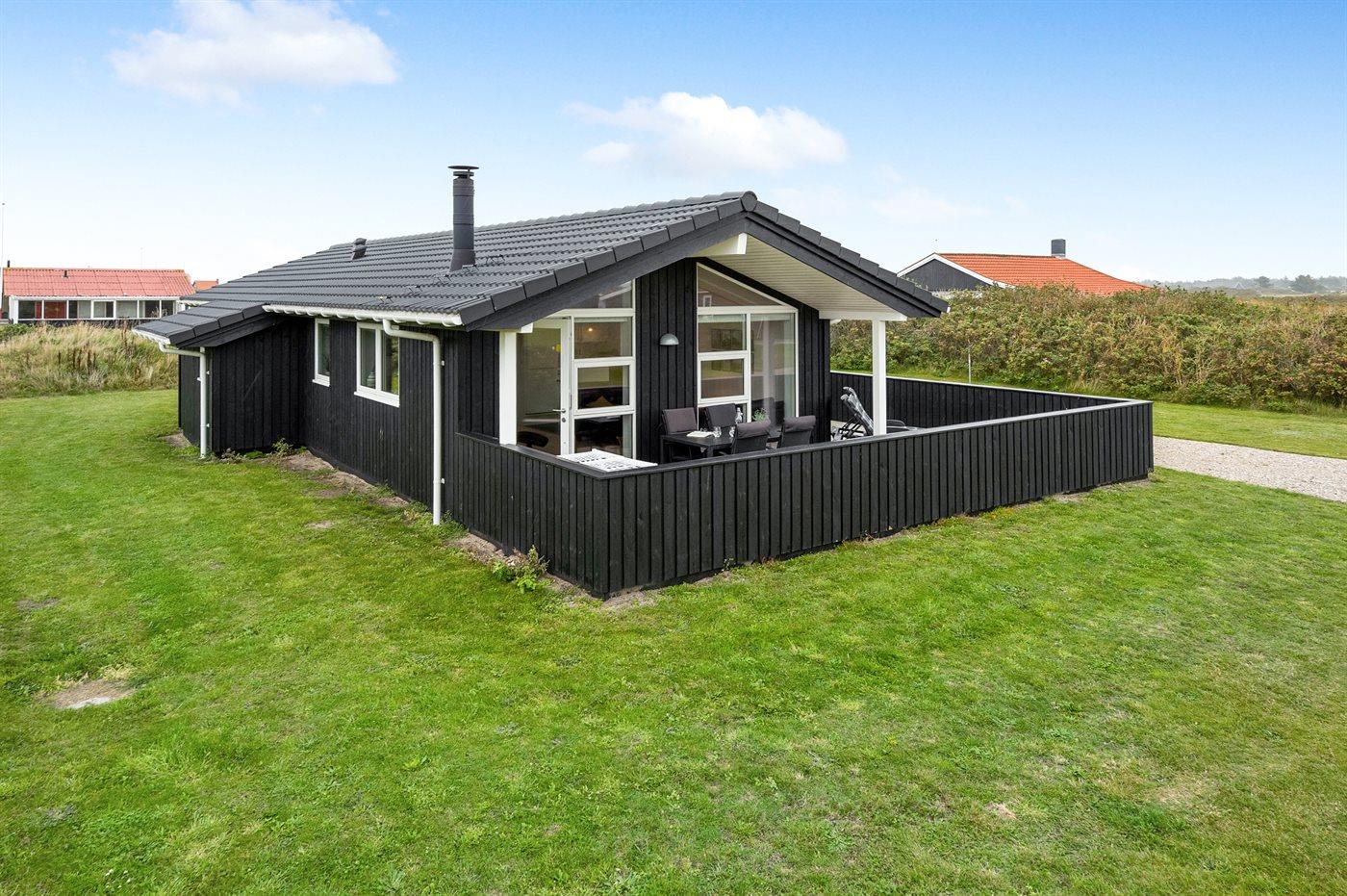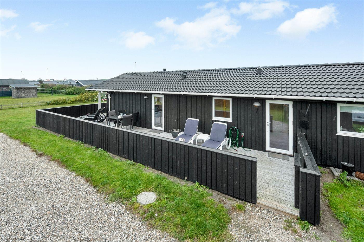Dette flotte sommerhus, bygget i 2017, ligger på en stor grund med plads til udendørs aktiviteter. Huset er flot og lyst indrettet og i den hyggelige spise-/opholdsstue sørger de store vinduespartier for et godt lysindfald. Til huset hører en stor og aflukket terrasse, delvist overdækket, med havemøbler og fine læ forhold.