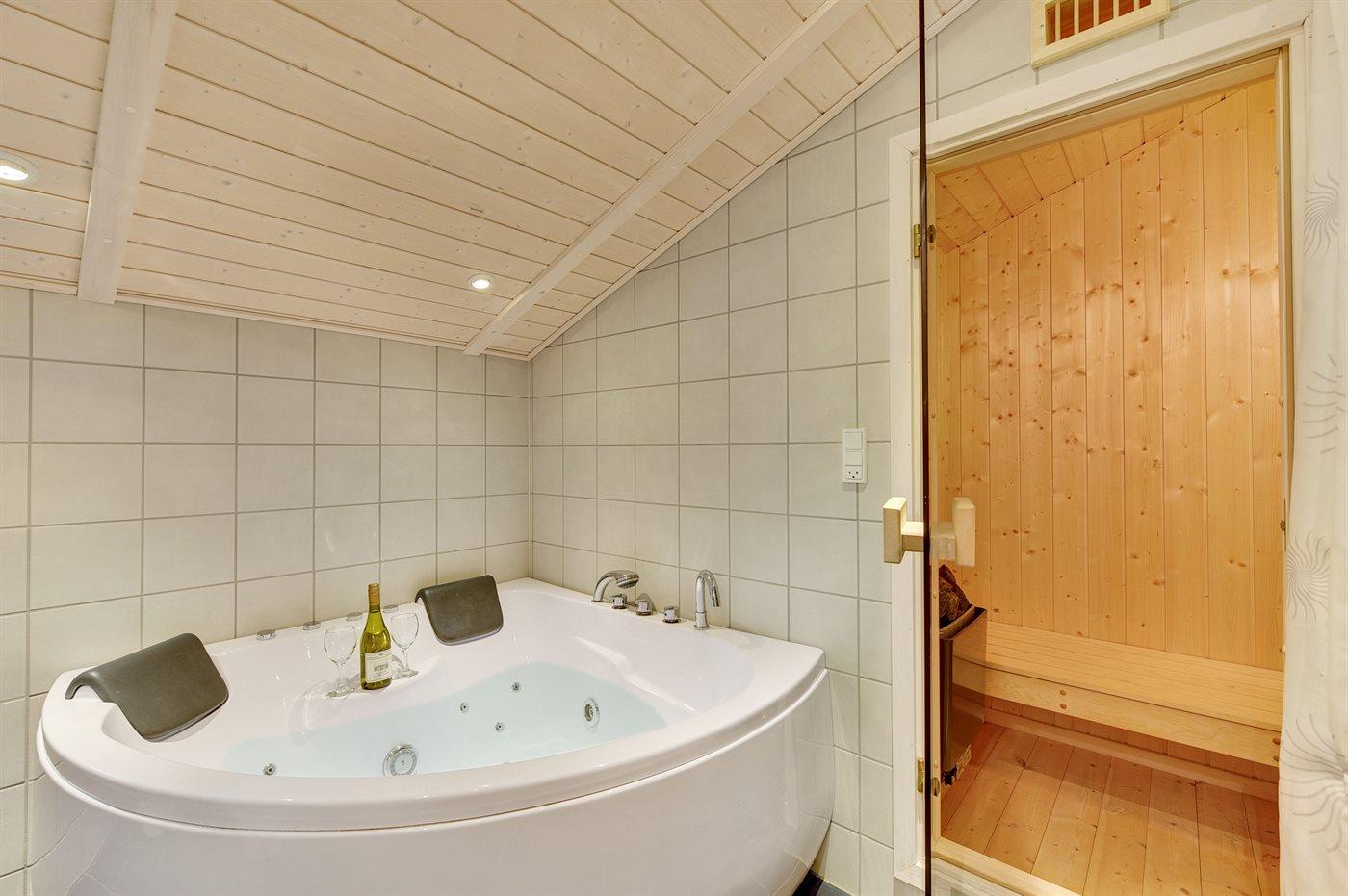 Der er 1 badeværelse med bruseniche og 2 toiletter, heraf 1 gæstetoilet. Der er gulvvarme på 1 badeværelse. I saunaen er der mulighed for afslapning.