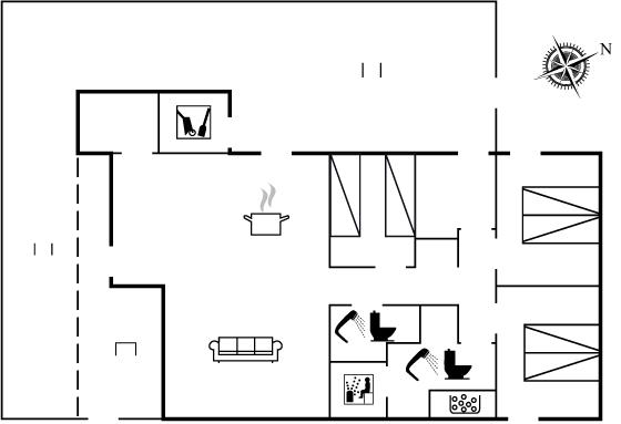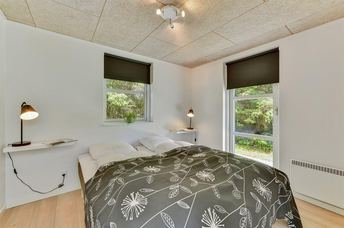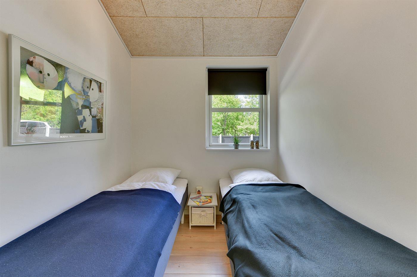 Der er i alt 3 soveværelser. Sovepladserne fordeler sig på: 4 sovepladser i dobbeltsenge. 2 sovepladser i enkeltsenge. Derudover er der 1 stk. barneseng.