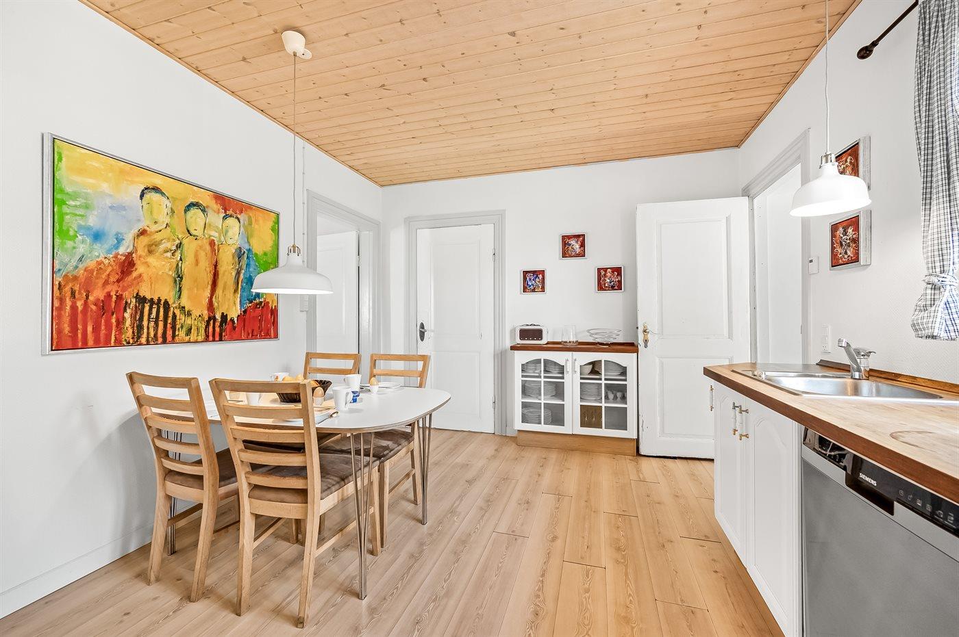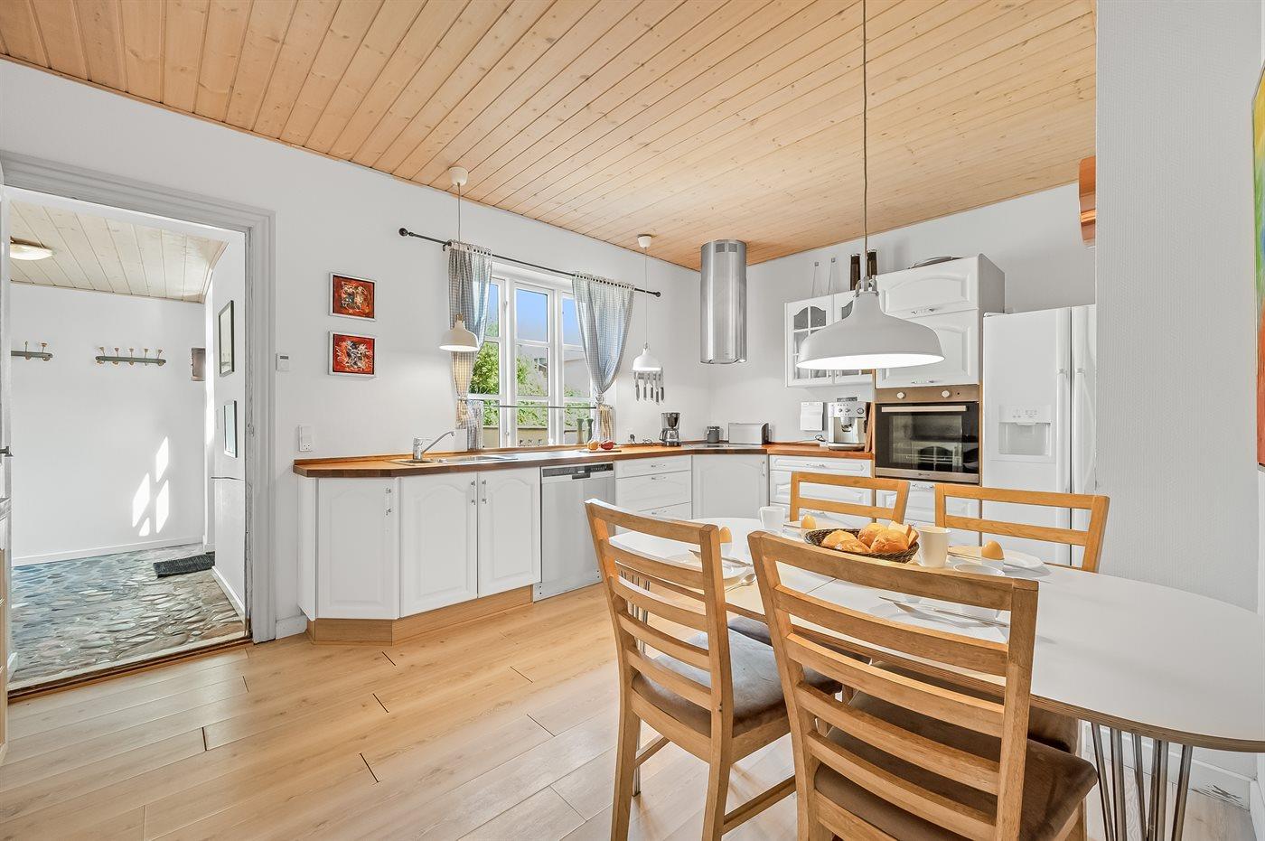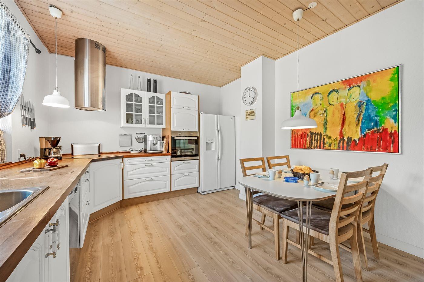Køkkenet er udstyret med 1 køleskab. Der er 4 keramiske kogeplader, varmluftovn, mikrobølgeovn samt opvaskemaskine.