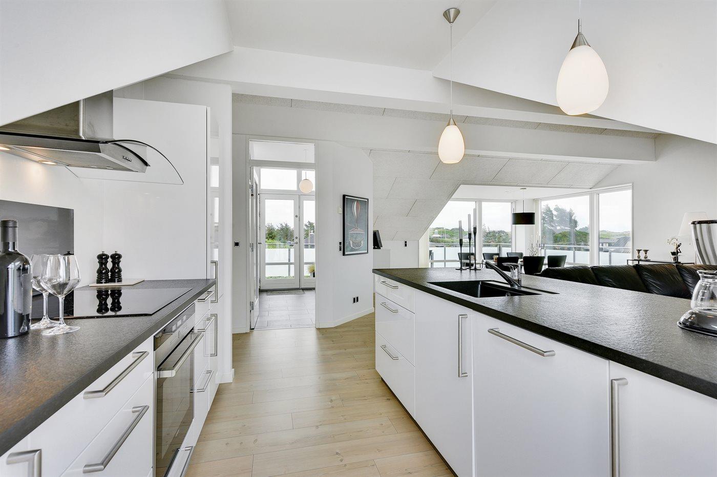 Køkkenet er udstyret med 1 køleskab. Der er 4 keramiske kogeplader, varmluftovn, mikrobølgeovn samt opvaskemaskine.