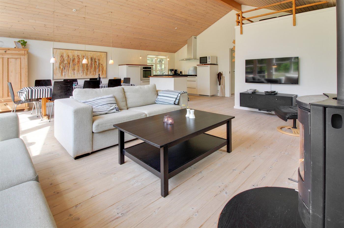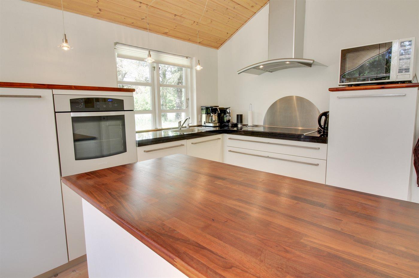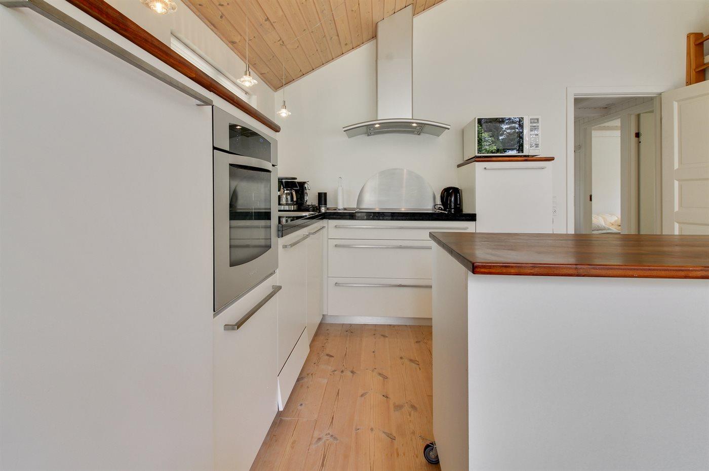 Køkkenet er udstyret med 1 køleskab. Der er 4 keramiske kogeplader, varmluftovn, mikrobølgeovn samt opvaskemaskine.