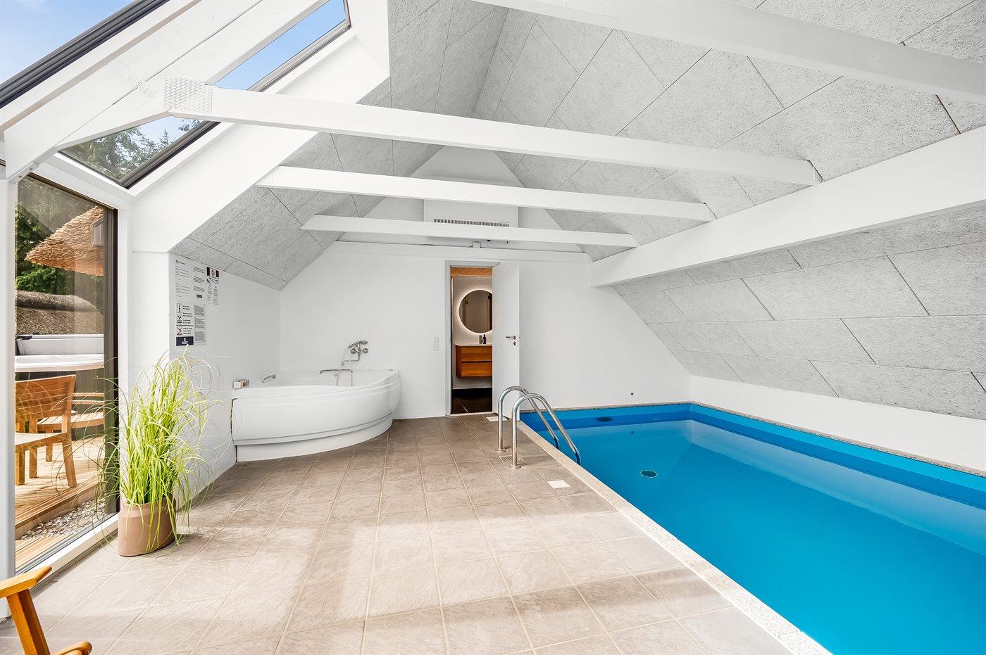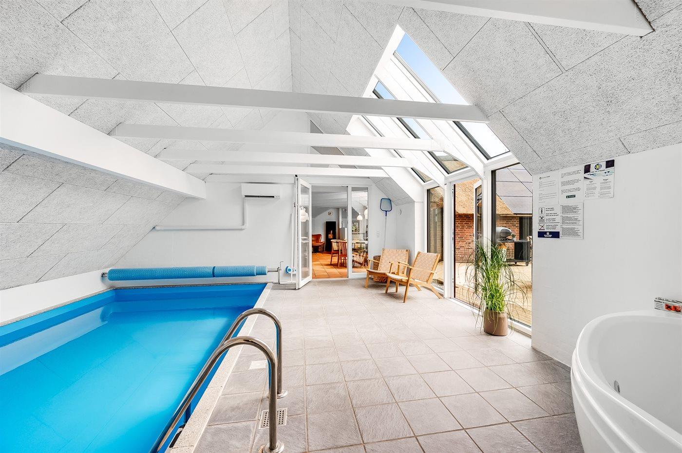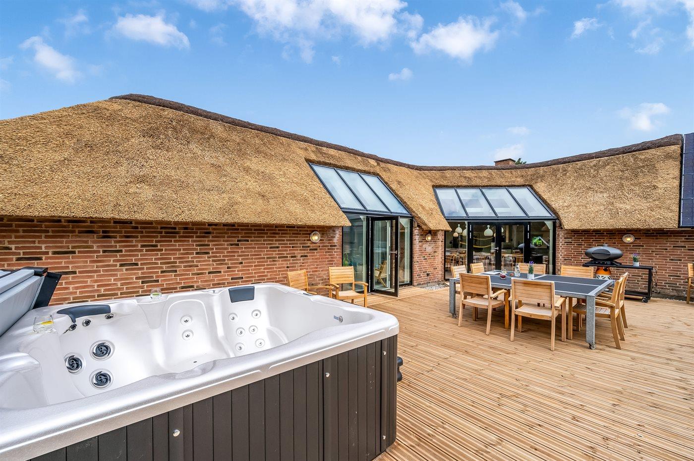 Dette imponerende feriehus er skabt til både børn og voksne med en saltvandspool og en lækker udendørs spa til 6 personer. De store ovenlysvinduer, det høje loft til kip og de hvidskurede vægge skaber en atmosfære af lys, rummelighed og velvære. Et ideelt feriehus for flere familier med børn, der ønsker en afslappende ferie.