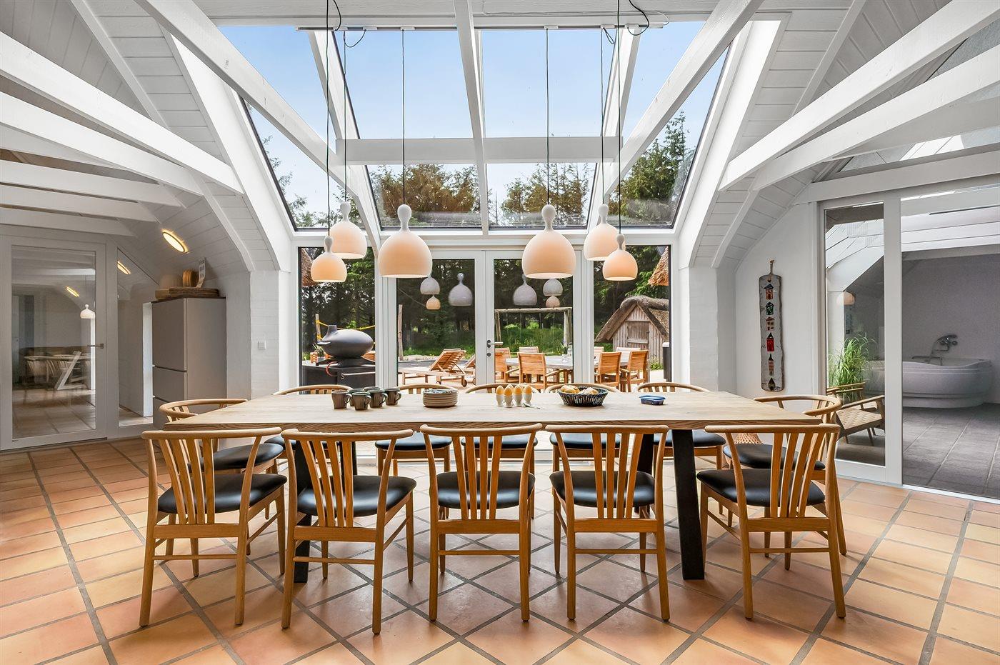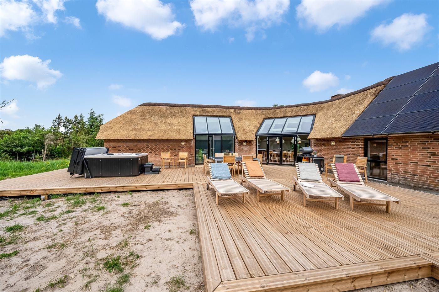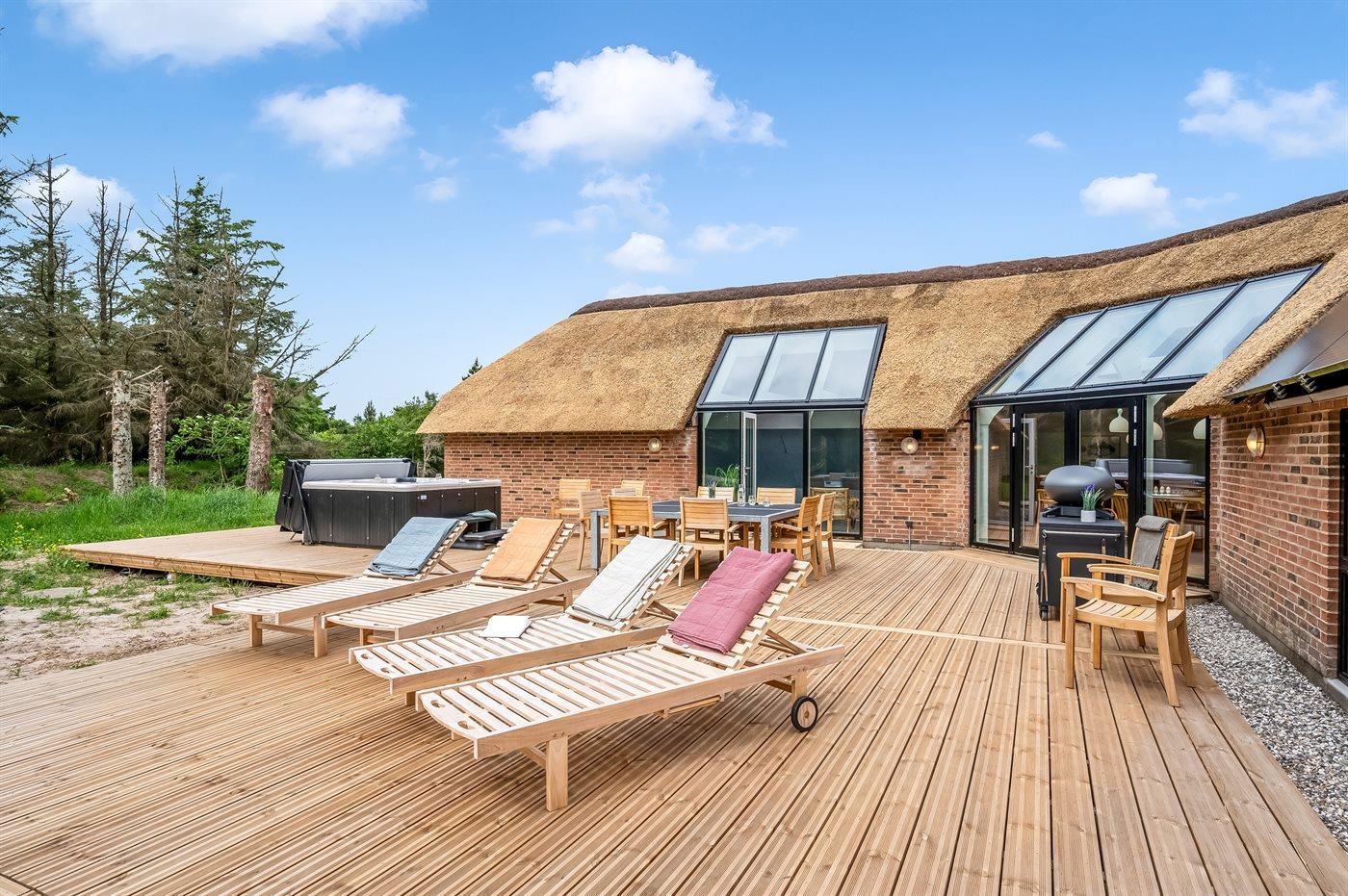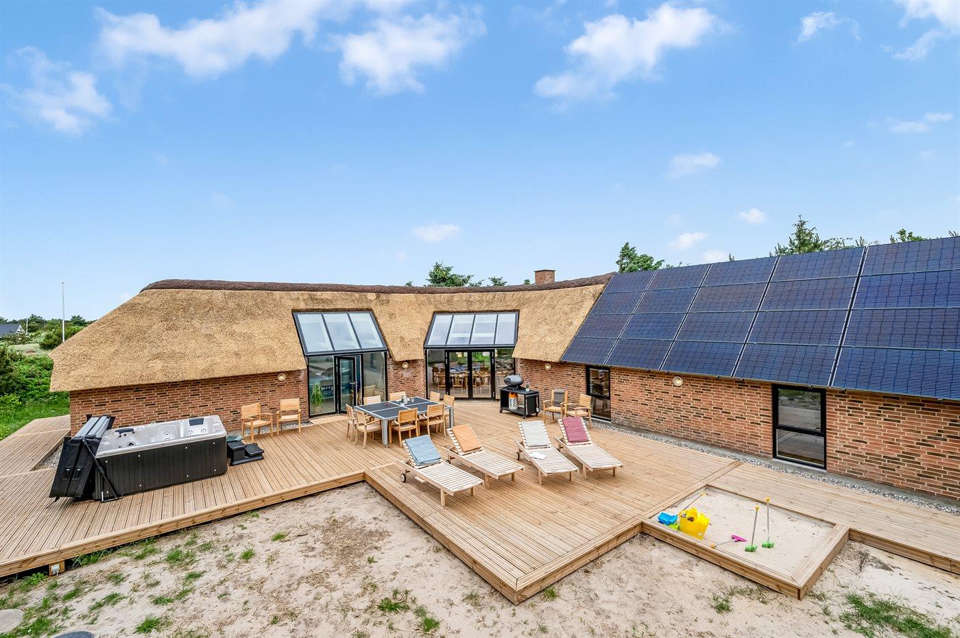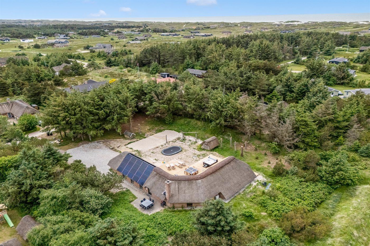 Dette pragtfulde sommerhus på 220 m2 er placeret i rolige og børnevenlige omgivelser for enden af en stille vej og på en ugeneret 2.500 m2 stor naturgrund omgivet af træer og buske. Totalrenoveret i 2024 med et nyt køkken og to moderne badeværelser. Kun 700 meter til Vesterhavets skønne sandstrand, 400 meter til en fiskesø og cirka 2 kilometer til Søndervig.