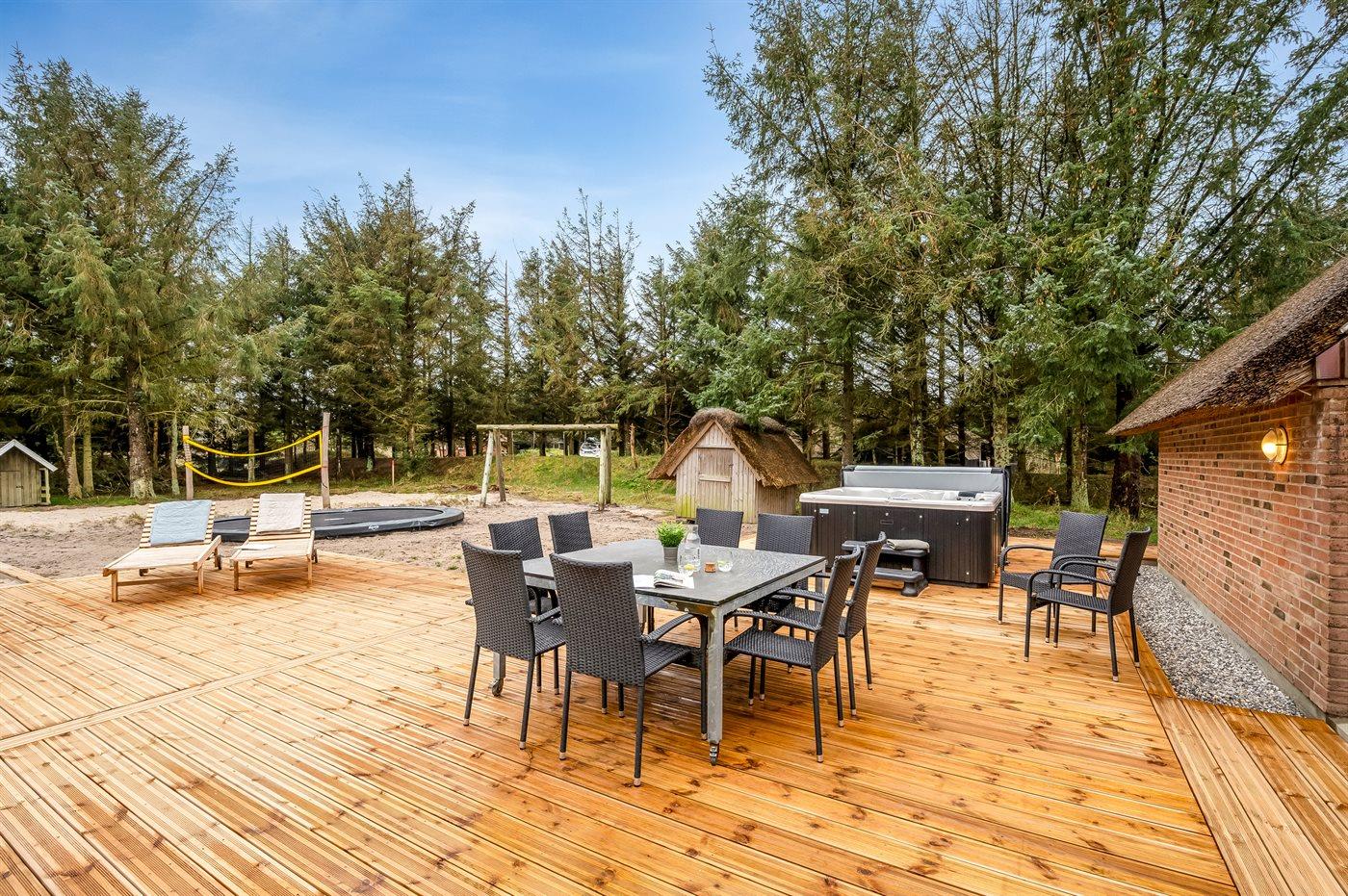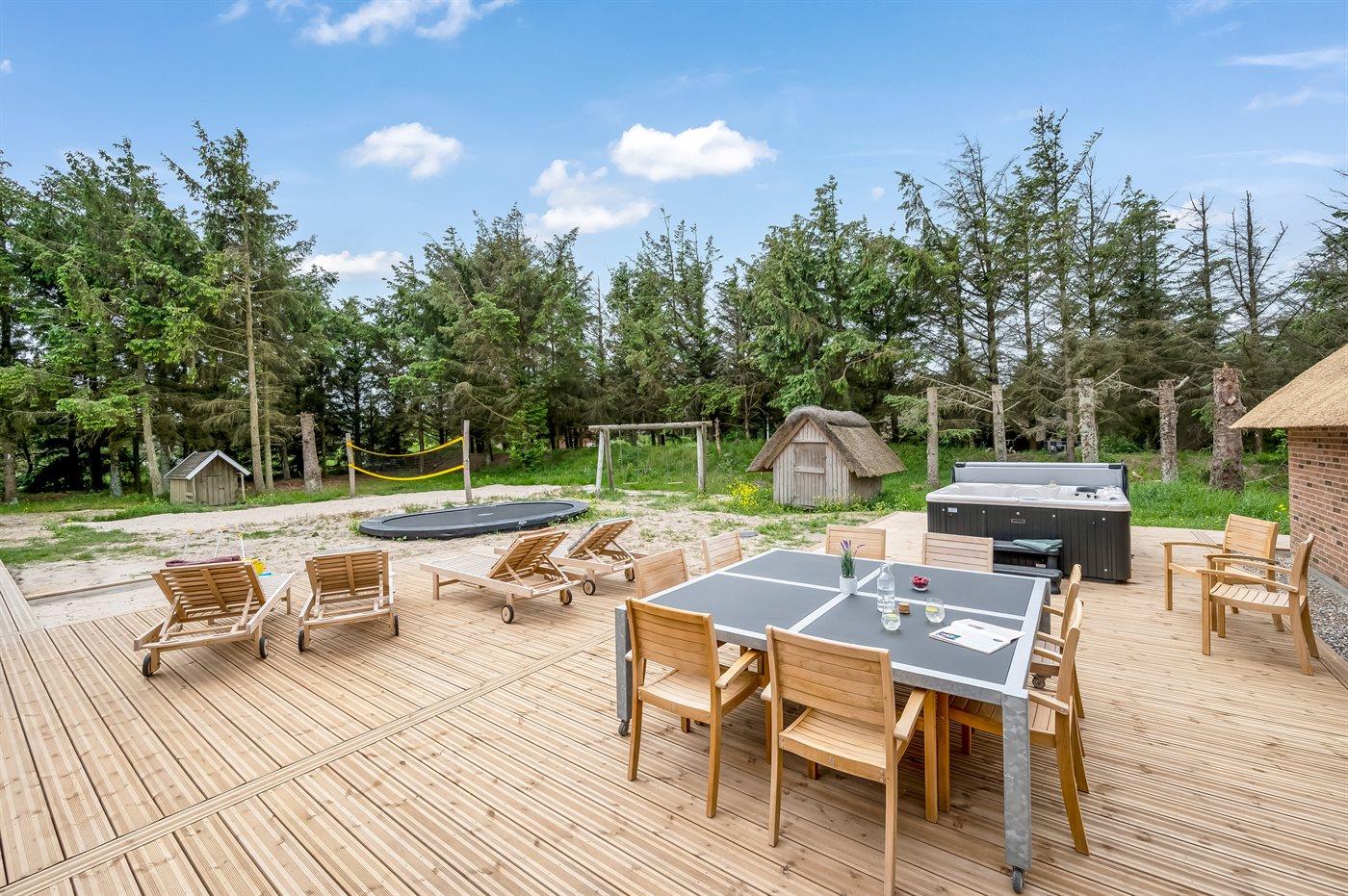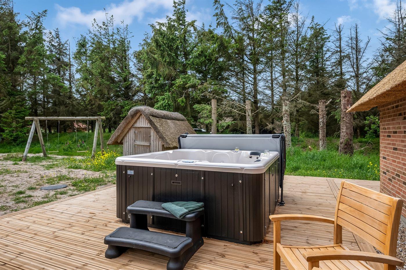 Familievenligt aktivitetshus med saltvandspool og udendørs spa tæt på Vesterhavets strand i Søndervig.