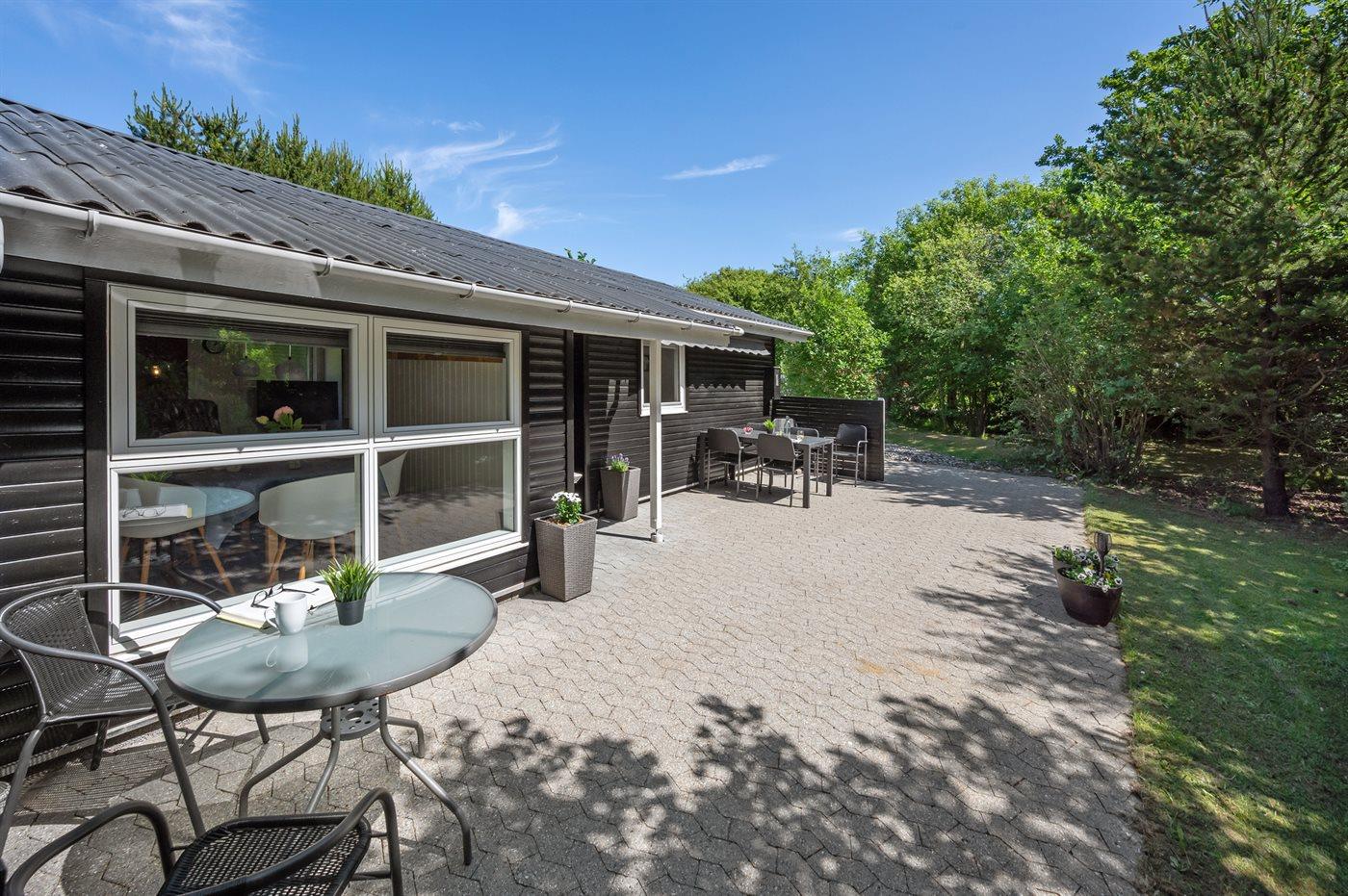 Hyggeligt sommerhus i Søndervig med stor have, terrasse, sauna og tæt på både hav og golfbane.