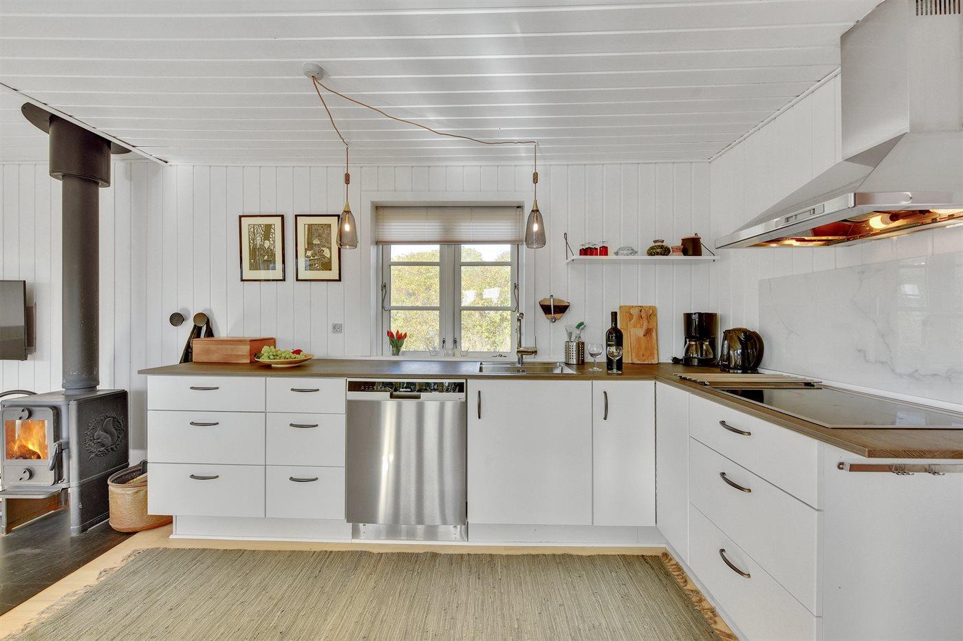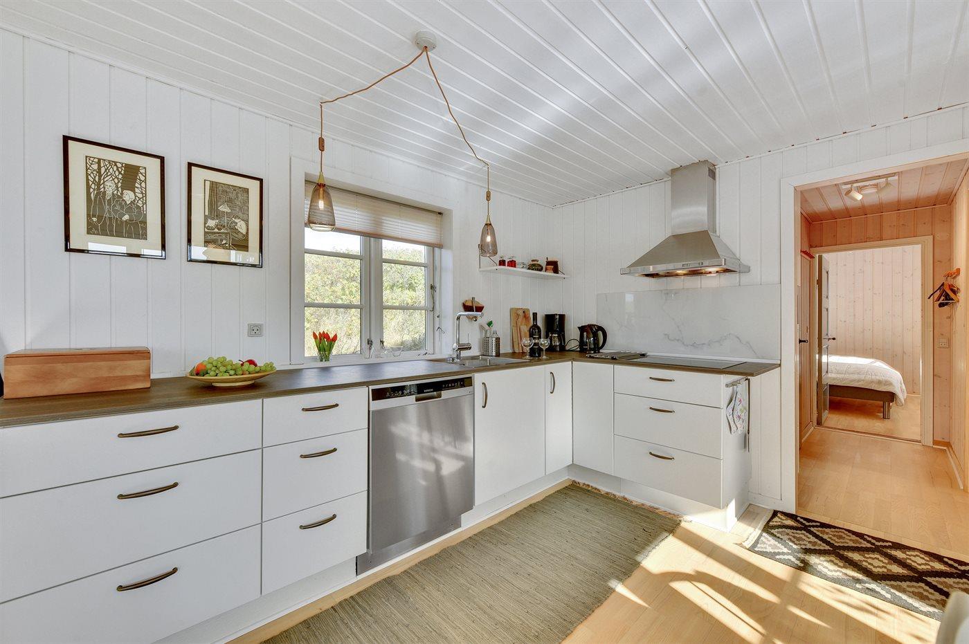 Køkkenet er udstyret med 1 køleskab. Der er 4 induktionskogeplader, varmluftovn, mikrobølgeovn samt opvaskemaskine.
