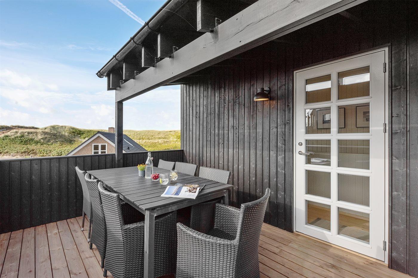 Ferieboligen er beliggende på en 400 m² stor klitgrund. Der er 100 m til havet. Nærmeste forretning er beliggende i en afstand af 600 m. Der er en golfbane i en afstand af 1500 m. Til ferieboligen hører 75 m² lukket terrasse. Desuden er der 6 m² overdækket terrasse. Udendørs bruser. Parkering ved ferieboligen.