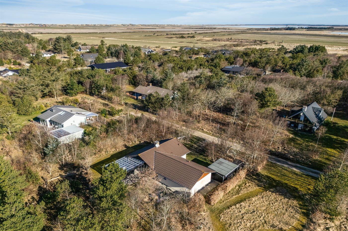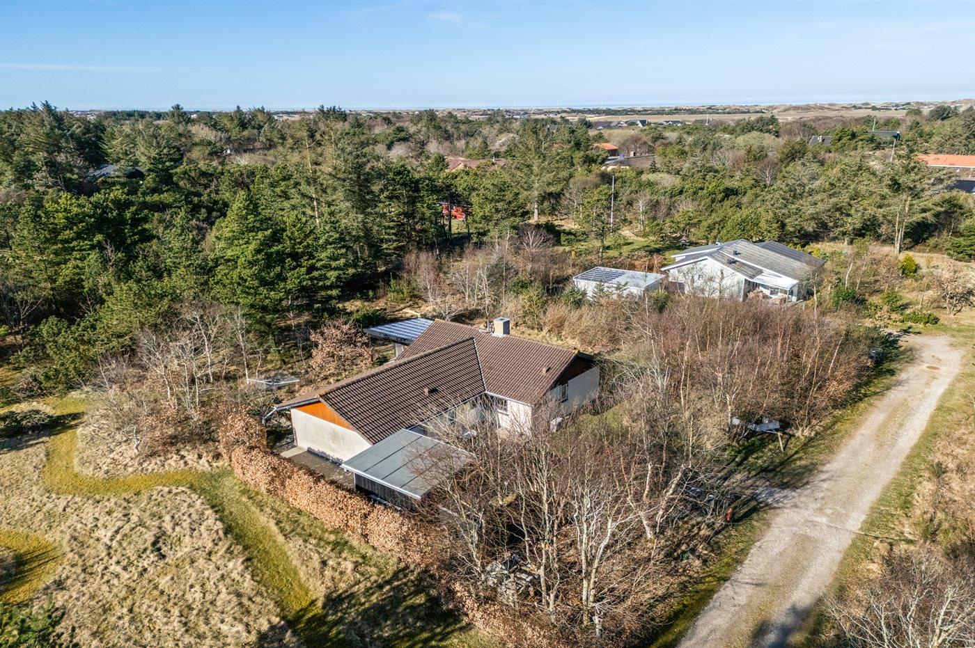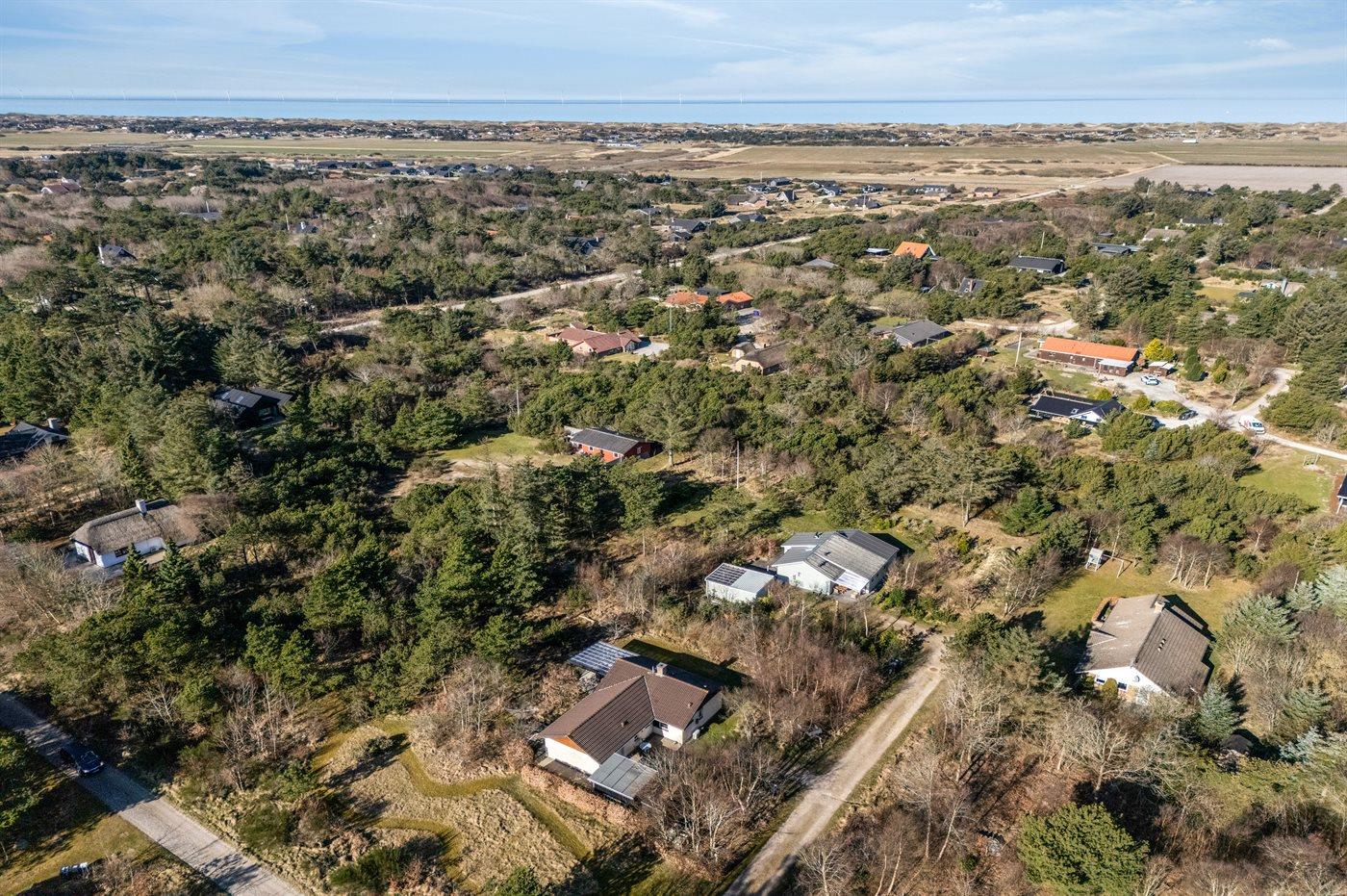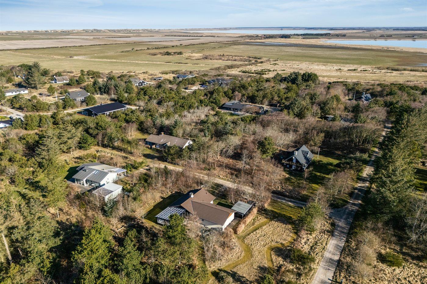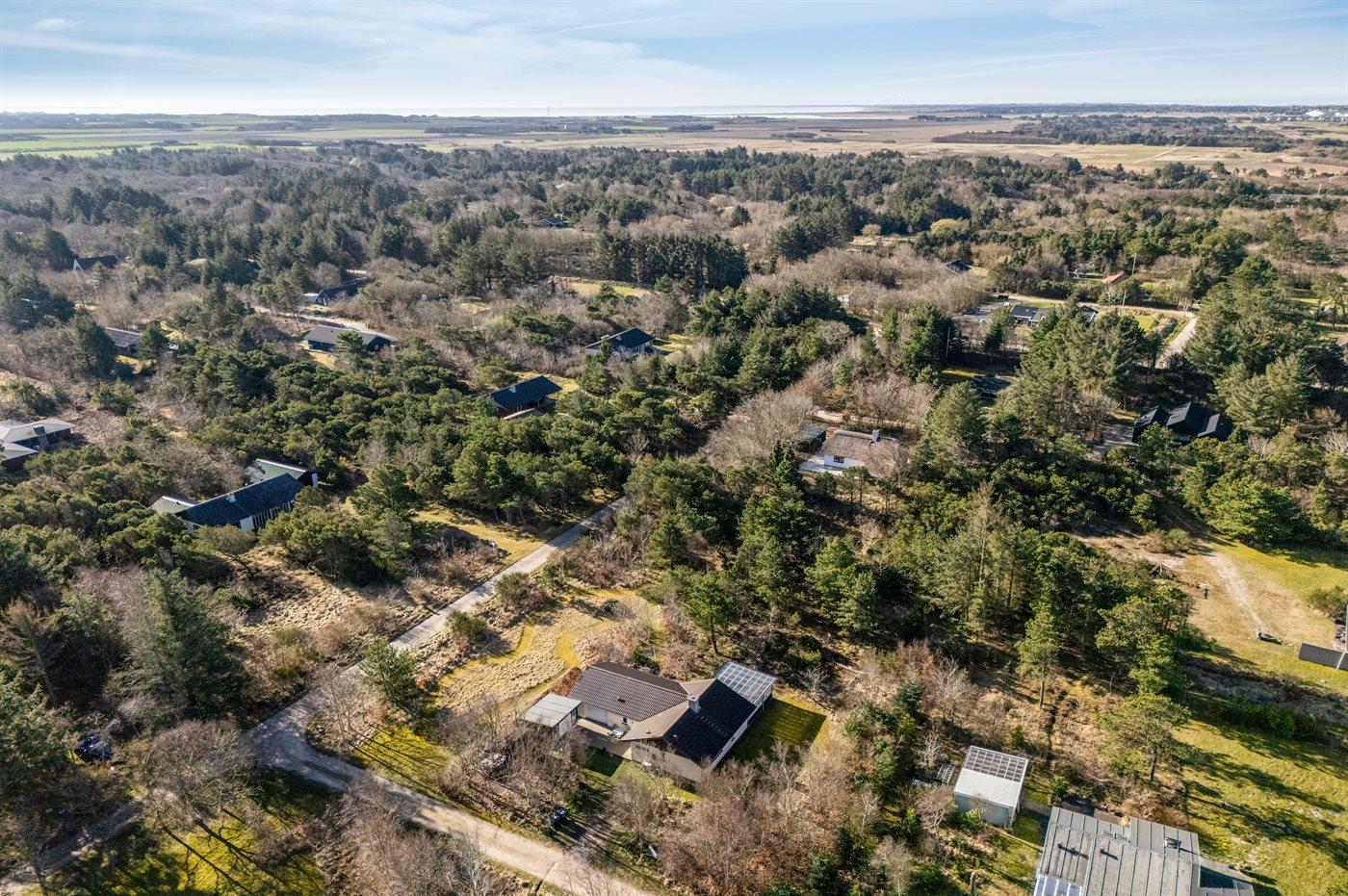 Ferieboligen er beliggende på en 2279 m² stor naturgrund. Grunden er indhegnet. Der er 1800 m til havet. Der er 800 m til fjorden. Nærmeste forretning er beliggende i en afstand af 1800 m. Der er en golfbane i en afstand af 500 m. Til ferieboligen hører 60 m² åbent og 20 m² overdækket terrasseareal - heraf i alt 20 m² lukket terrasse. Gynge. Sandkasse. Der er installeret stik til opladning af elbil. CEE stik. Parkering ved ferieboligen.