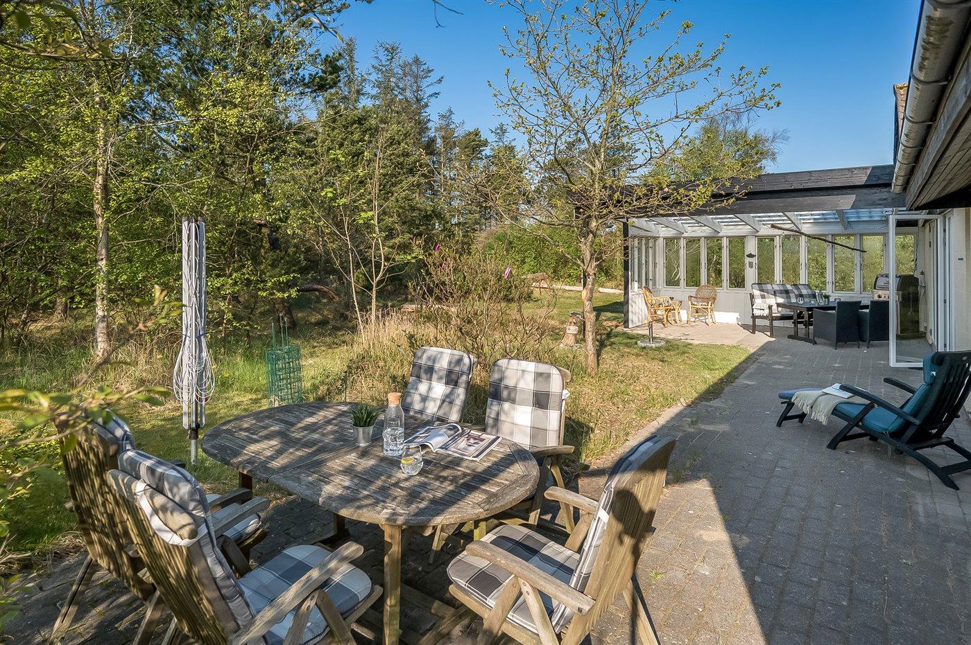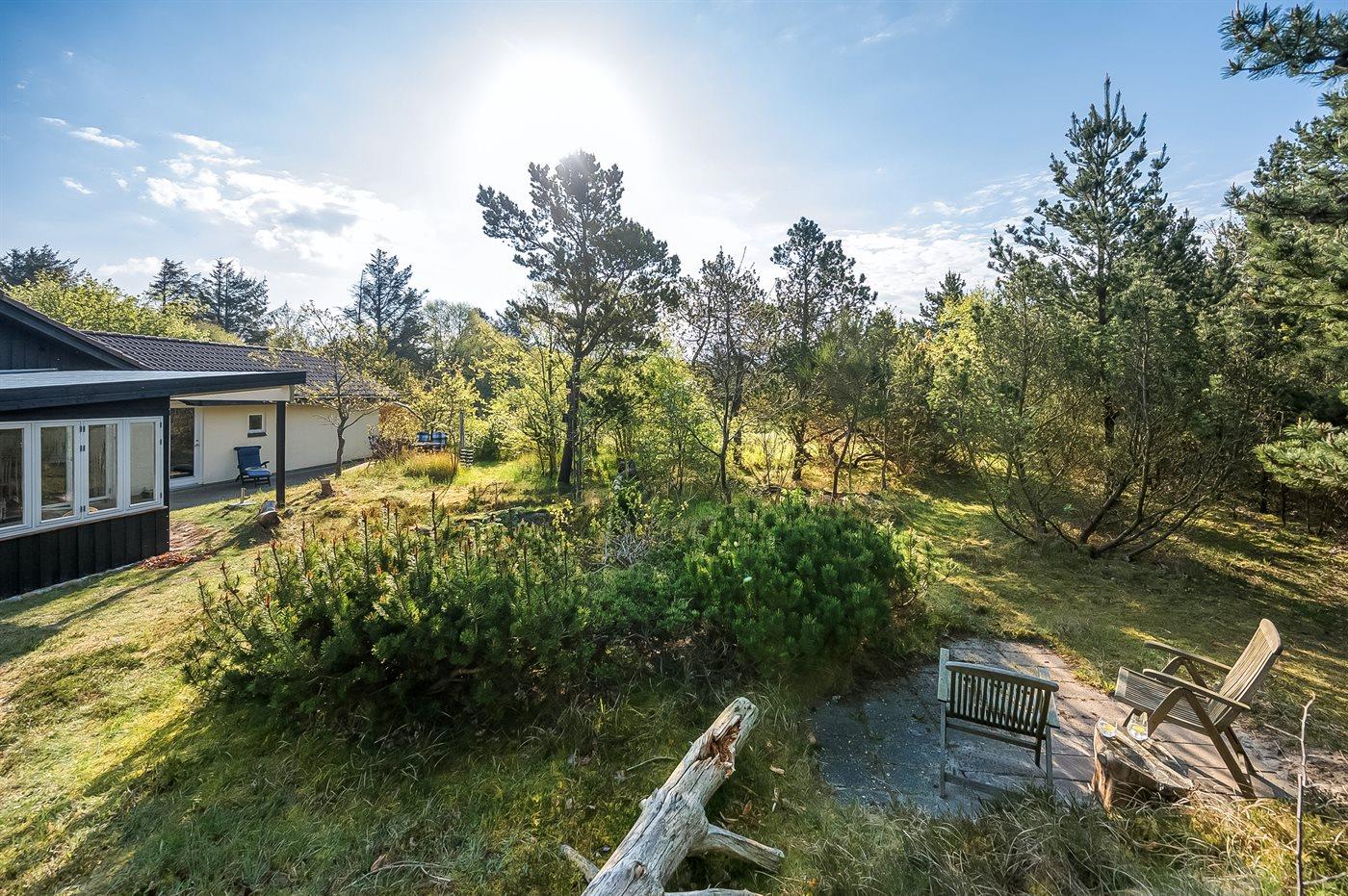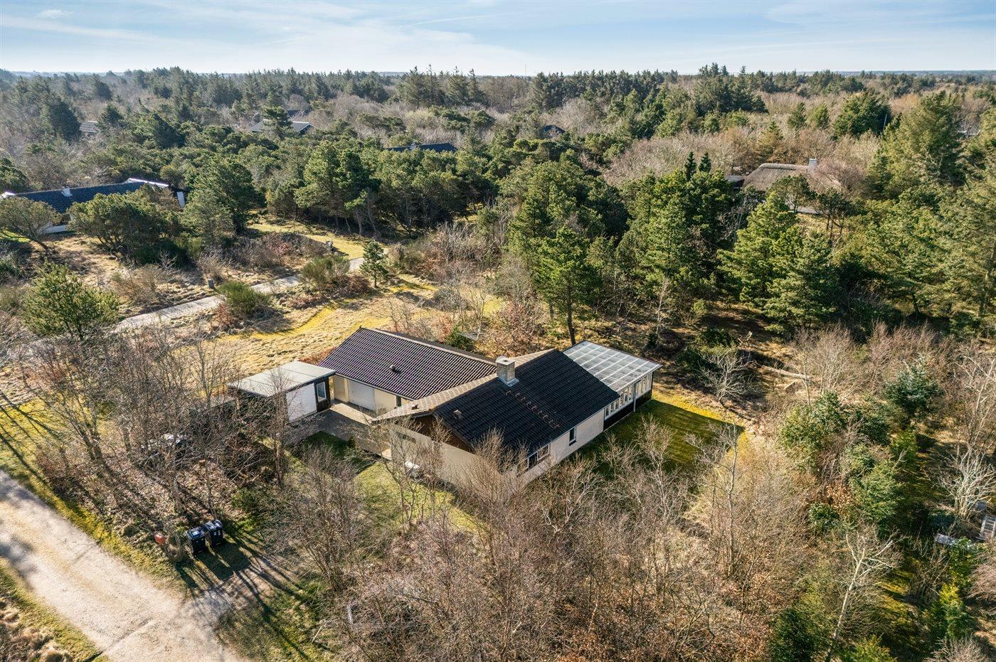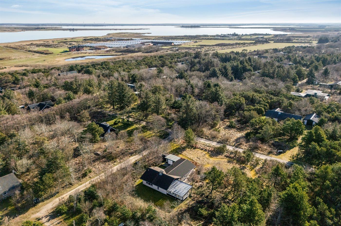 Ferieboligen er beliggende på en 2279 m² stor naturgrund. Grunden er indhegnet. Der er 1800 m til havet. Der er 800 m til fjorden. Nærmeste forretning er beliggende i en afstand af 1800 m. Der er en golfbane i en afstand af 500 m. Til ferieboligen hører 60 m² åbent og 20 m² overdækket terrasseareal - heraf i alt 20 m² lukket terrasse. Gynge. Sandkasse. Der er installeret stik til opladning af elbil. CEE stik. Parkering ved ferieboligen.