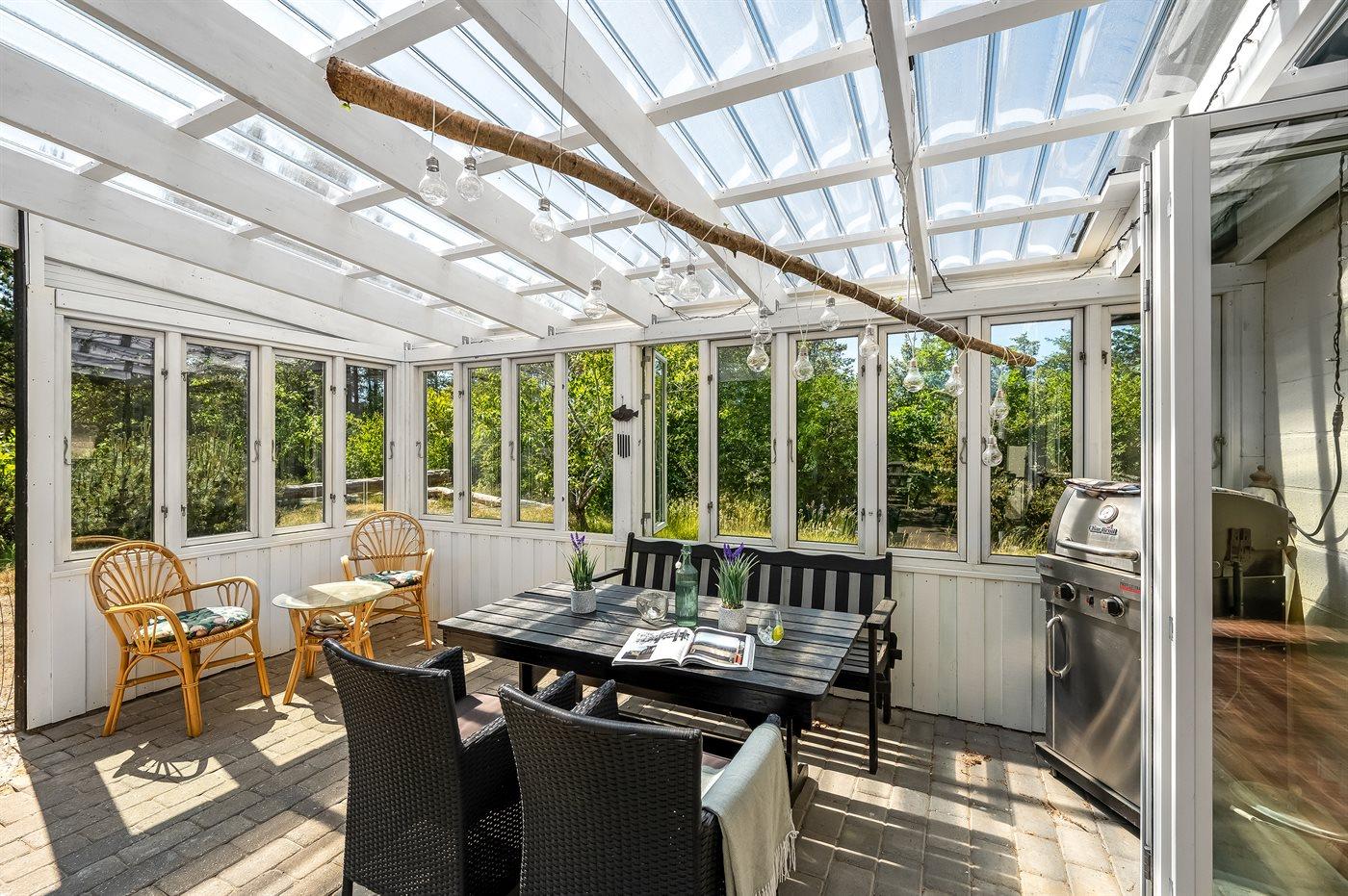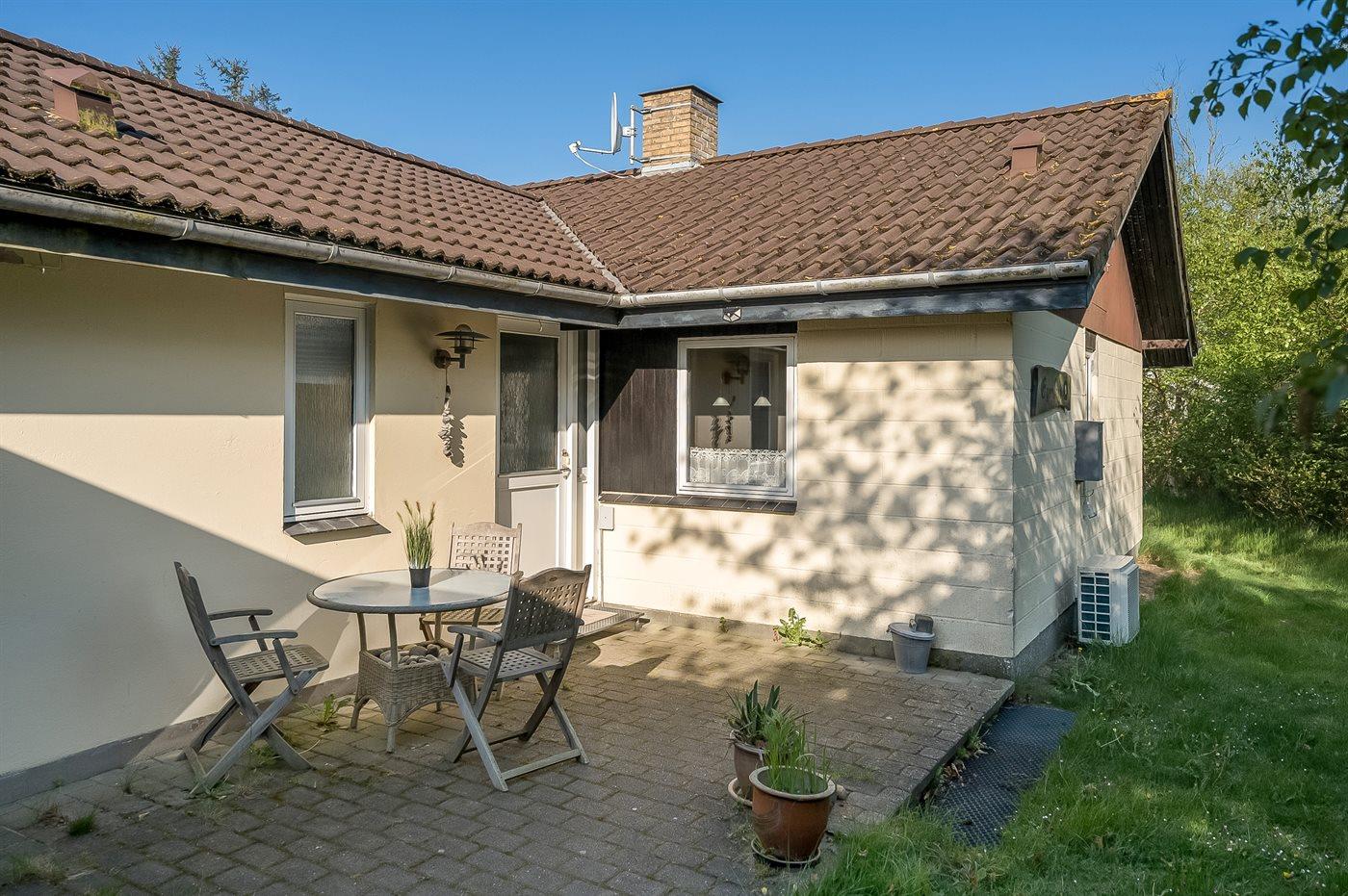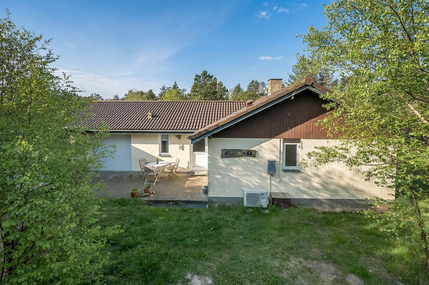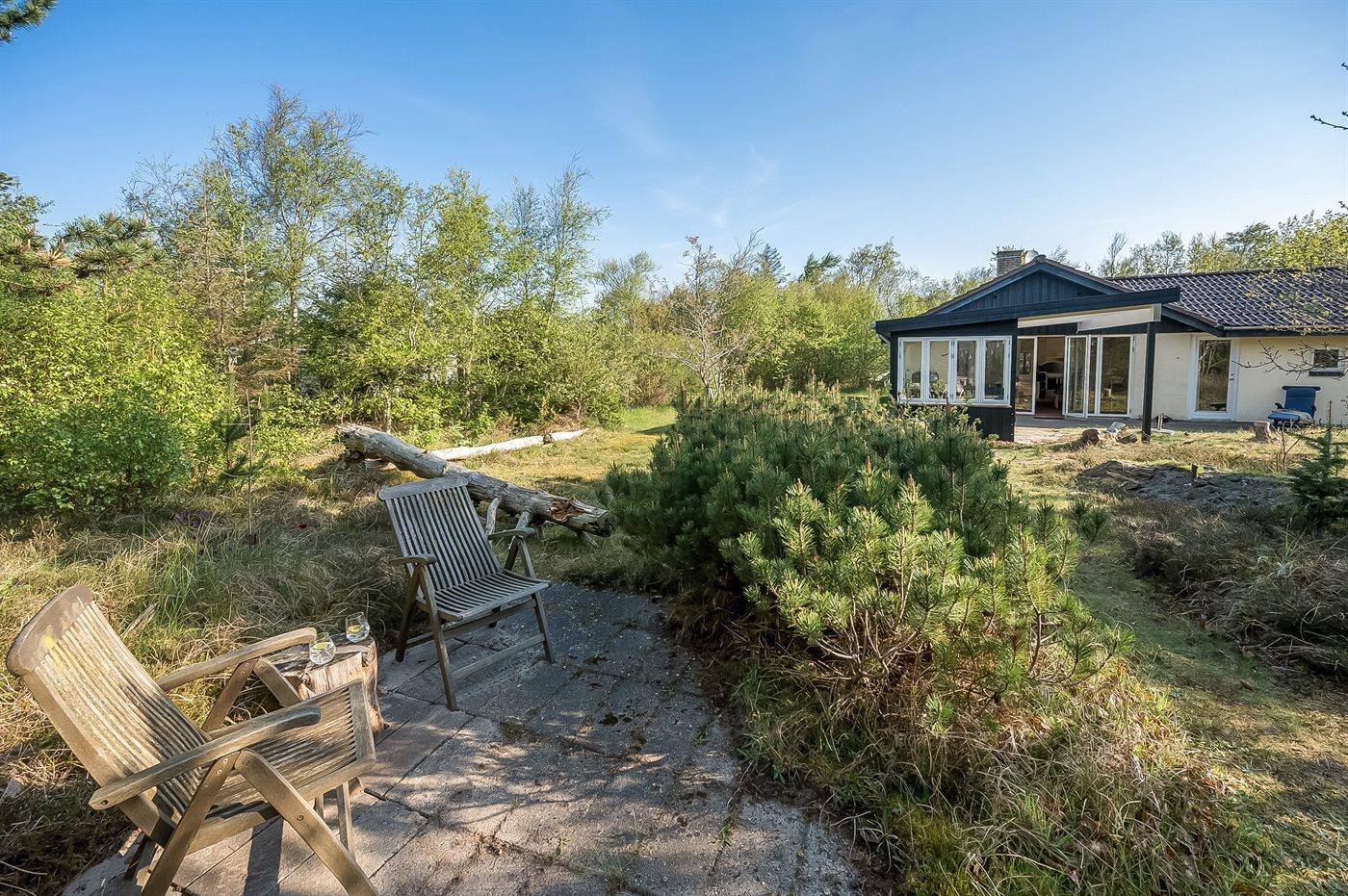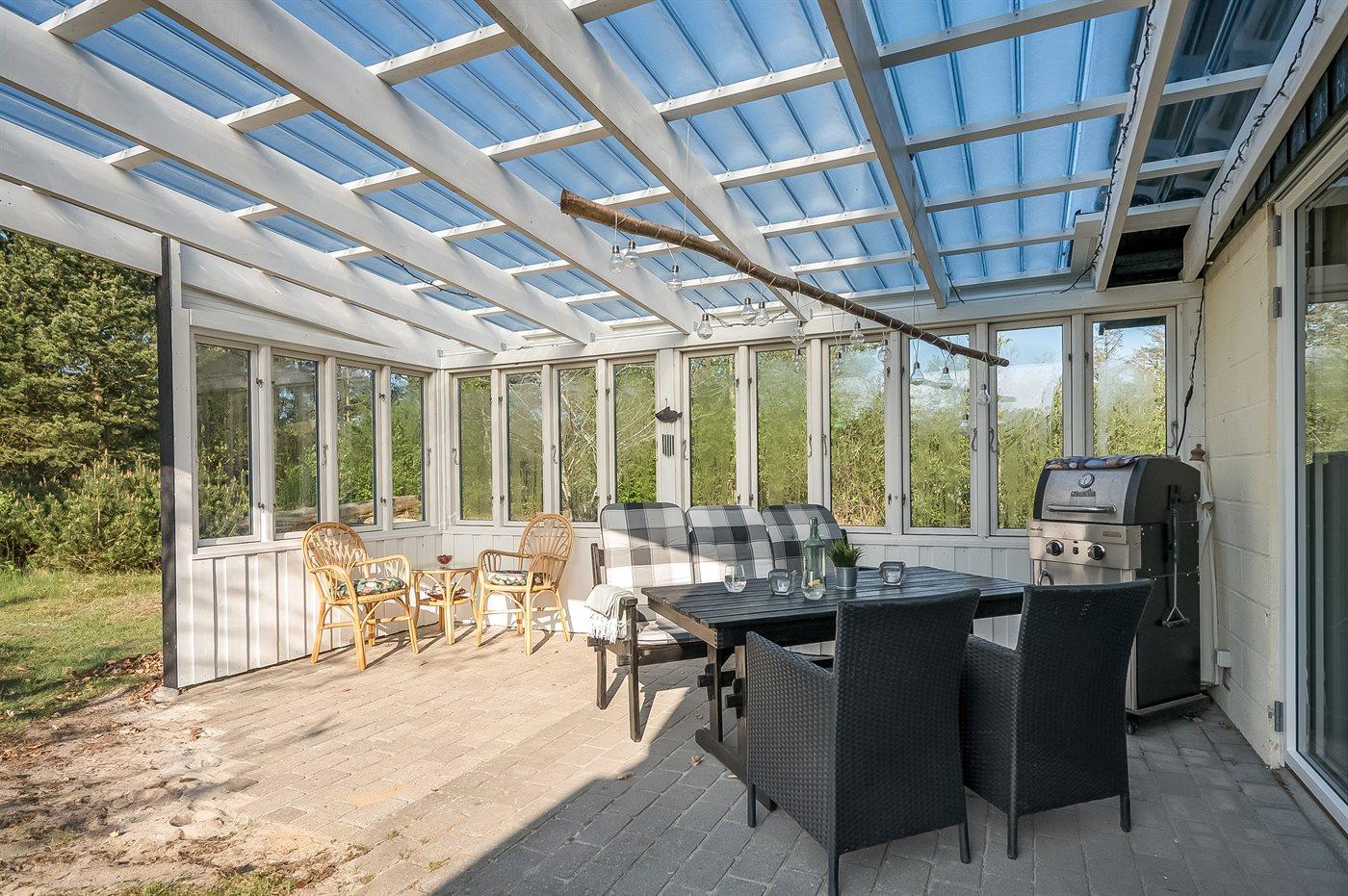 Ferieboligen er beliggende på en 2279 m² stor naturgrund. Grunden er indhegnet. Der er 1800 m til havet. Der er 800 m til fjorden. Nærmeste forretning er beliggende i en afstand af 1800 m. Der er en golfbane i en afstand af 500 m. Til ferieboligen hører 60 m² åbent og 20 m² overdækket terrasseareal - heraf i alt 20 m² lukket terrasse. Gynge. Sandkasse. Der er installeret stik til opladning af elbil. CEE stik. Parkering ved ferieboligen.