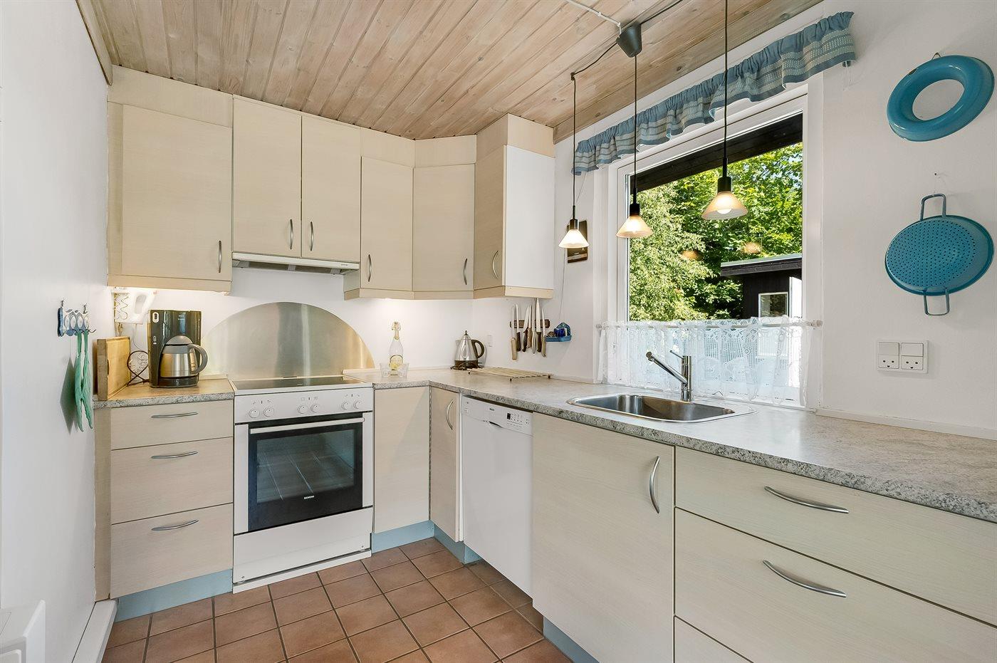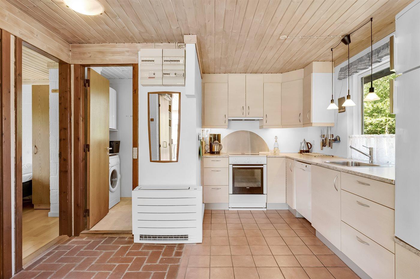 Køkkenet er udstyret med 1 køleskab. Der er 4 keramiske kogeplader, varmluftovn samt opvaskemaskine.