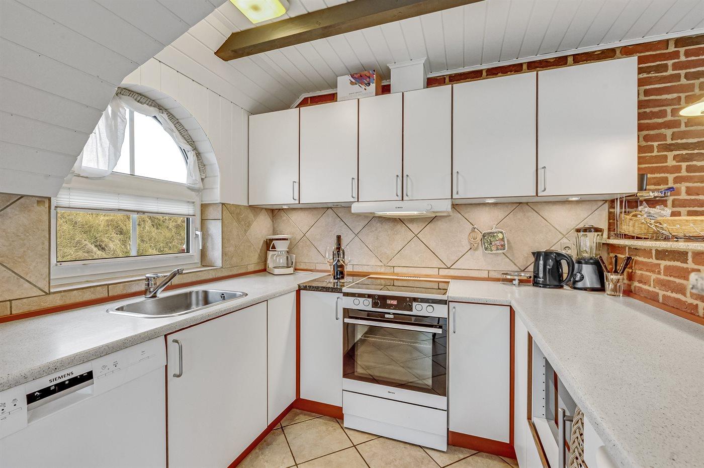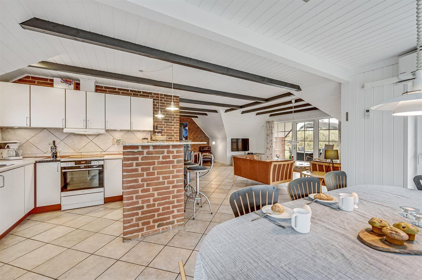 Køkkenet er udstyret med 1 køleskab. Der er 4 induktionskogeplader, varmluftovn, mikrobølgeovn samt opvaskemaskine.
