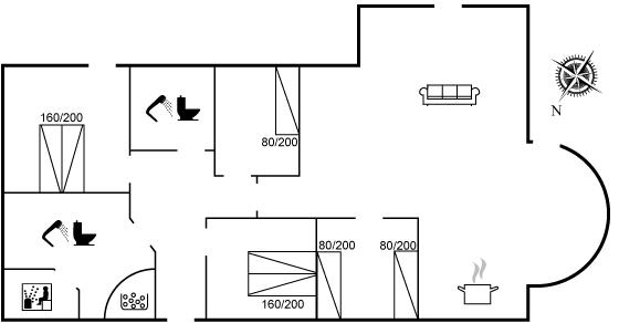 Der er i alt 4 soveværelser. Sovepladserne fordeler sig på: 4 sovepladser i dobbeltsenge. 3 sovepladser i enkeltsenge.