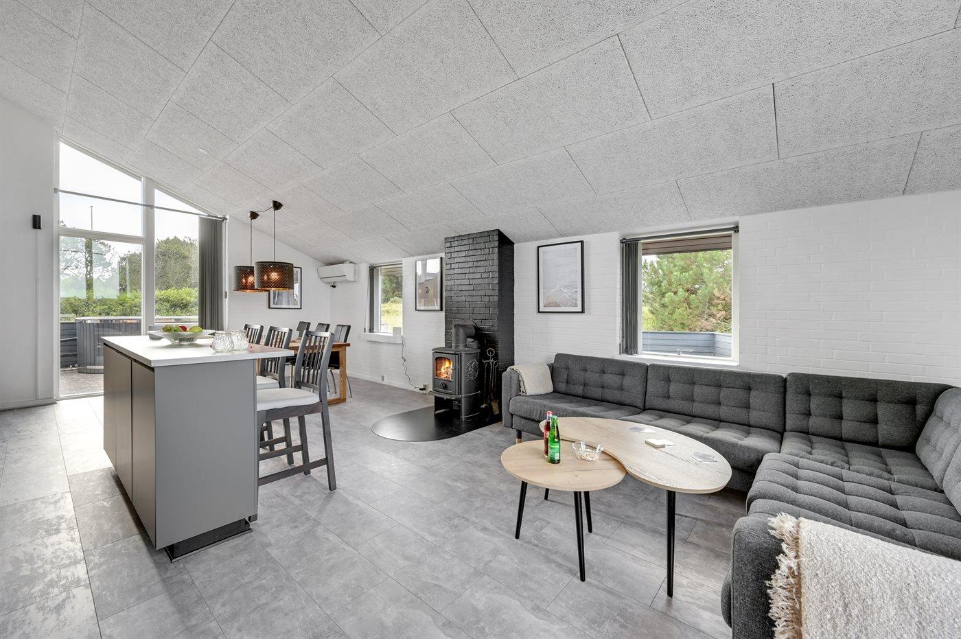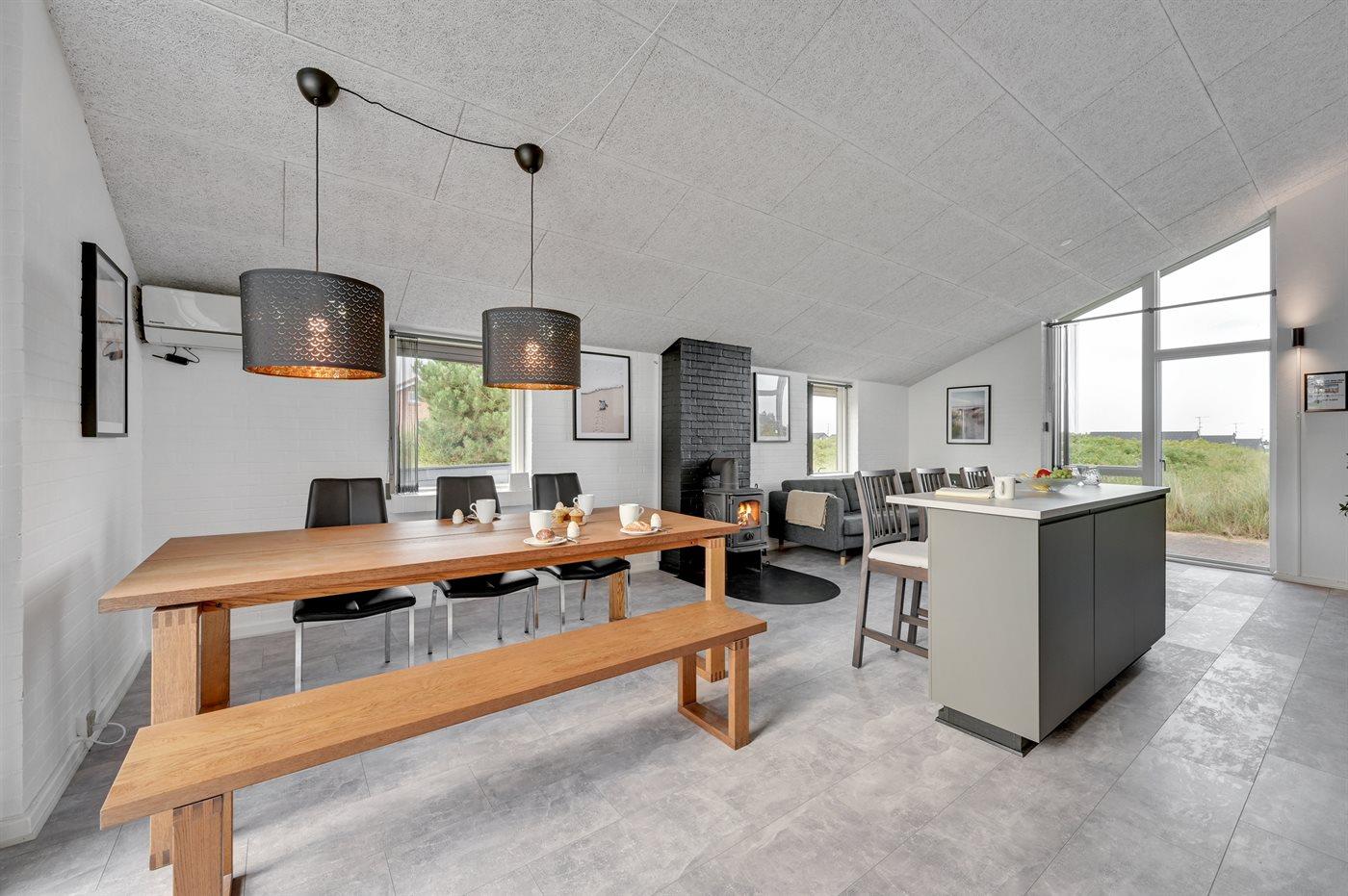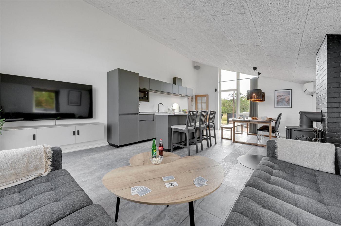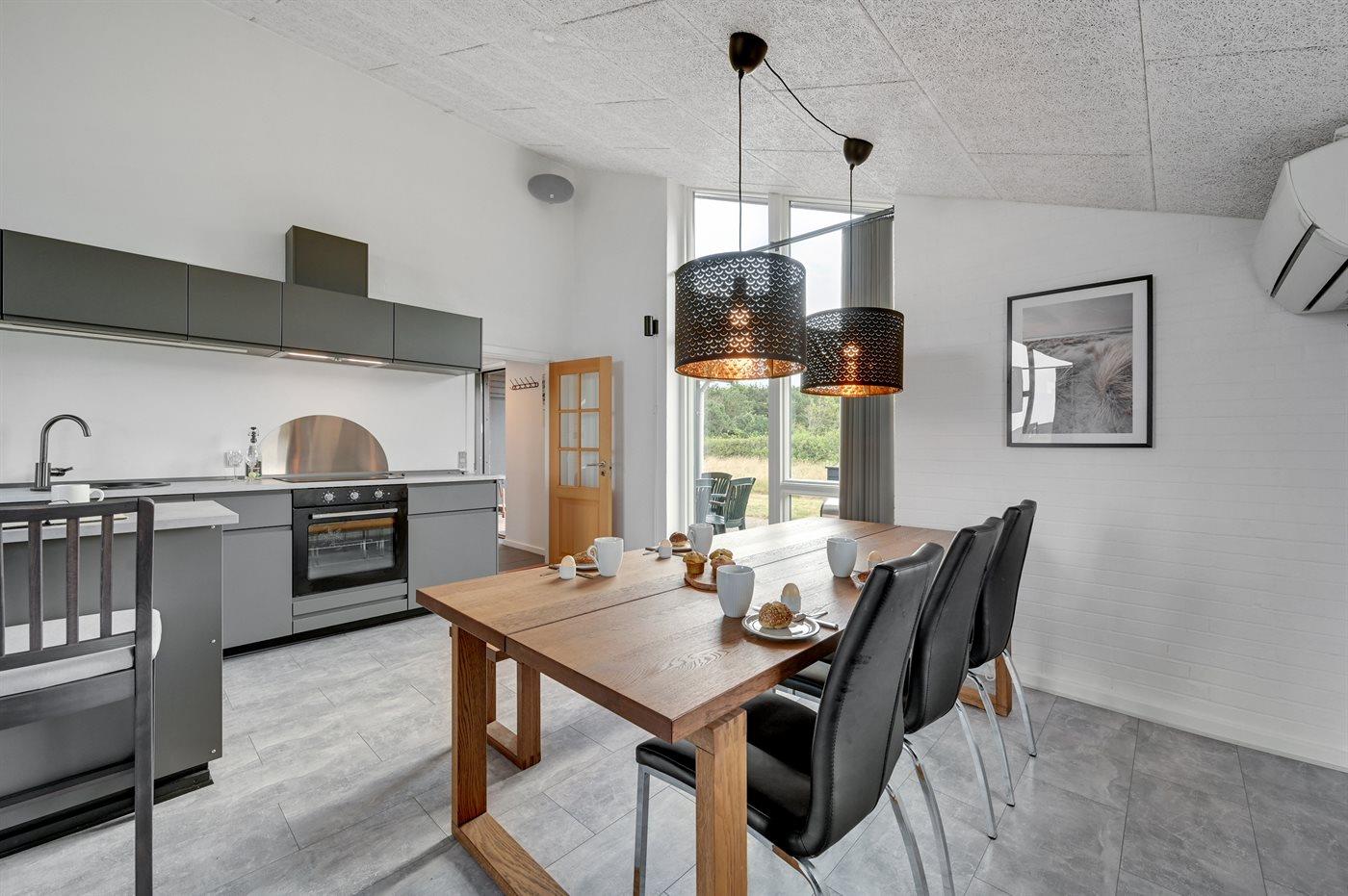 Køkkenet er udstyret med 1 køleskab. Der er 4 induktionskogeplader, varmluftovn, mikrobølgeovn samt opvaskemaskine.