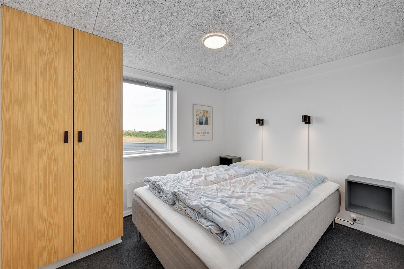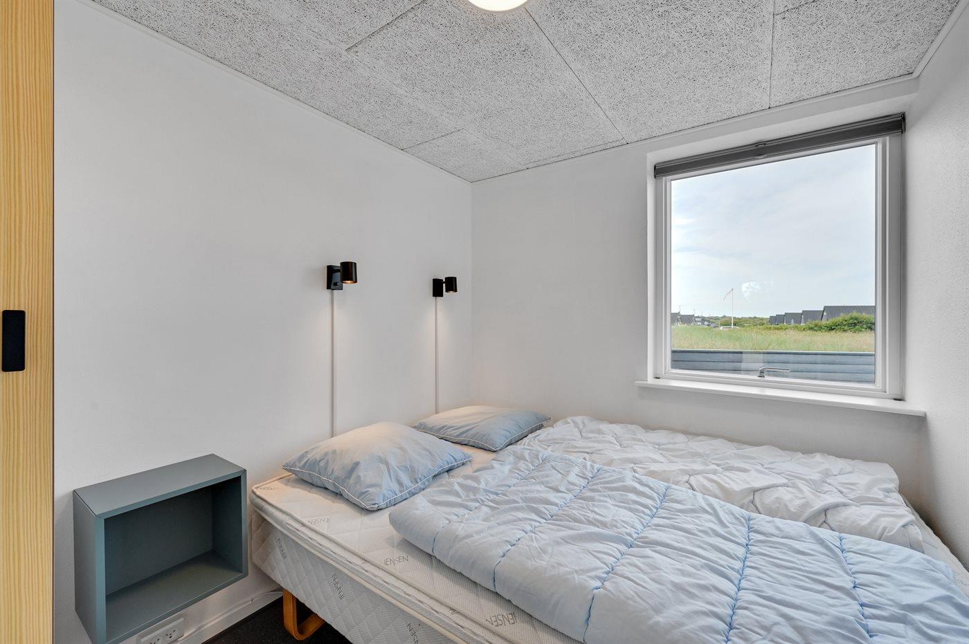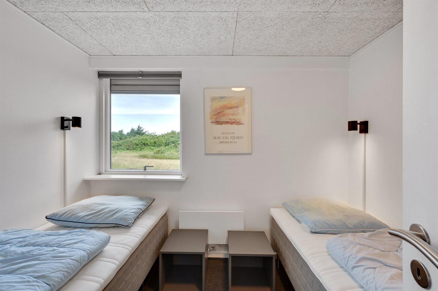 Der er i alt 3 soveværelser. Sovepladserne fordeler sig på: 4 sovepladser i dobbeltsenge. 2 sovepladser i enkeltsenge. Derudover er der 1 stk. barneseng.