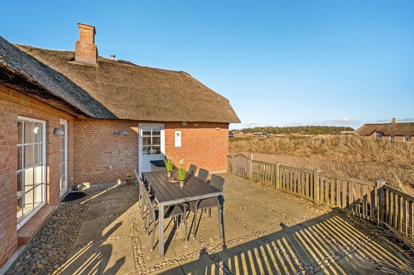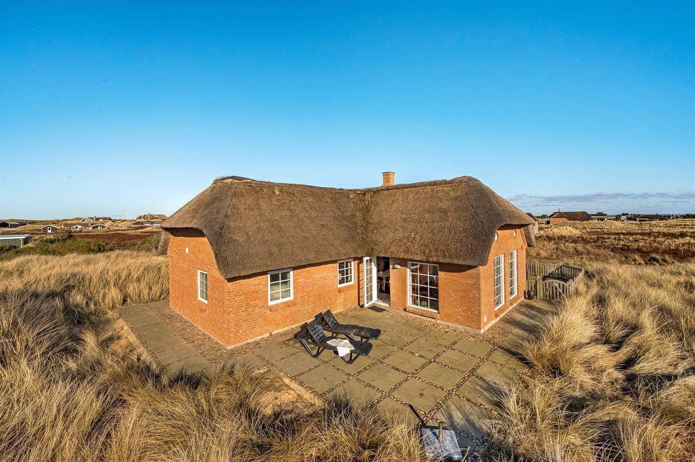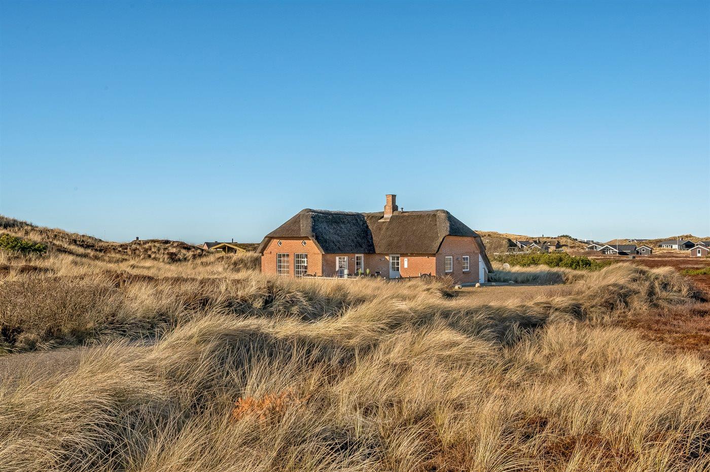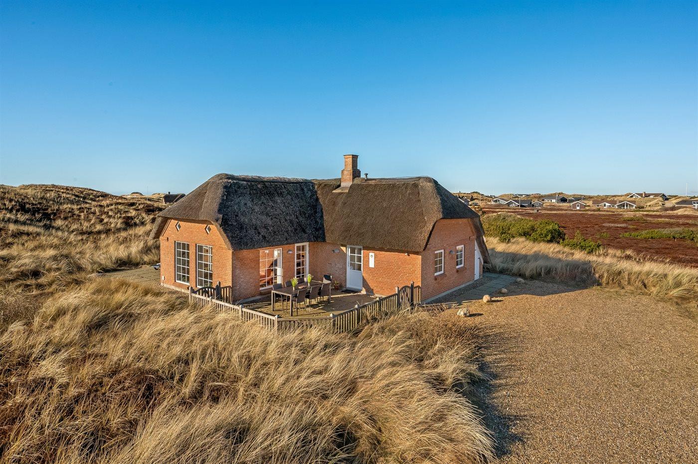 Fantastisk stråtækt sommerhus med en dejlig beliggenhed på en meget stor grund i naturskønne omgivelser. Huset ligger på en lukket vej mellem hav og fjord - nær havet og skøn badestrand samt Søndervig by. Indretningen i huset er smagfuld og med masser af plads til hygge og samvær.