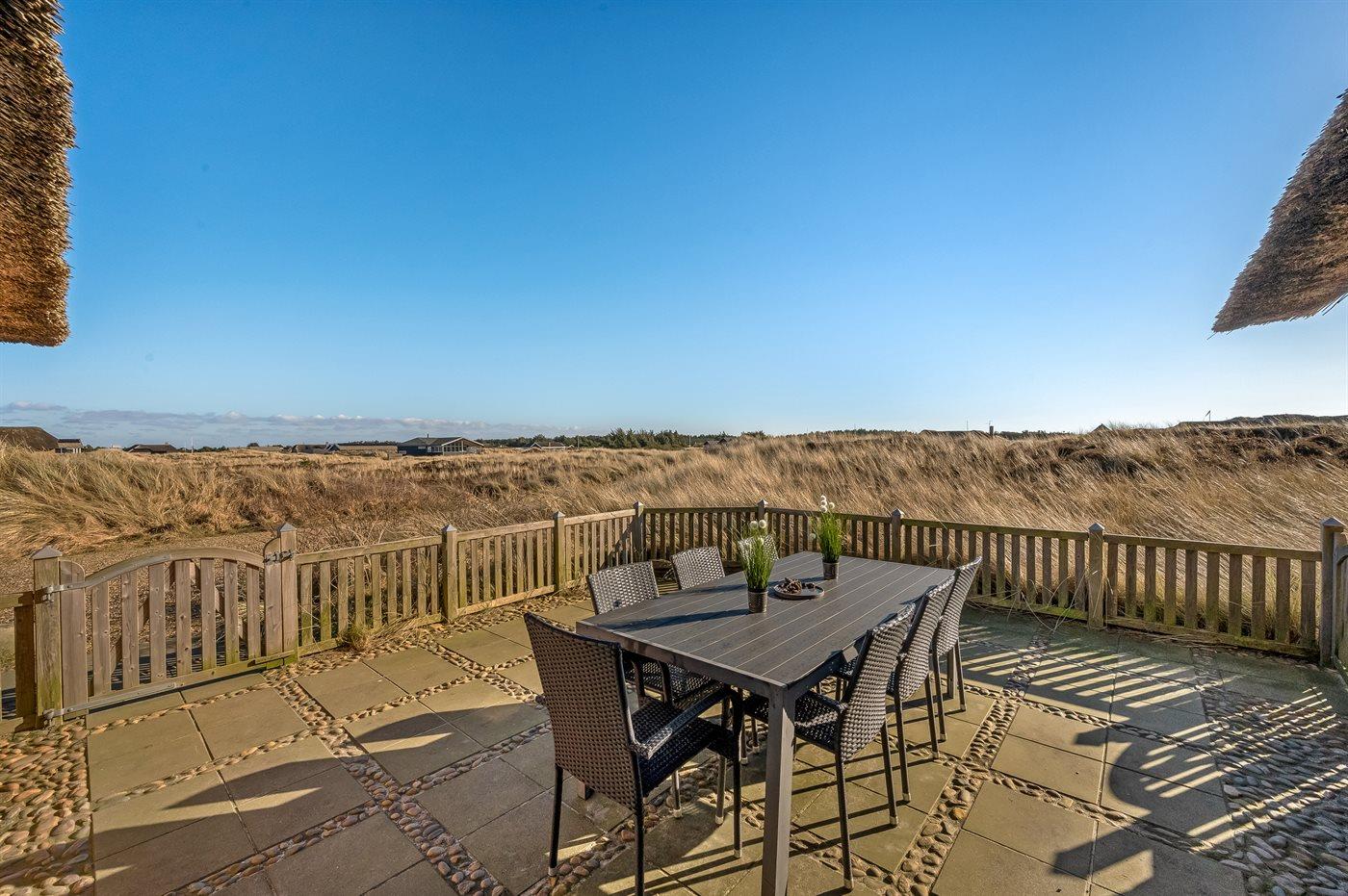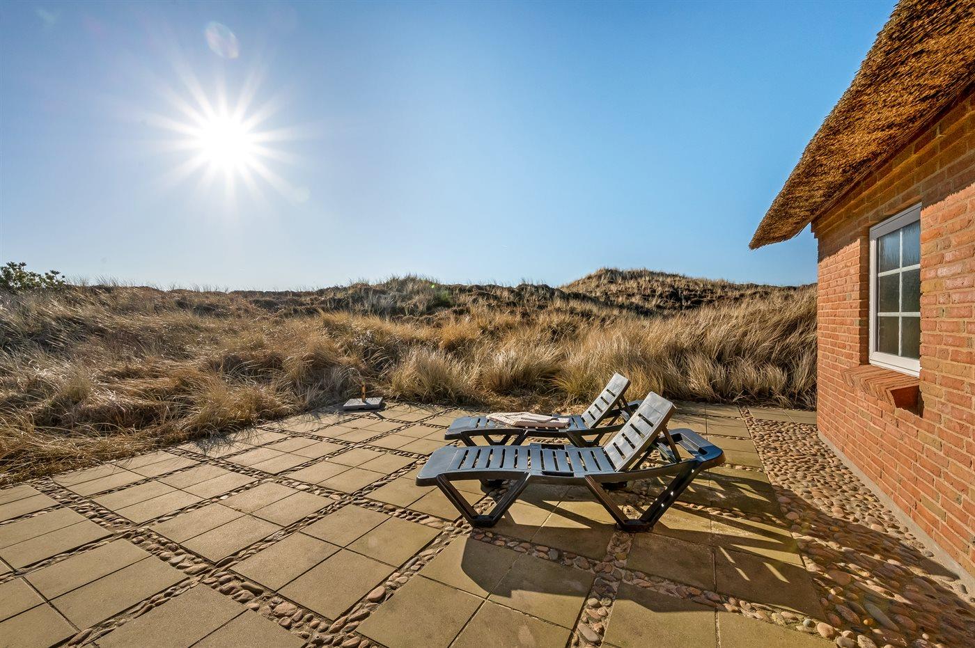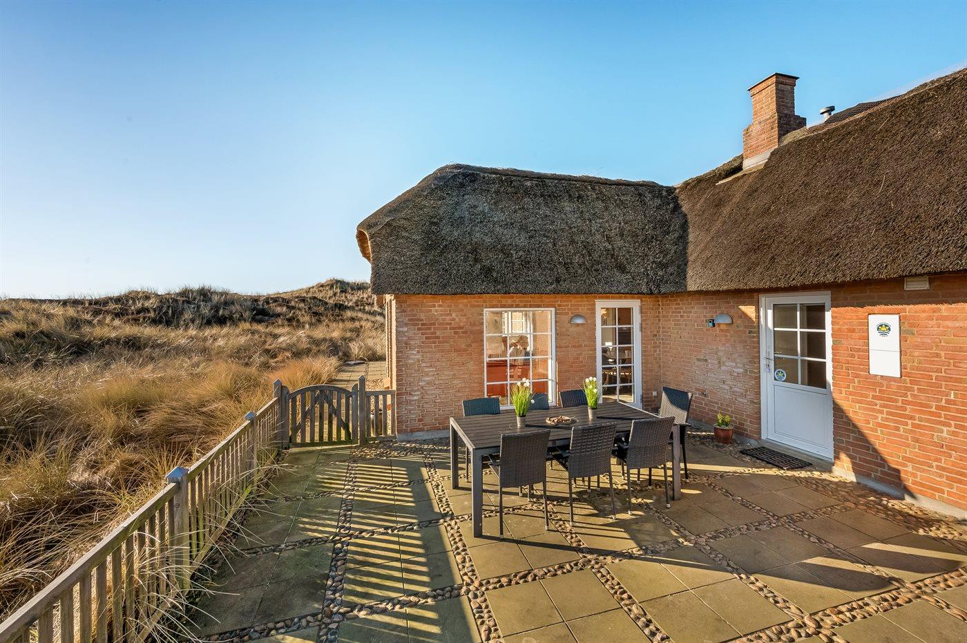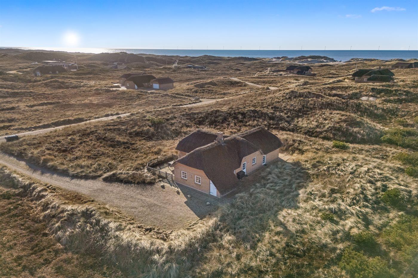 Fantastisk stråtækt sommerhus med en dejlig beliggenhed på en meget stor grund i naturskønne omgivelser. Huset ligger på en lukket vej mellem hav og fjord - nær havet og skøn badestrand samt Søndervig by. Indretningen i huset er smagfuld og med masser af plads til hygge og samvær.