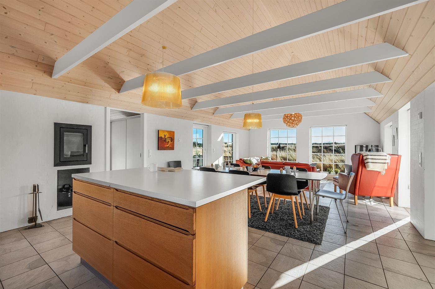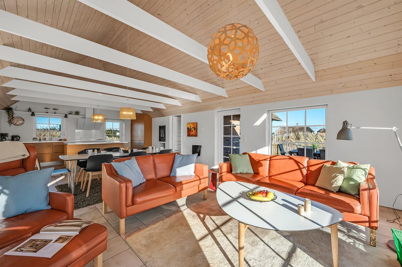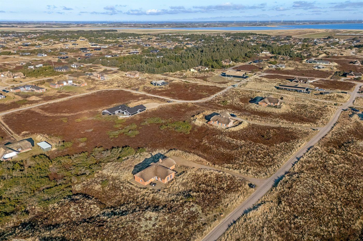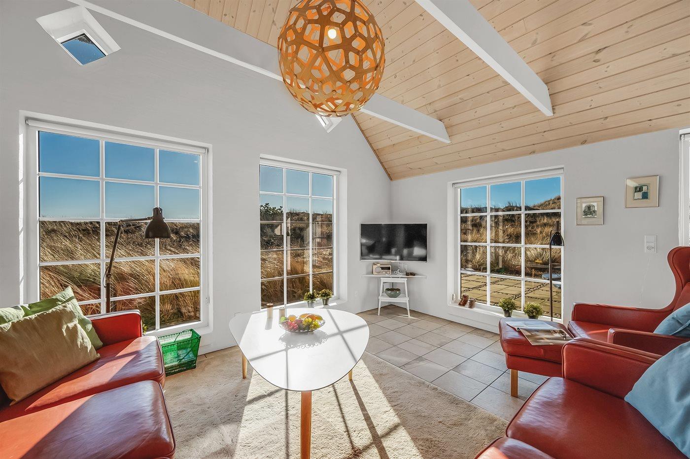 Fantastisk stråtækt sommerhus med en dejlig beliggenhed på en meget stor grund i naturskønne omgivelser. Huset ligger på en lukket vej mellem hav og fjord - nær havet og skøn badestrand samt Søndervig by. Indretningen i huset er smagfuld og med masser af plads til hygge og samvær.