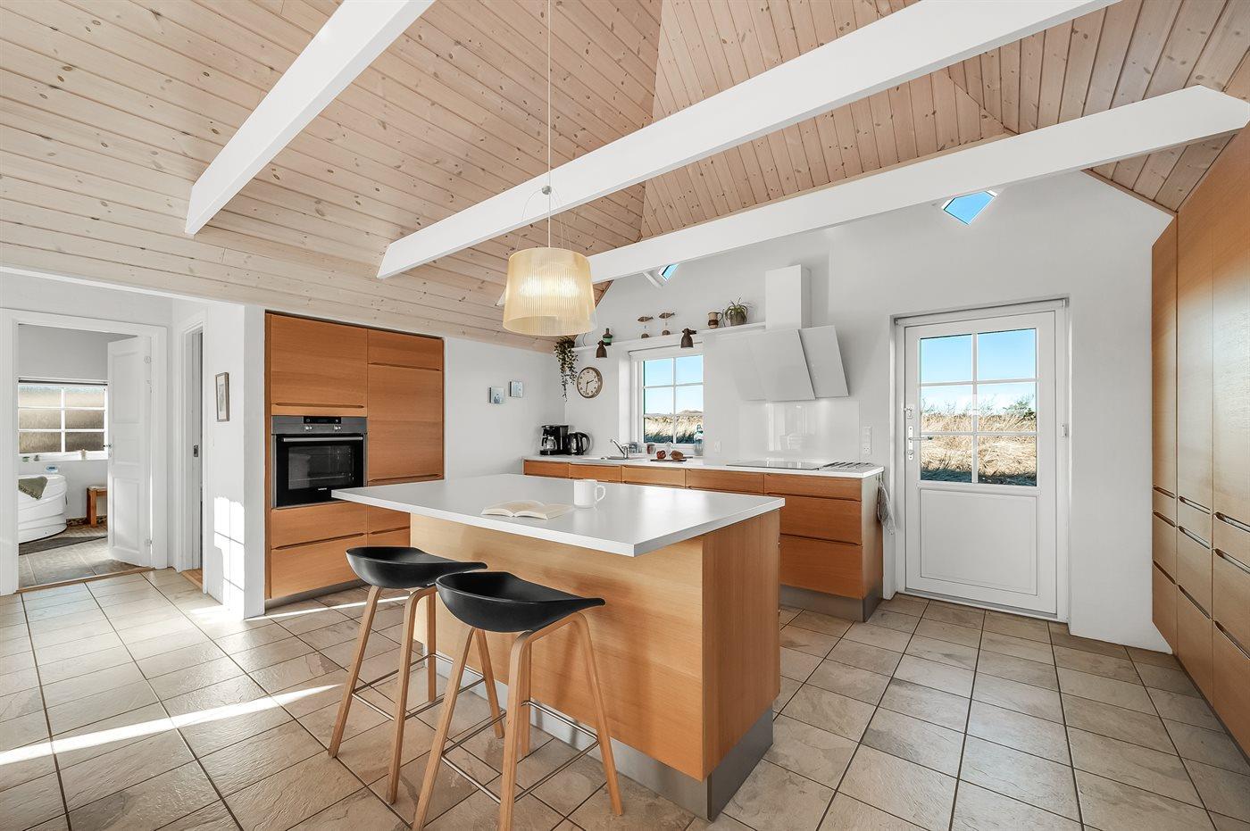 Køkkenet er udstyret med 1 køleskab. Der er 4 keramiske kogeplader, varmluftovn, mikrobølgeovn samt opvaskemaskine.