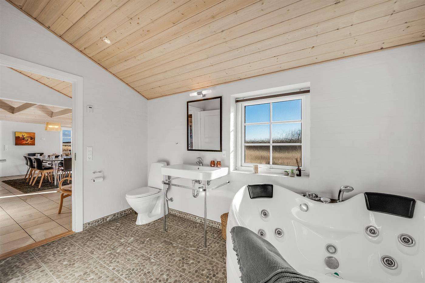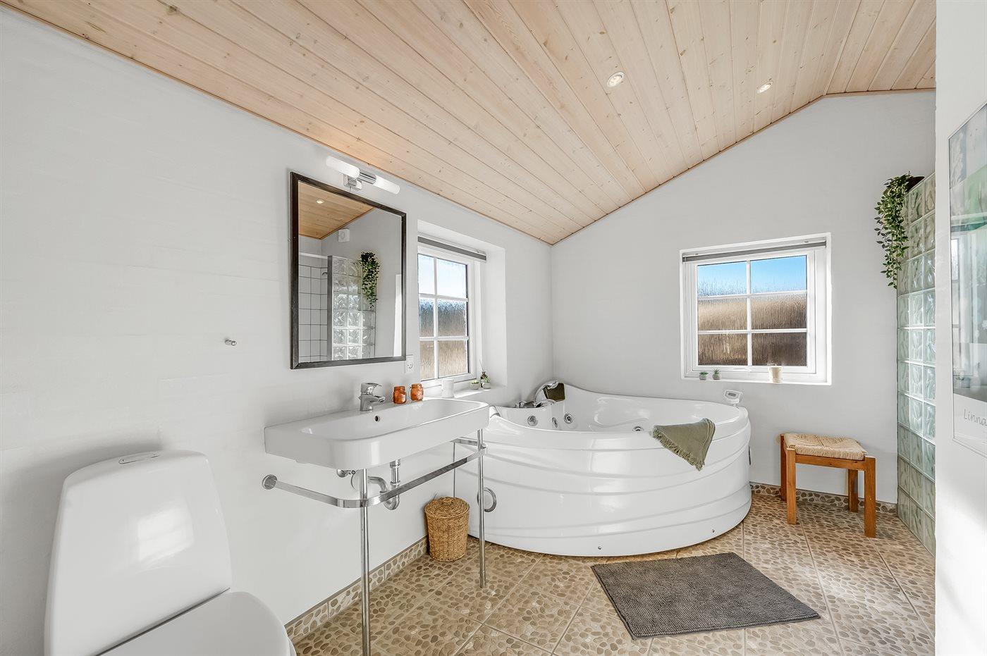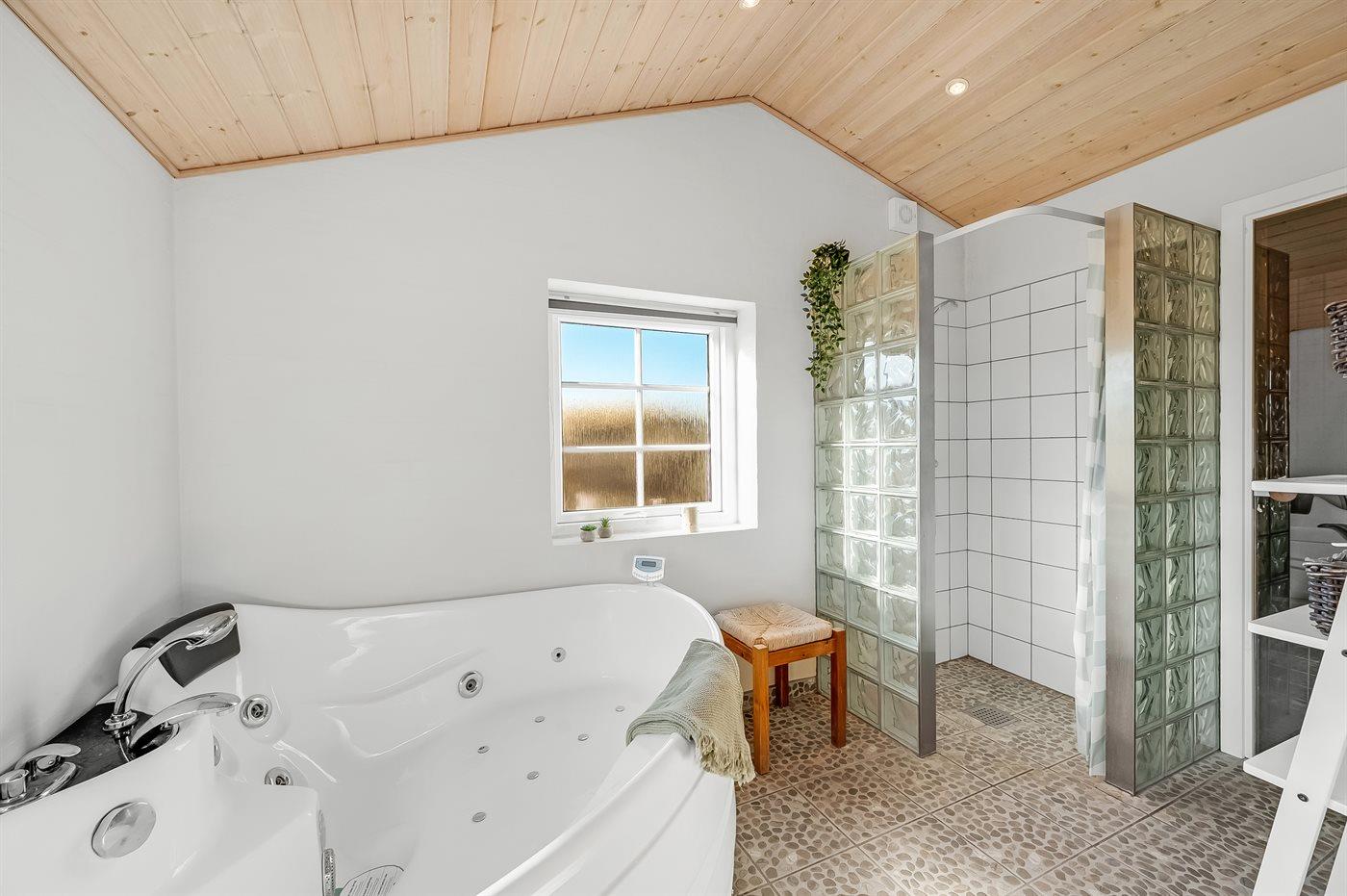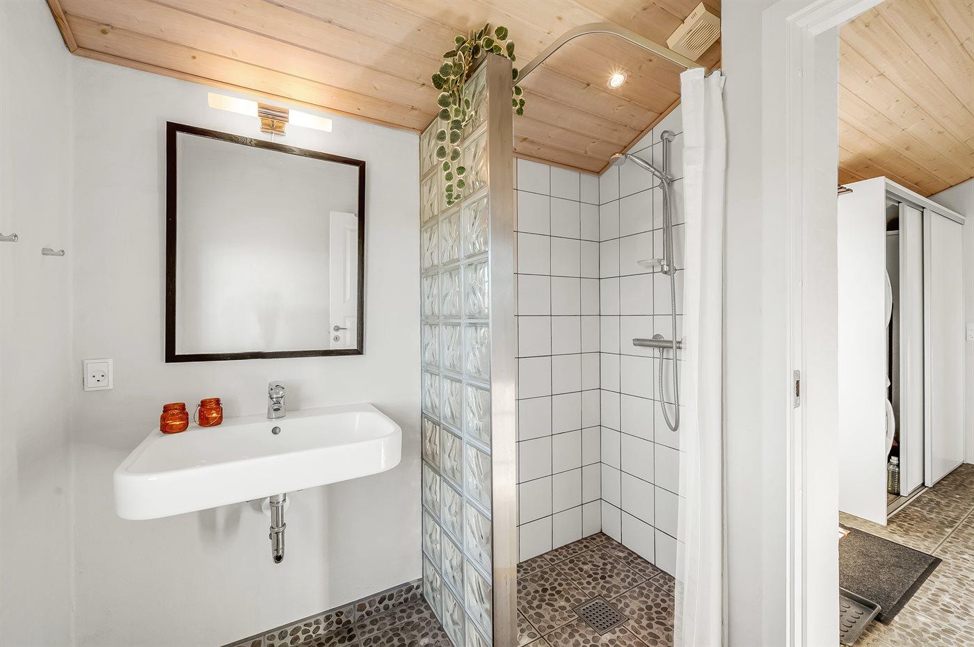 Der er 2 badeværelser med bruseniche og 2 toiletter. Der er gulvvarme på 2 badeværelser. I saunaen er der mulighed for afslapning.