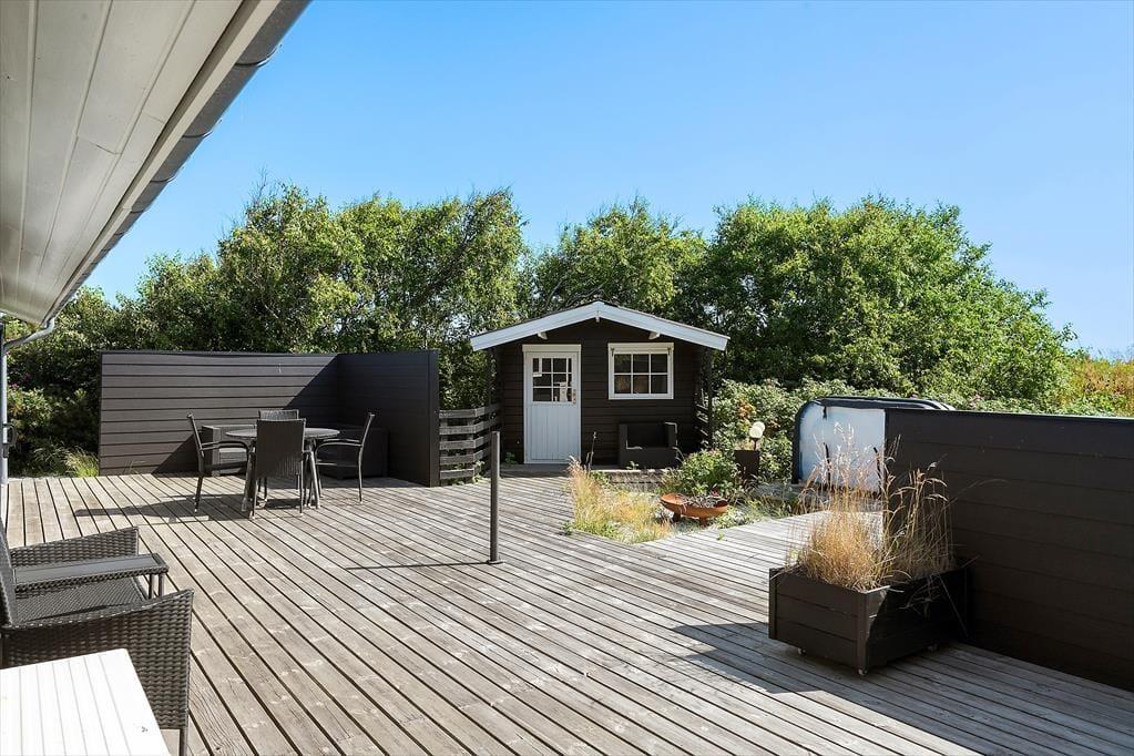 Udespa og sauna på terrassen, et stemningsfuldt opholdsrum og en dejlig udestue. Det er bare et lille udvalg af alle de skønne ting, der forsøder ferielivet i dette fine sommerhus i Søndervig.
