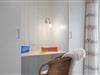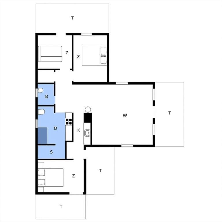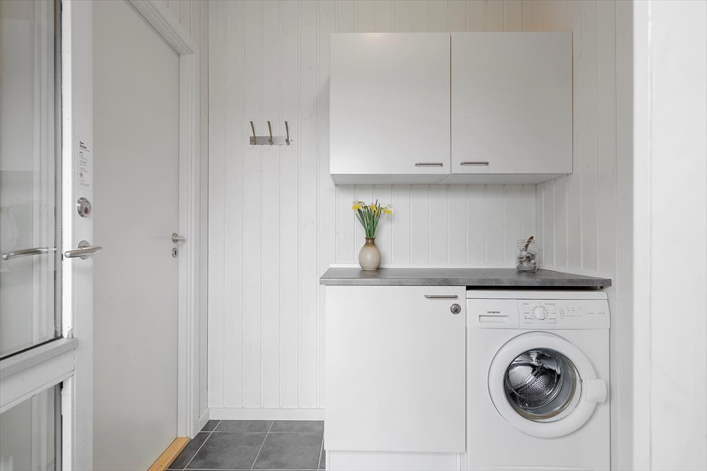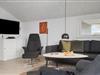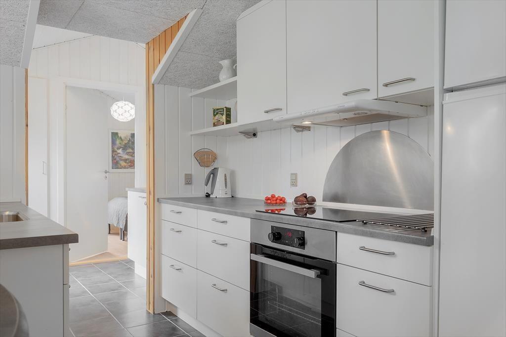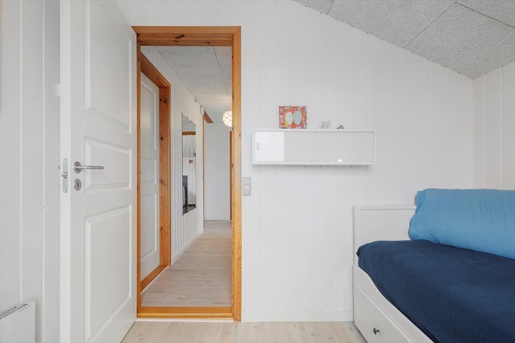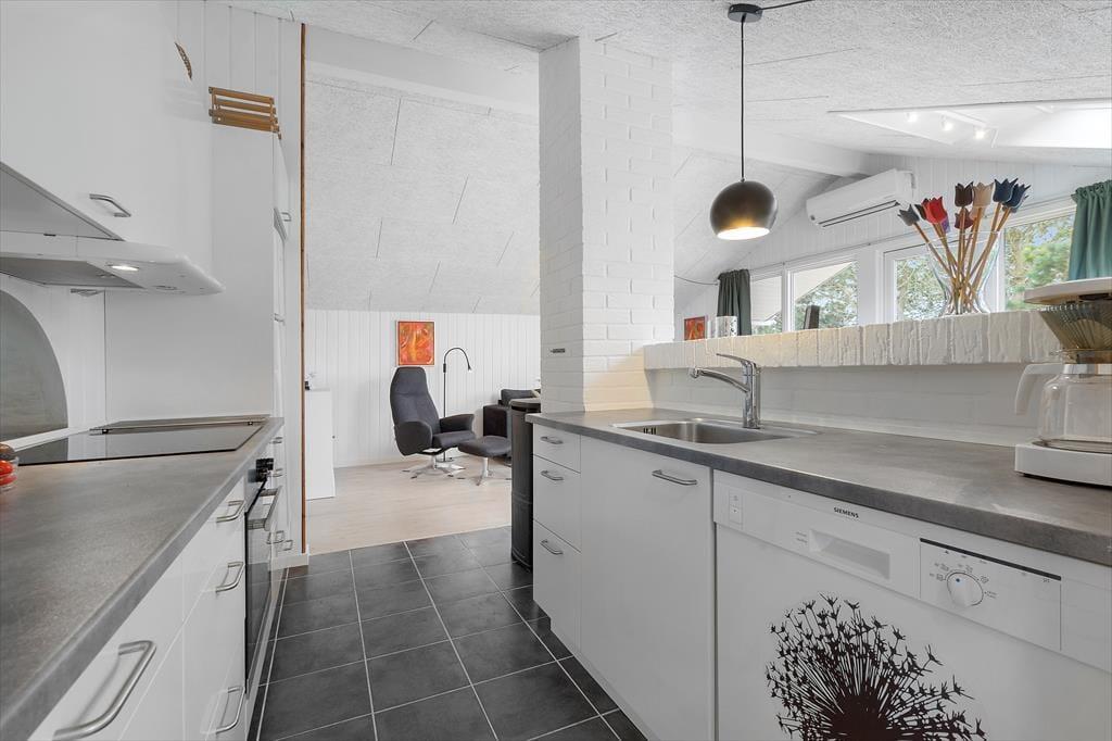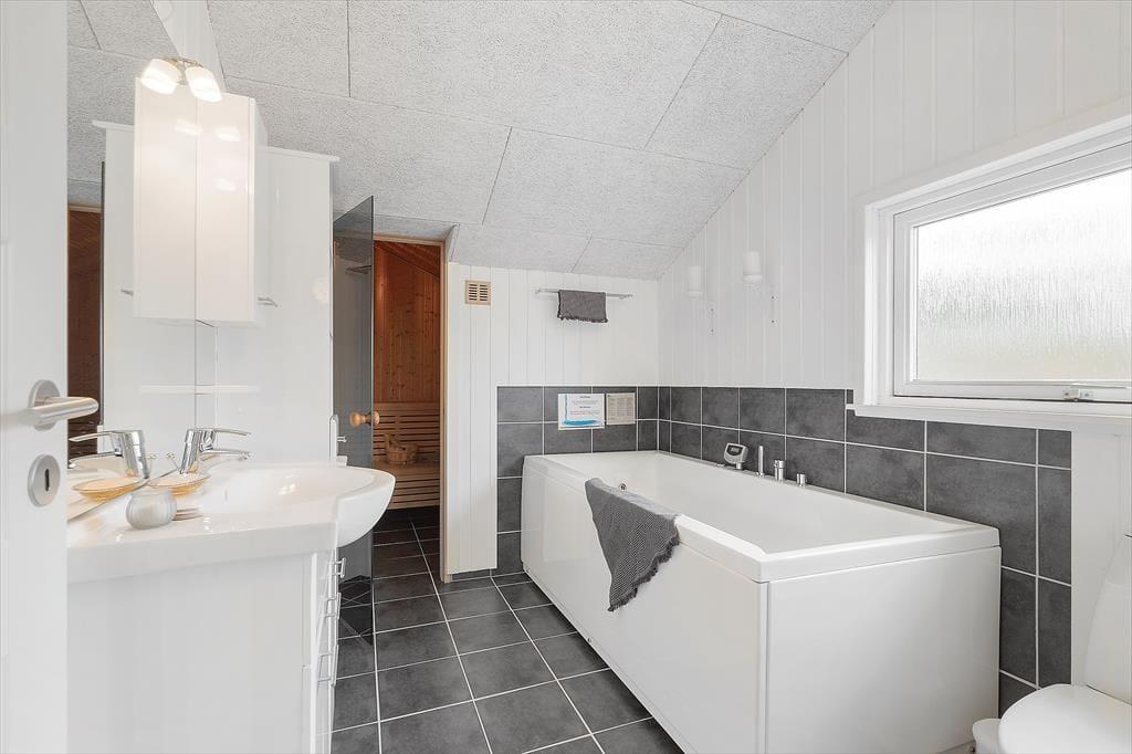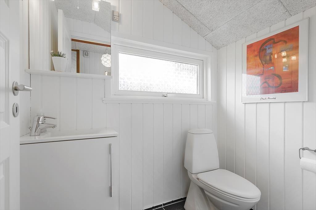 Skal I holde ferie med børn, vil sommerhuset give jer en skøn ramme om både leg og hyggestunder. Der er også tænkt på de praktiske detaljer, for i entréen er der vaskemaskine og en pusleplads til de alleryngste feriegæster, og så hører der både et gæstetoilet og et badeværelse med til planløsningen. Netop badeværelset fortjener et par ekstra ord med på vejen, for her bliver I forkælet med både spabad og sauna, så I kan afslutte feriedagen med tilbagelænet wellness. Alternativt kan I tænde op i stuens brændeovn, lave te eller kaffe i det åbne køkken og gøre klar til en rolig stund i hjørnesofaen.