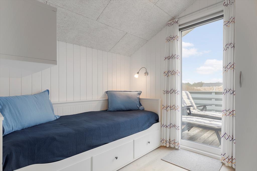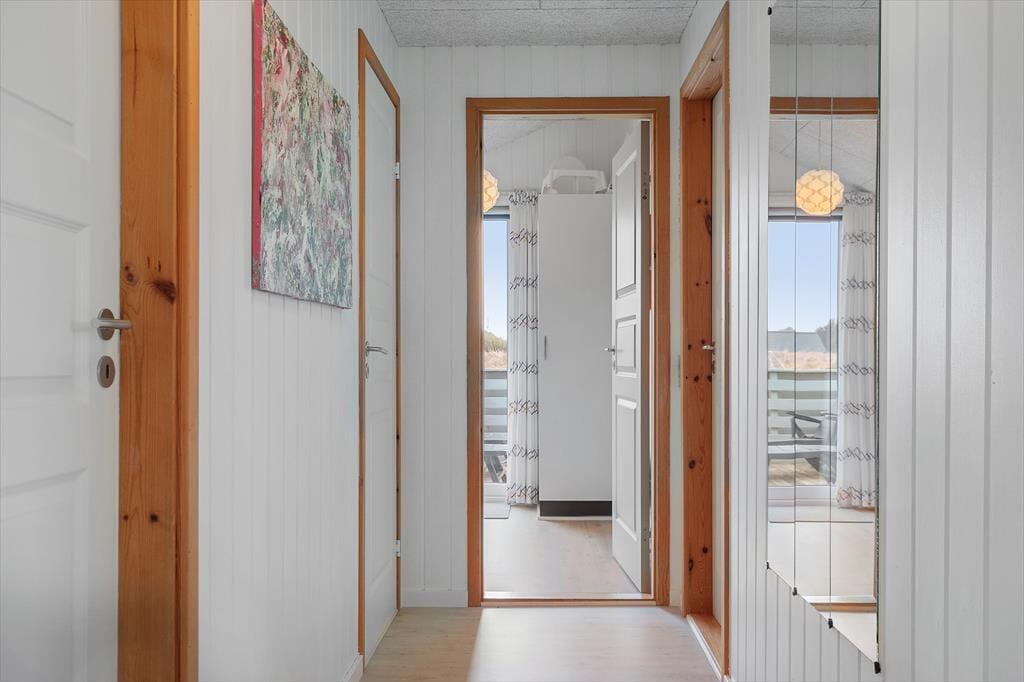 Alt ånder fred og idyl på den lukkede P. Snejkers Vej, hvor sommerhuset ligger i bunden af en lille sidevej. Vil I ned til stranden, kan I skyde genvej via en lille sti, så der er ikke meget mere end en kilometer til Vesterhavet og Søndervigs smukke sandstrand. I har også nem adgang til den nærmeste put and take-sø, og hvis I vil på en naturskøn gå- eller cykeltur, kan I begive jer over Bagges Dæmning, der krydser den nordlige ende af Ringkøbing Fjord. I bil kommer I hurtigt ind til Søndervigs bymidte – og der er for øvrigt gode cykelstier, hvis I vil tage den tohjulede ind for at spise is eller spille minigolf. I kan også køre sydpå gennem Holmsland Klits lyngklædte hedelandskab, indtil I når den charmerende fiskerby Hvide Sande.