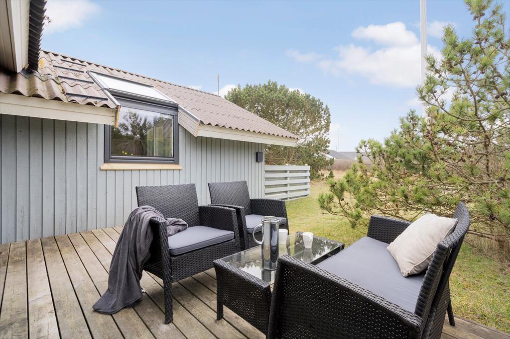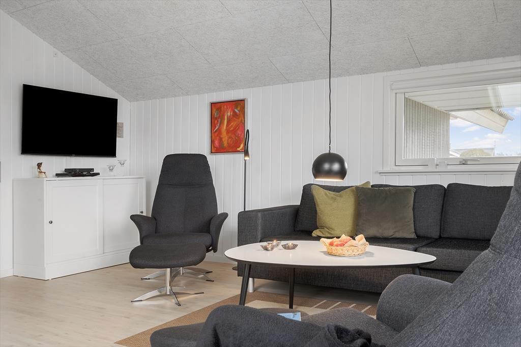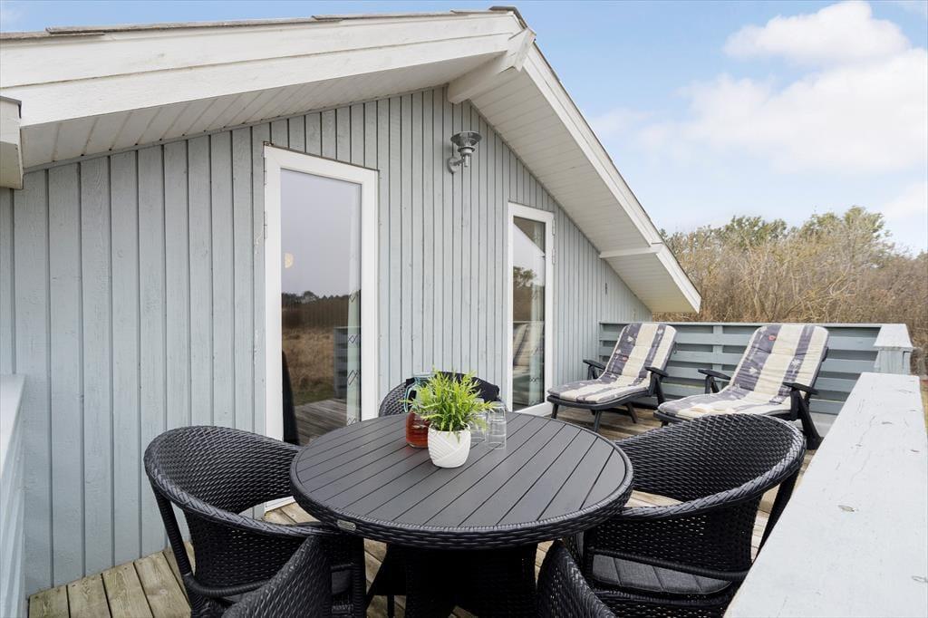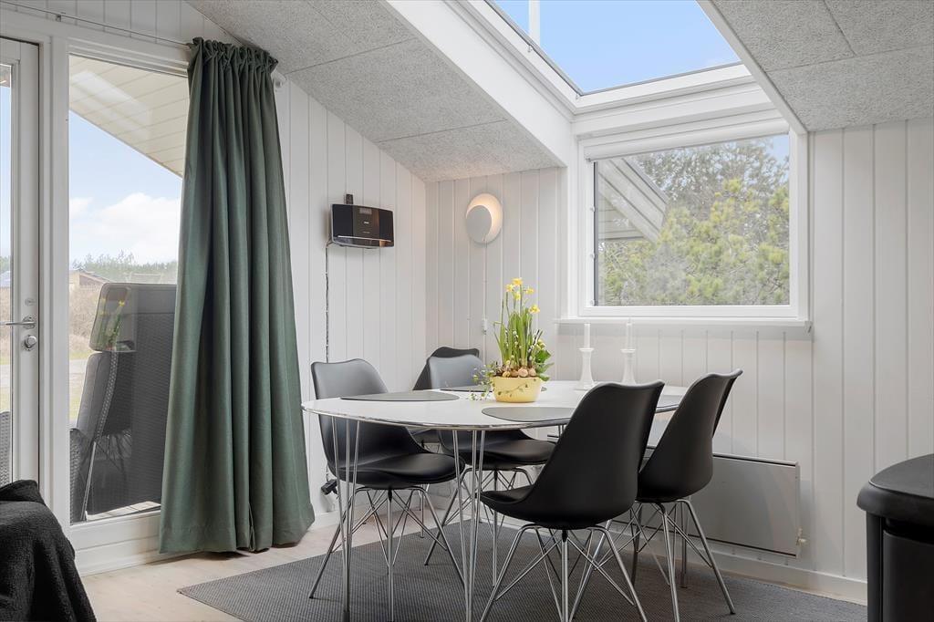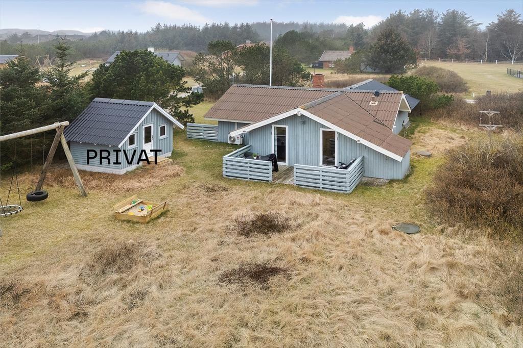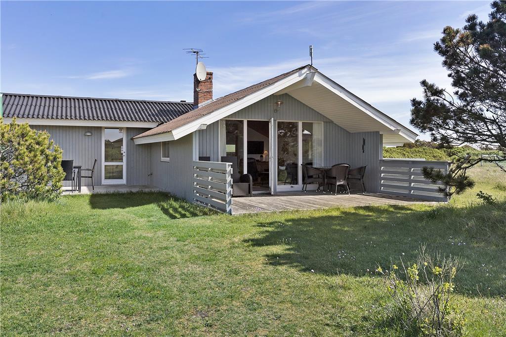 Dette dejlige træsommerhus blev i 2013 totalrenoveret og fik tilmed en tilbygning og der er lavet yderligere forbedringer i 2025, så det i dag fremstår som en pæn, rummelig og velindrettet feriebolig til seks personer. Beliggenheden har selvfølgelig ikke ændret sig, og det gør bestemt ikke noget, for huset ligger i bunden af en lukket vej med nem adgang til Vesterhavet og Søndervigs bymidte.